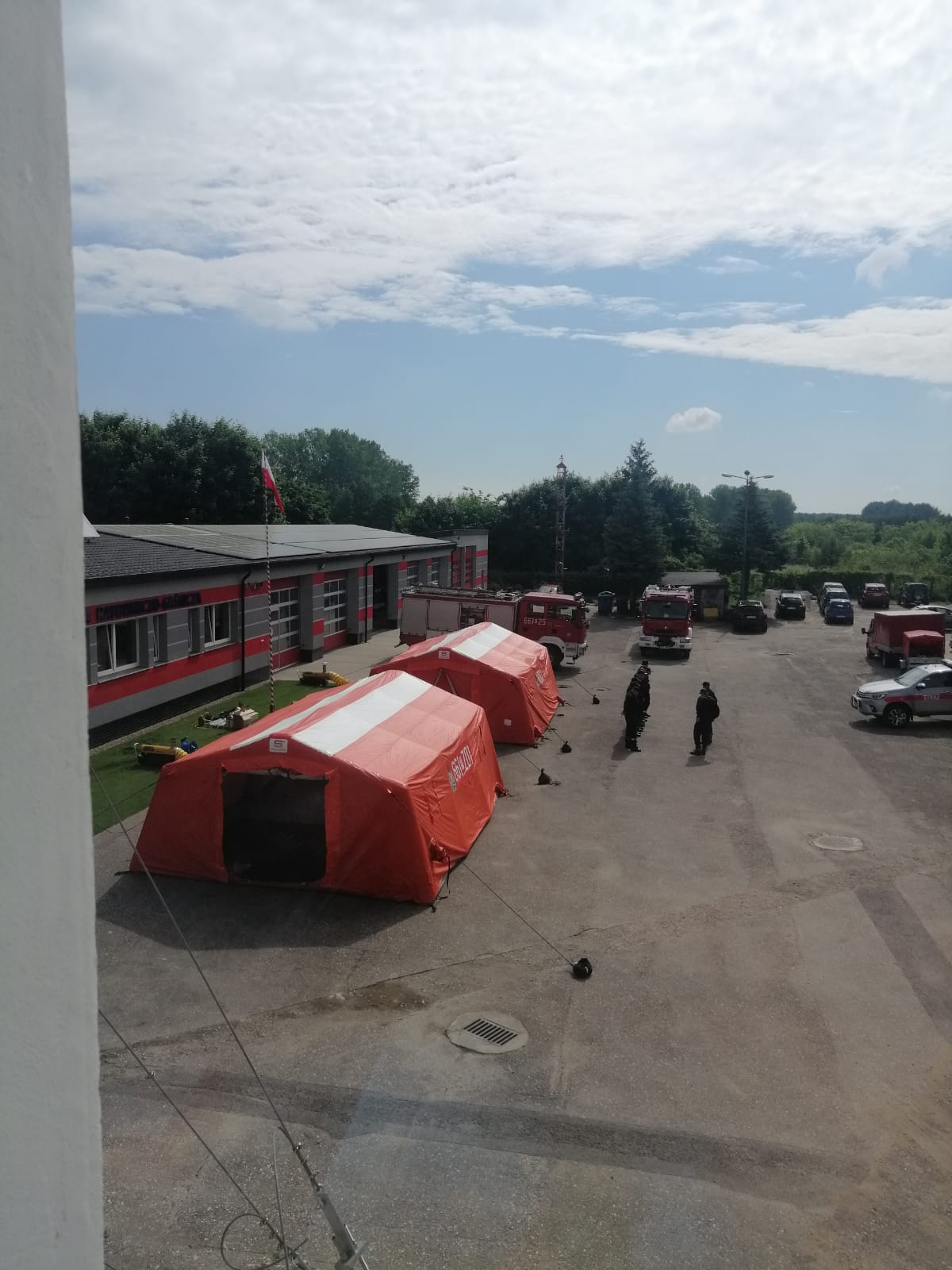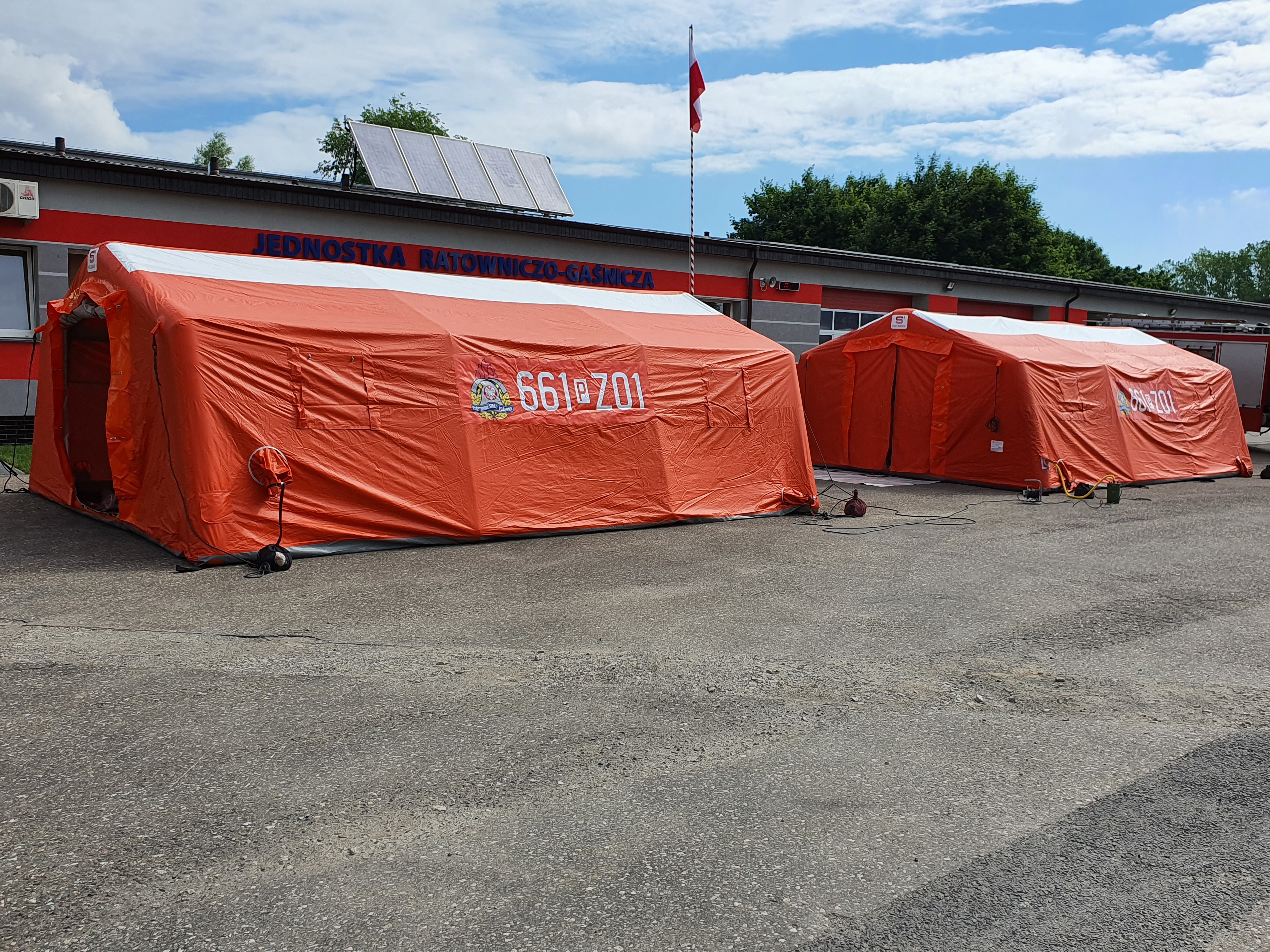 11 czerwca 2021r. w ramach cyklicznych zajęć doskonalenia zawodowego strażacy z jednostki ratowniczo-gaśniczej Komendy Powiatowej PSP w Złotowie, przeprowadzili ćwiczenia w zakresie budowy zaplecza logistycznego na potrzeby działań ratowniczych z wykorzystaniem np. namiotów pneumatycznych NPS37 oraz przyczepy z agregatem prądotwórczym, co pozwoliło na pełną niezależność w zakresie zasilania energetycznego. W oparciu o posiadane wyposażenie, istnieje praktyczna możliwość w każdych warunkach atmosferycznych stworzenia odpowiedniego zaplecza dla osób poszkodowanych bądź ewakuowanych, zorganizowania sztabu akcji ratowniczej lub bezpośrednich warunków dla większej liczby ratowników, w przypadku konieczności zapewnienia ciągłości działań.