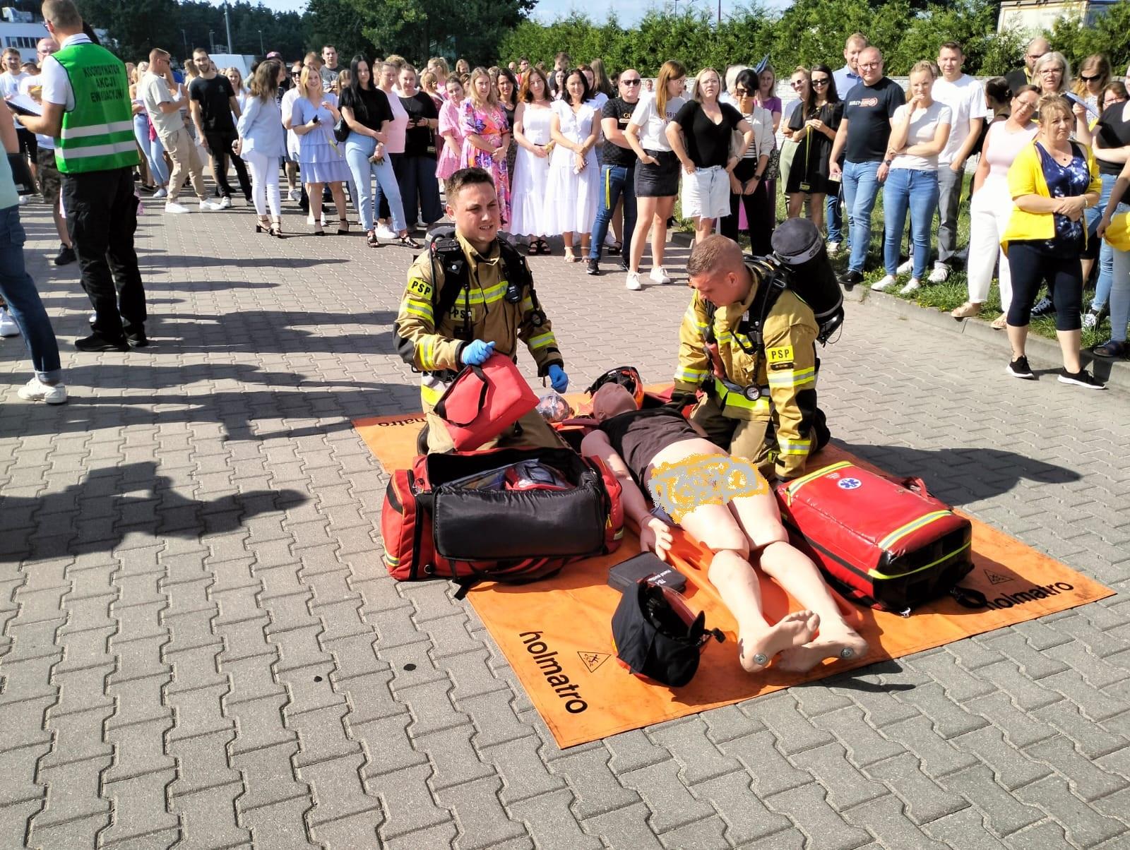 Korzystając z okazji strażacy przeprowadzili pokaz udzielania kwalifikowanej pierwszej pomocy na wypadek podejrzenia zatrucia wziewnego, oparzeń i utraty przytomności, scenariusz taki bowiem często występuje w przypadku osób poszkodowanych w wyniku pożaru.