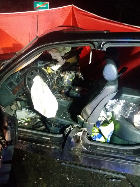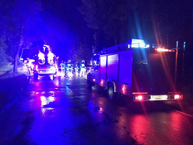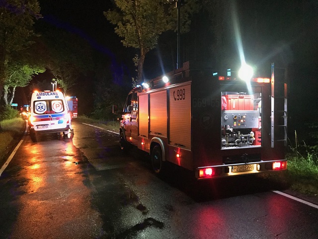 W godzinach nocnych 28 sierpnia 2020 roku na wylocie ze Złotowa – kierunek Kujan, droga wojewódzka 189 doszło do zdarzenia drogowego z udziałem jednego samochodu osobowego, który na łuku drogi wypadł z niej i uderzył w przydrożne drzewa. W chwili dojazdu służb w środku w pojeździe przebywały dwie poszkodowane osoby, trzecia z osób w radiowozie Policji – bez obrażeń. Jak się okazało w czasie działań czwarta najprawdopodobniej oddaliła się z miejsca wypadku. Strażacy zabezpieczyli miejsce zdarzenia, oświetlili teren akcji i przystąpili do wykonywania dostępu i ewakuacji pozostających poszkodowanych w pojeździe. W tym celu został użyty hydrauliczny sprzęt ratowniczy. Po wykonaniu powyższych czynności przekazano Zespołom ratownictwa medycznego, które potwierdziły zgon jednej osoby poszkodowanej. W miejscu zdarzenia działania prowadził również prokurator, z którym Policja będzie prowadzić czynności dochodzeniowo śledcze co do okoliczności i przyczyn zdarzenia. Strażacy w uzgodnieniu z Policją sformułowali tyralierę i przystąpili do przeszukania okolicznych lasów przy pasie drogowym w celu poszukiwania kierowcy pojazdu – poszukiwania okazały się jednak nieskuteczne. Strażacy w końcowej fazie prowadzonych działań przystąpili do usunięcia resztek powypadkowych z jezdni oraz sorpcji płynów eksploatacyjnych. Przywrócono ruch na drodze.