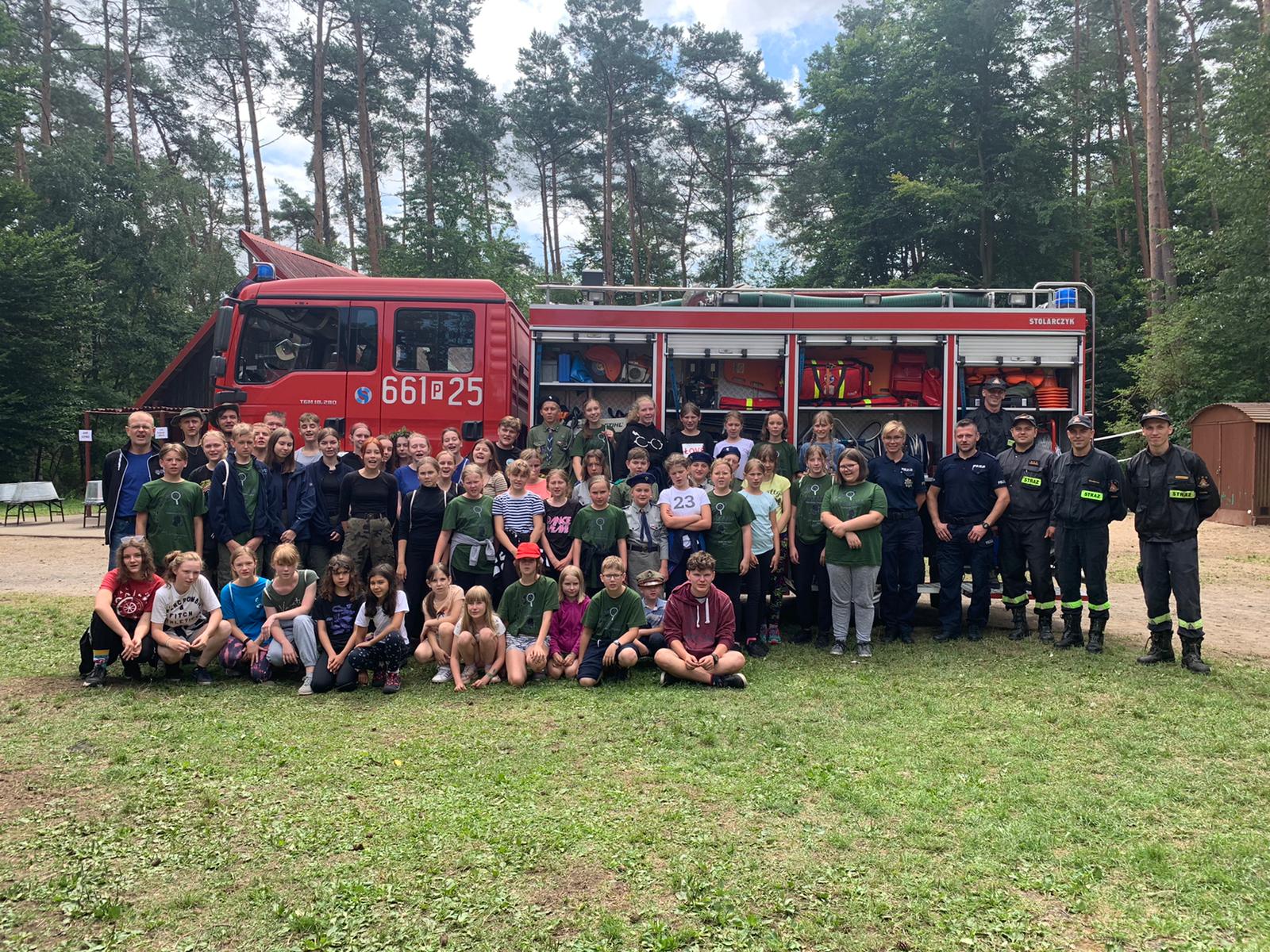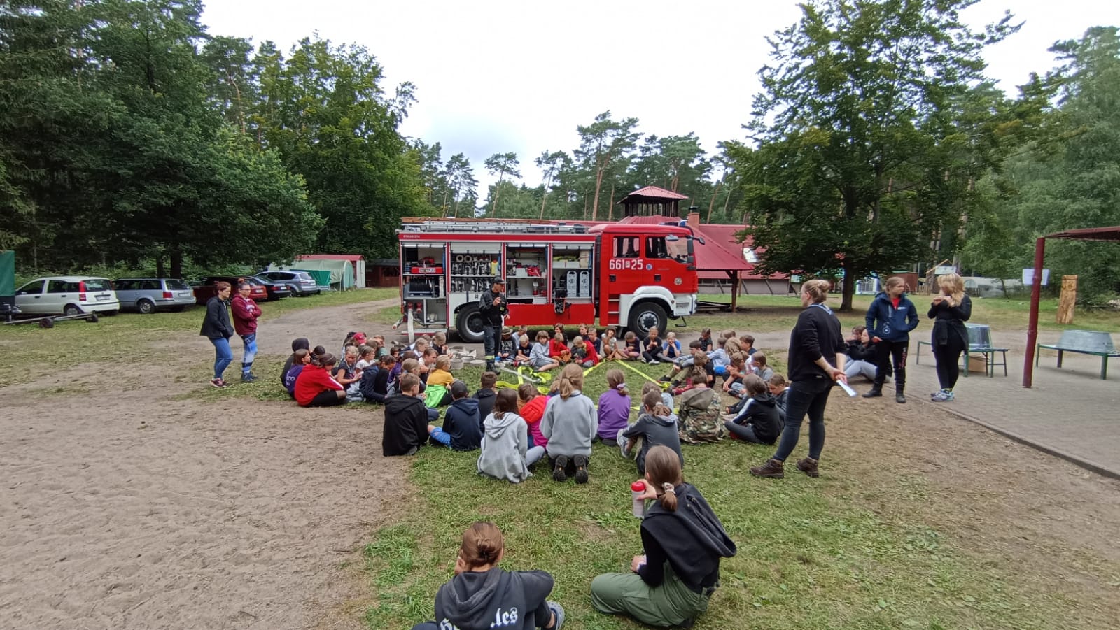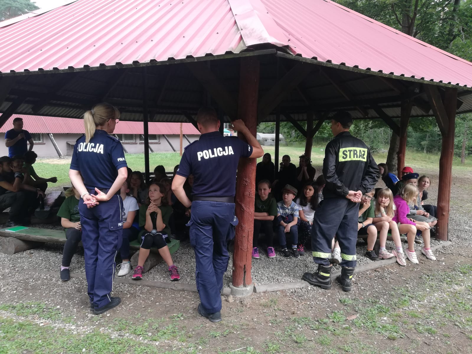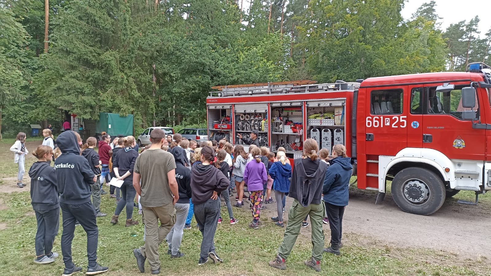W ramach akcji Bezpieczne Wakacje strażacy z Komendy Powiatowej PSP w Złotowie wspólnie z funkcjonariuszami złotowskiej Komendy Powiatowej Policji prowadzą w miesiącu lipcu akcje prewencyjno-informacyjną wśród harcerzy, którzy wypoczywają na terenie powiatu złotowskiego. 21 lipca funkcjonariusze odwiedzili Stanicę Harcerską w Podgajach, gdzie przeprowadzone zostały pokazy sprzętu ratowniczego oraz omówiono podstawowe zagadnienia w zakresie bezpieczeństwa, w szczególności w okresie wakacyjnego wypoczynku, bezpieczeństwa nad wodą i podczas przebywania w obrębie obszarów leśnych. Nieodzownym elementem działań prewencyjnych jest także doskonalenie postępowania podczas wystąpienia anomalii pogodowych i mogących wówczas wystąpić potencjalnych zagrożeń. Wychodząc naprzeciw tym sytuacjom harcerskie stanice utrzymują m.in. stałą łączność radiową ze złotowskim stanowiskiem kierowania komendanta powiatowego, jak również przeprowadzane są odpowiednie ćwiczenia ewakuacyjne bezpośrednio na obozowiskach.