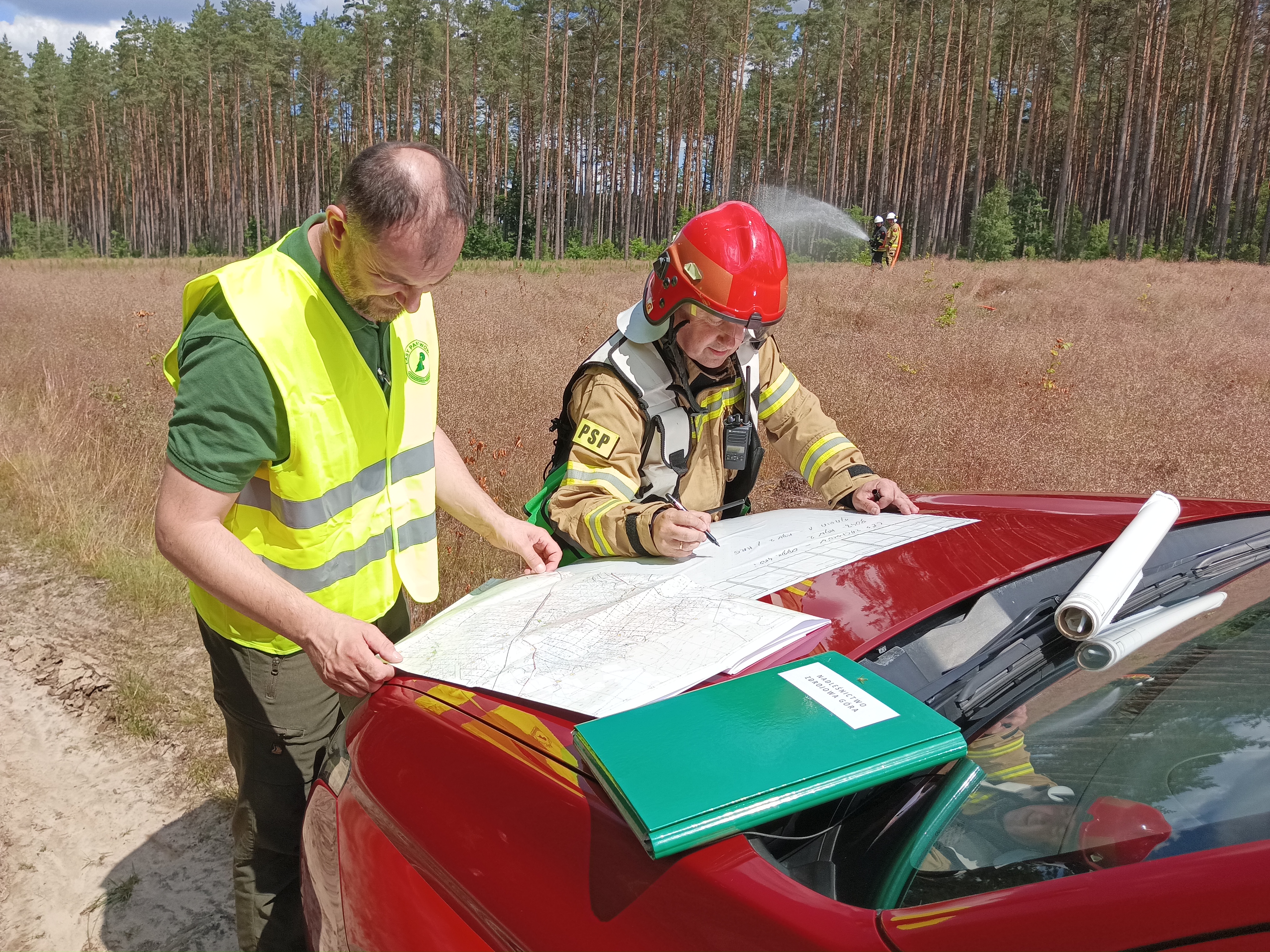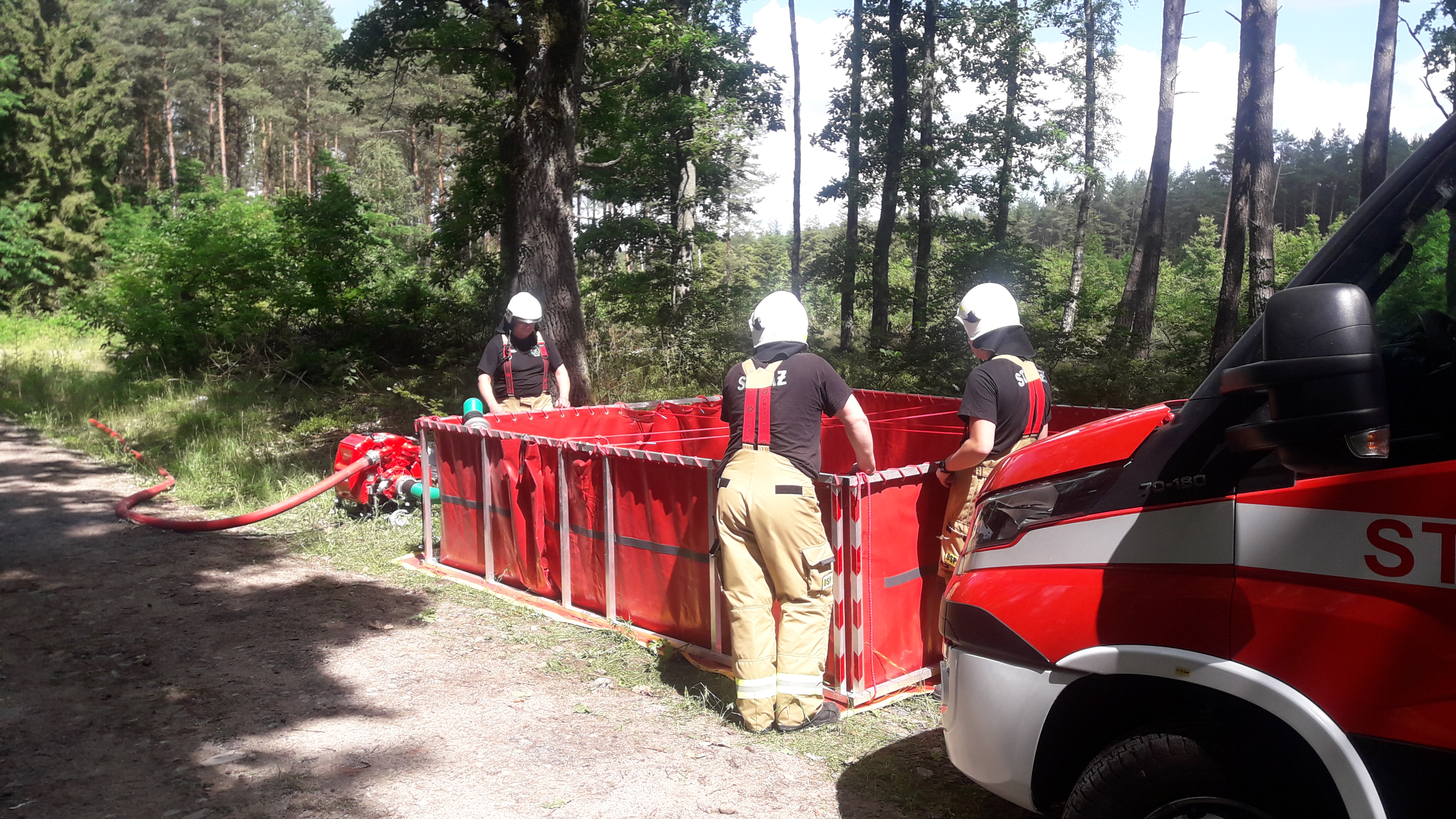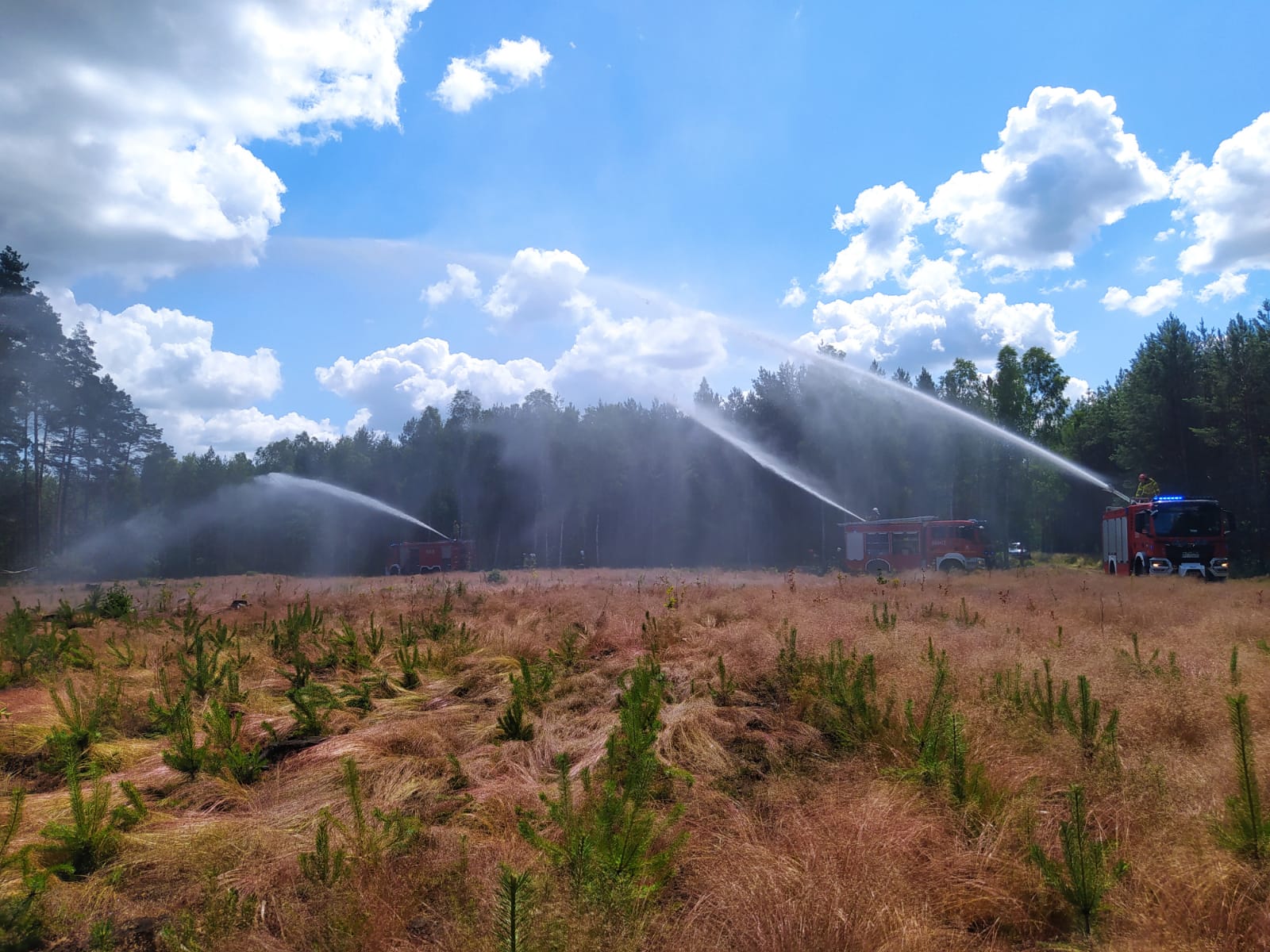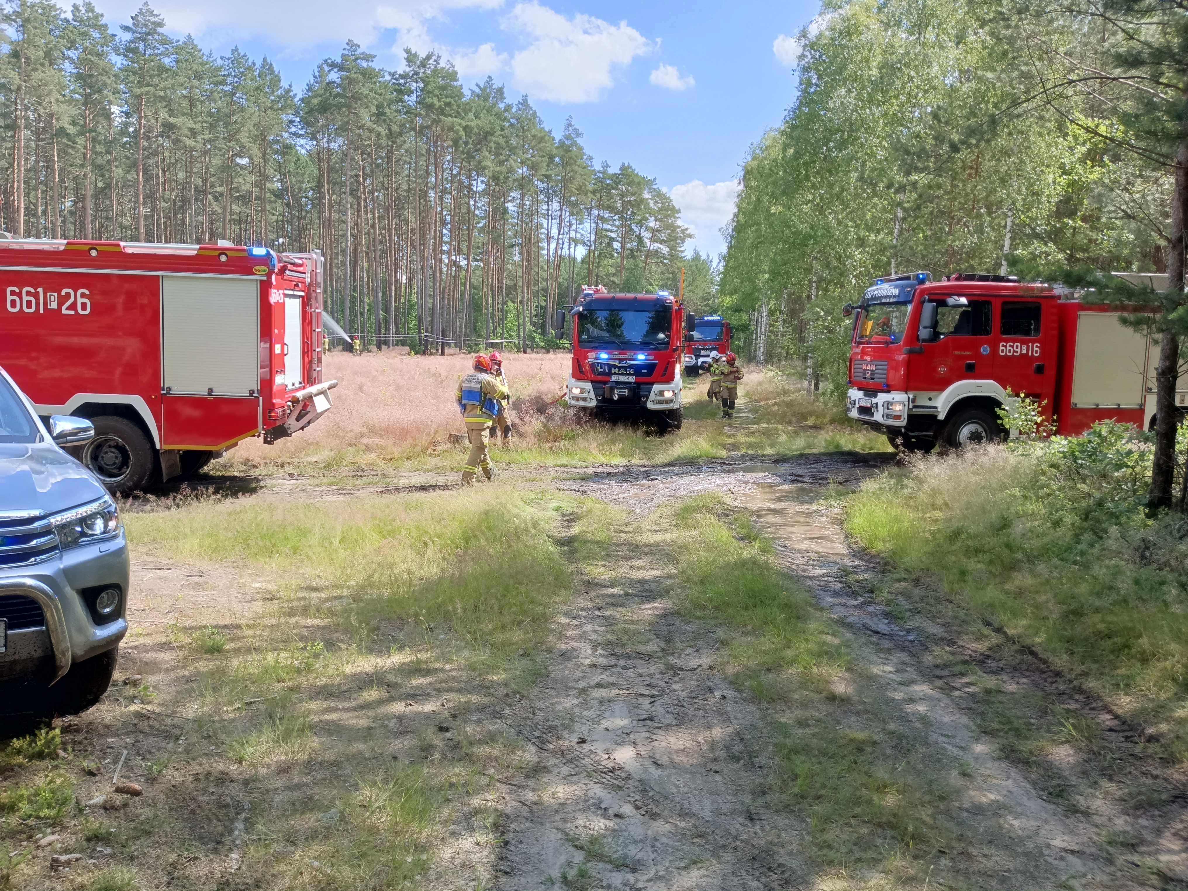 29 czerwca br. przeprowadzone zostały ćwiczenia zgrywające dla jednostek ochrony przeciwpożarowej na kompleksie leśnym Nadleśnictwa Zdrojowa Góra w okolicach m. Skórka. Do pozorowanego pożaru lasu zadysponowanych zostało łącznie 11 pojazdów ratowniczo-gaśniczych i specjalnych w obsadzie 50 strażaków OSP i PSP wspieranych przez służby leśne oraz Policję. Główne założenia obejmowały doskonalenie prowadzenia działań gaśniczych, organizację zaopatrzenia wodnego w tym metodą przepompowywania wody na duże odległości oraz sposobem dowożenia, tworzenie buforów wodnych a także organizowanie łączności radiowej na potrzeby kierującego działaniem ratowniczym. Całość ćwiczeń koordynowała kadra dowódcza złotowskiej komendy PSP a bezpośrednimi obserwatorami byli m.in. Burmistrz Gminy i Miasta Krajenka Pan Stefan Kitela, Nadleśniczy Nadleśnictwa Zdrojowa Góra Pan Adam Standio oraz Komendant Powiatowy PSP w Złotowie kpt. Tomasz Lewandowski. W ćwiczeniach uczestniczyły jednostki OSP Krajenka, OSP Podróżna, OSP Augustowo-Głubczyn, OSP Śmiardowo Krajeńskie, OSP Stawnica, OSP Stawnica, OSP Batorowo oraz zastępy z KP PSP Piła i KP PSP Złotów.