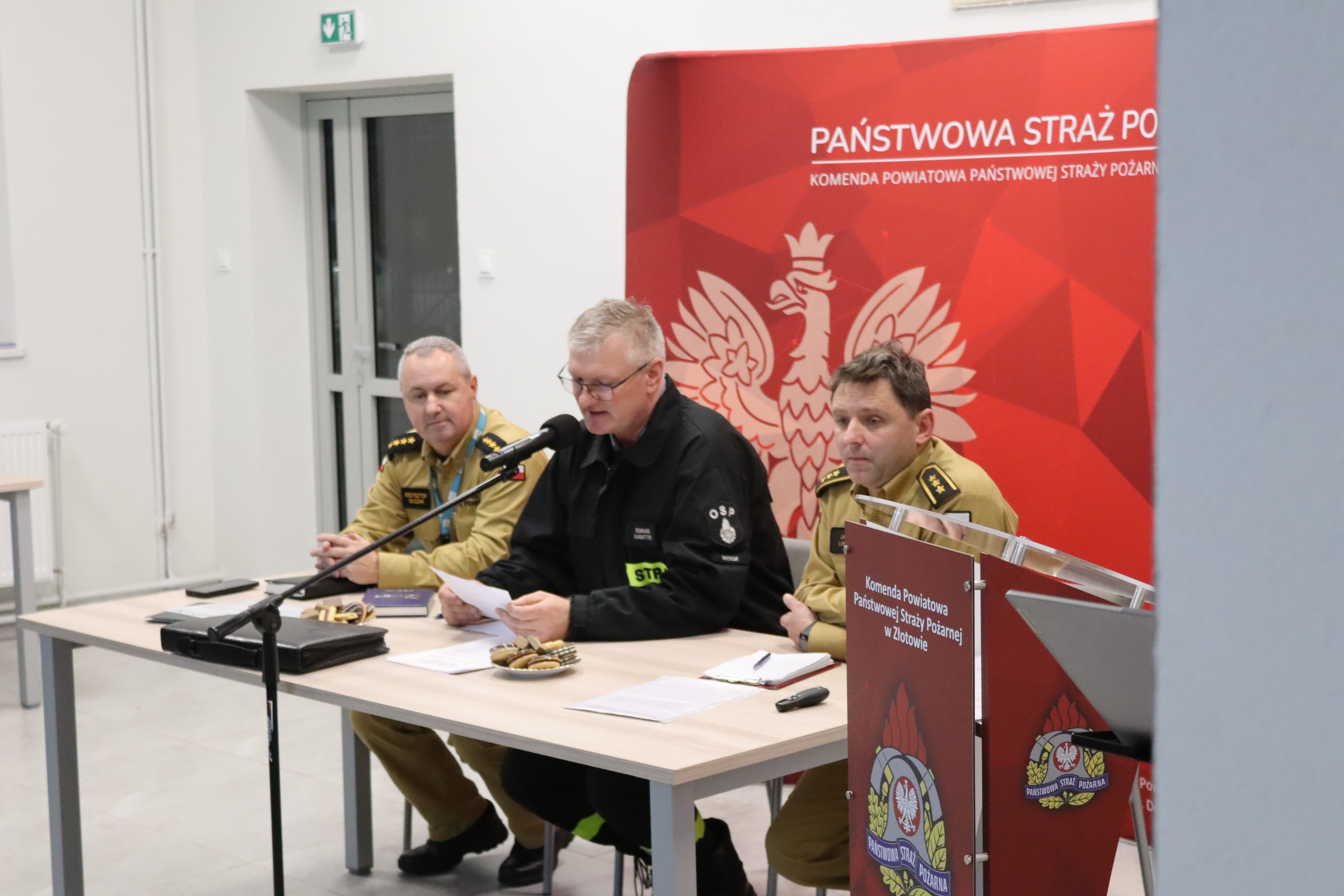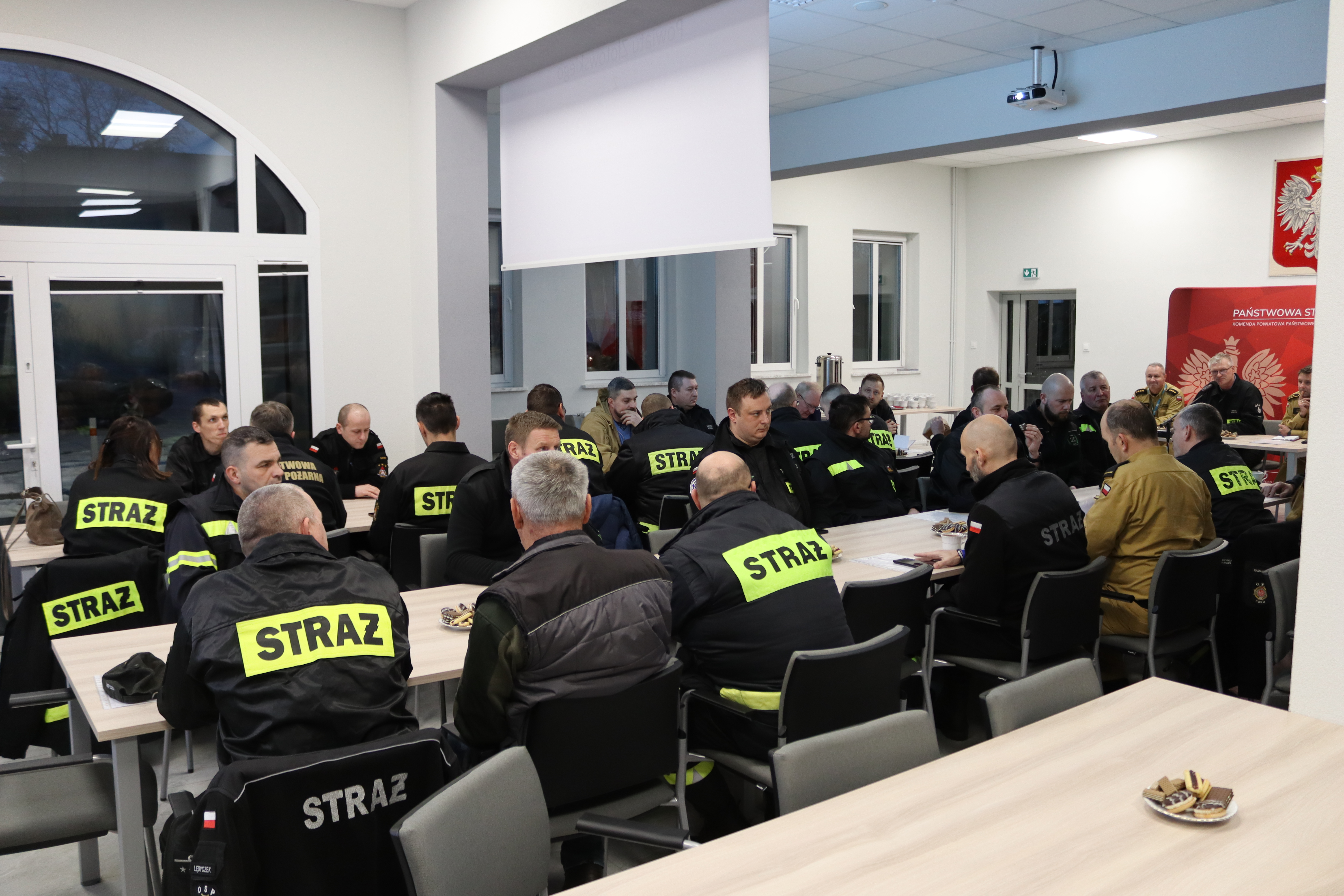 8 stycznia br. w Komendzie Powiatowej PSP w Złotowie zorganizowana została narada z udziałem przedstawicieli jednostek OSP z terenu powiatu złotowskiego, członkami Zarządu Powiatowego ZOSP RP, komendantami gminnymi/miejskimi ZOSP RP oraz kadrą kierowniczą złotowskiej komendy powiatowej. Szeroki wachlarz zagadnień statutowych w tym związanych z rozpoczynającą się kampania sprawozdawczą przedstawił dh Edmund Kabattek Prezes Zarządu Powiatowego. Podsumowanie minionego roku oraz plany na rok bieżący w zakresie spraw operacyjnych, szkoleniowych, organizacji łączności, rozliczania dotacji, bezpieczeństwa higieny służby podczas prowadzenia działań i akcji ratowniczych przedstawił p.o. komendanta powiatowego PSP st. kpt. Krzysztof Olczak oraz funkcjonariusze poszczególnych wydziałów.