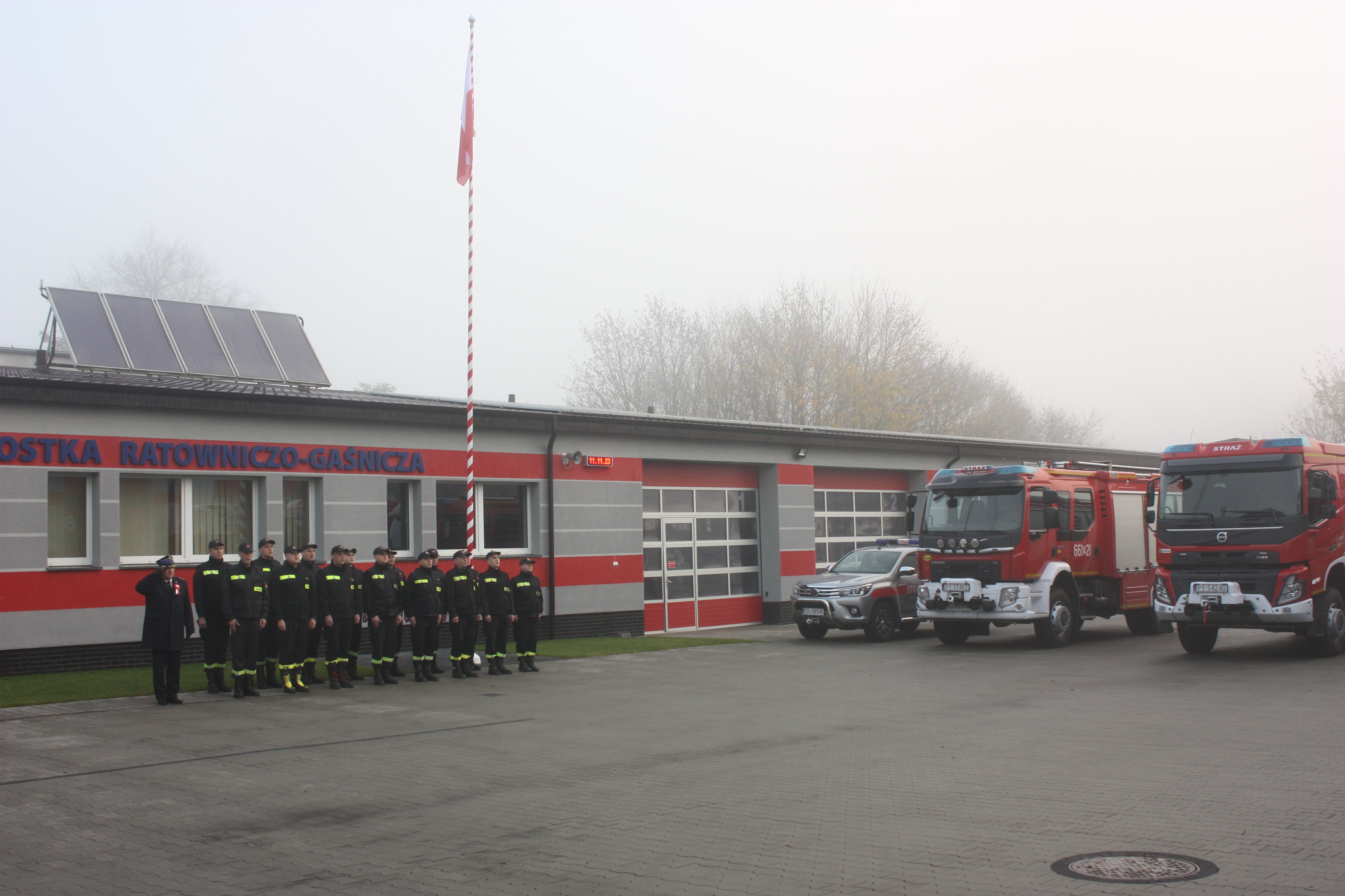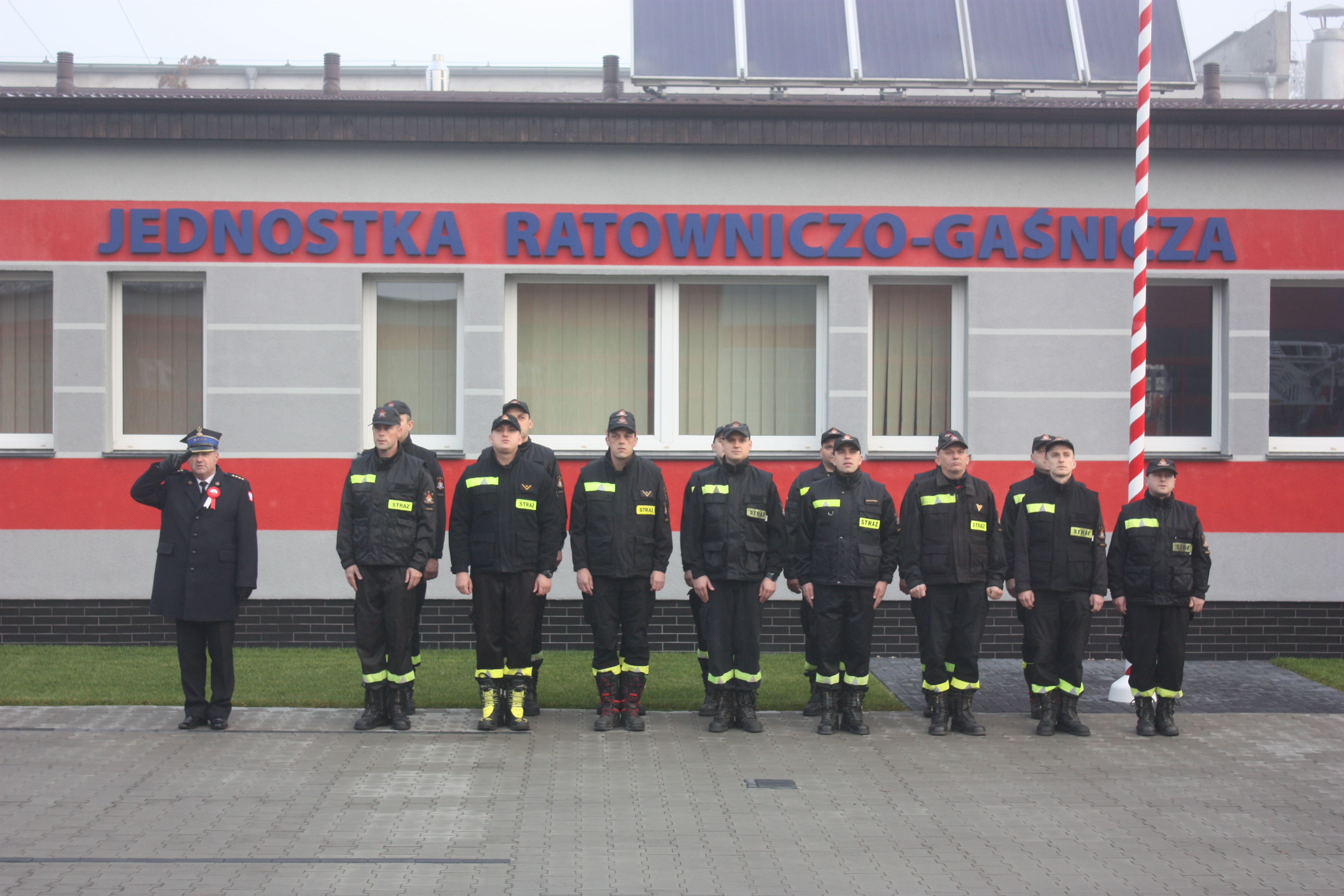 w pozostałych miejscowościach na terenie powiatu złotowskiego. Także 11 listopada br. o godz. 12.00 strażacy włączyli się do ogólnopolskiej akcji „ Niepodległa do hymnu” a zmiana służby w Jednostce Ratowniczo-Gaśniczej miała charakter uroczysty w celu upamiętnienia tego szczególnego historycznego wydarzenia.