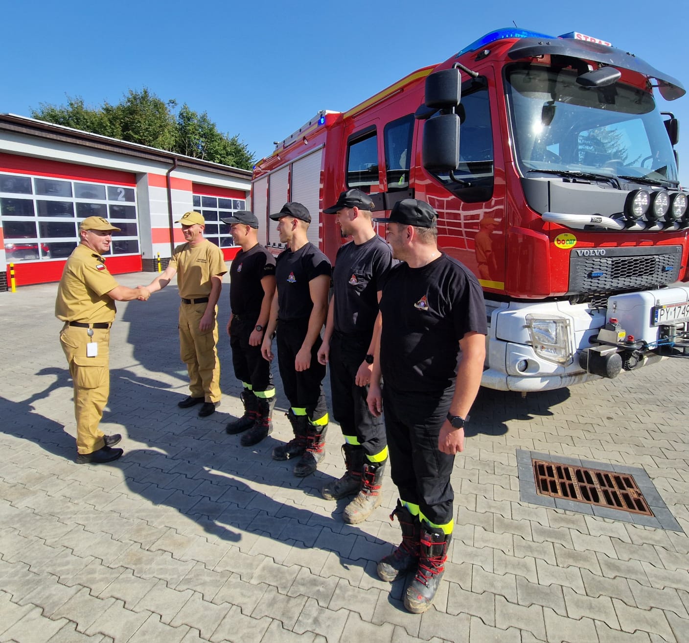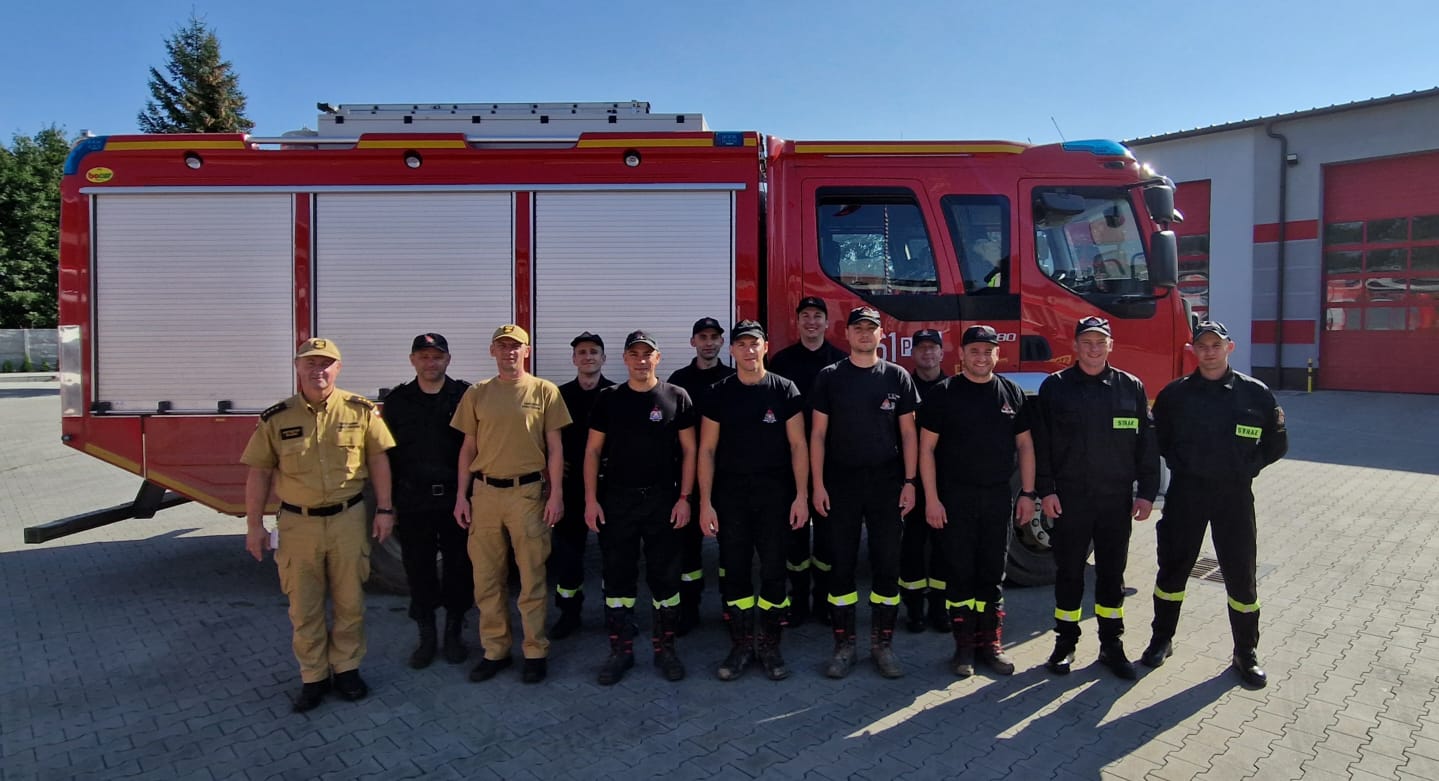 Powracających strażaków przywitał Komendant Powiatowy Państwowej Straży Pożarnej w Złotowie st. kpt. Krzysztof Olczak wraz z strażakami Jednostki ratowniczo-gaśniczej w Złotowie.