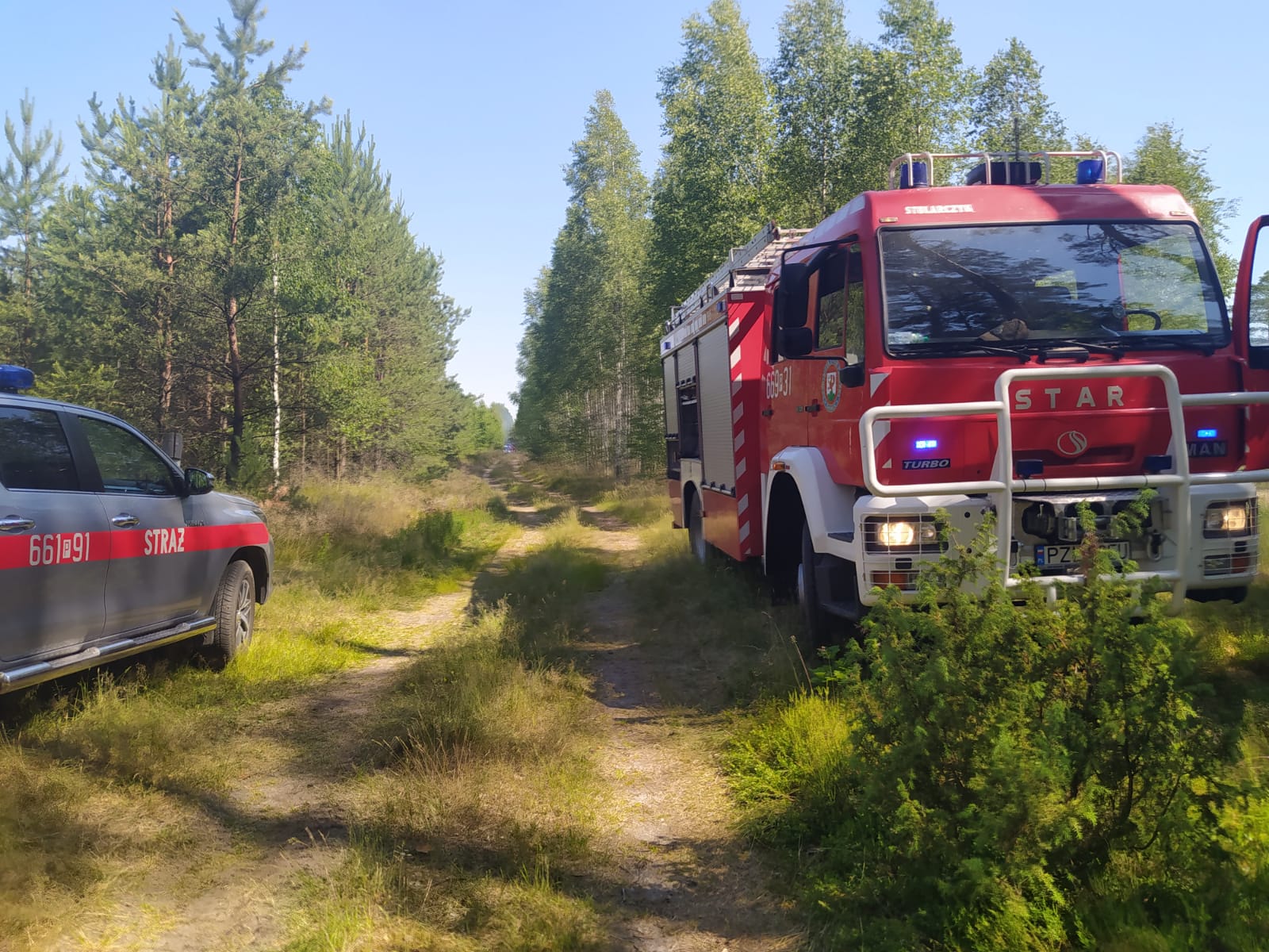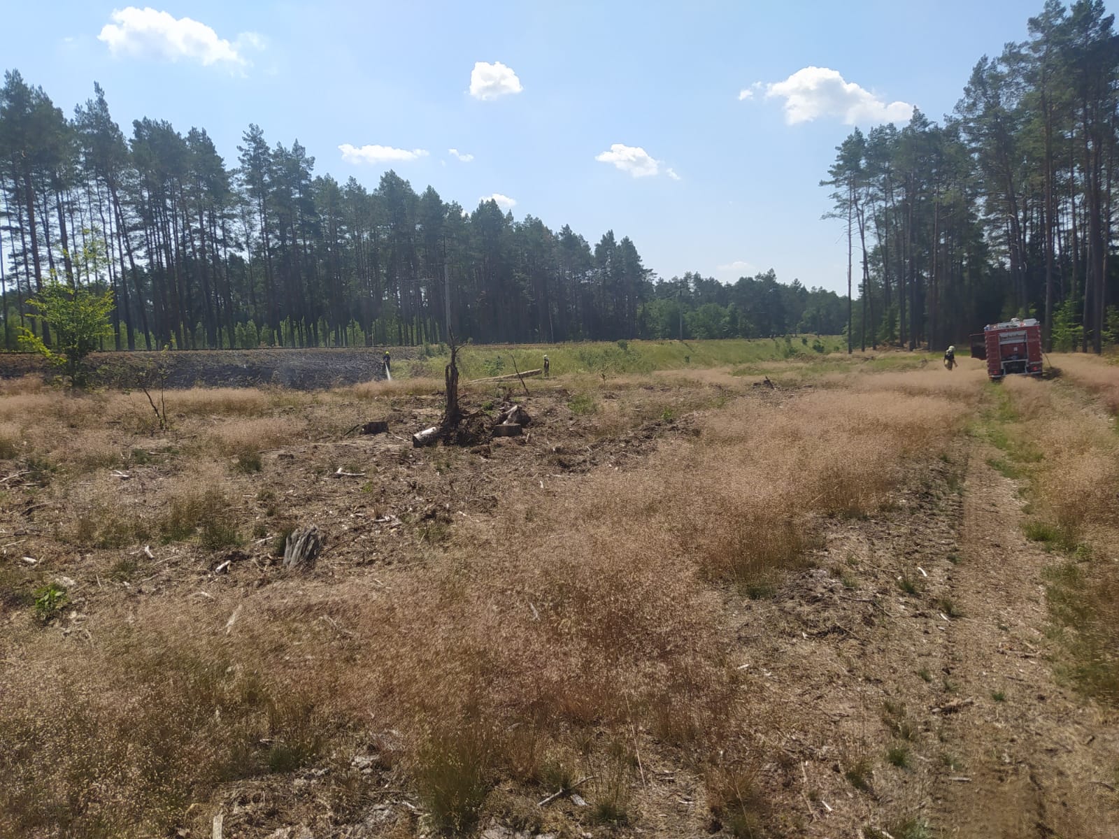 i OSP a całość działań koordynowana była przez grupę operacyjną komendanta powiatowego we współdziałaniu ze służbami lokalnych nadleśnictw oraz służbą dyżurną PKP. W toku prowadzonych działań gaśniczych pożar został ograniczony