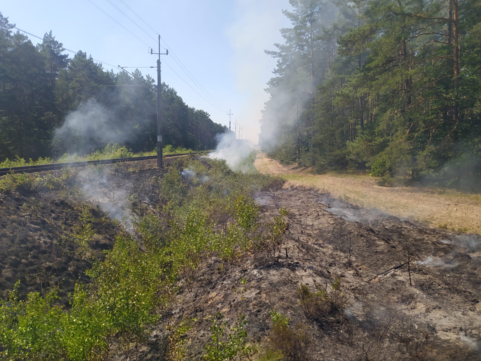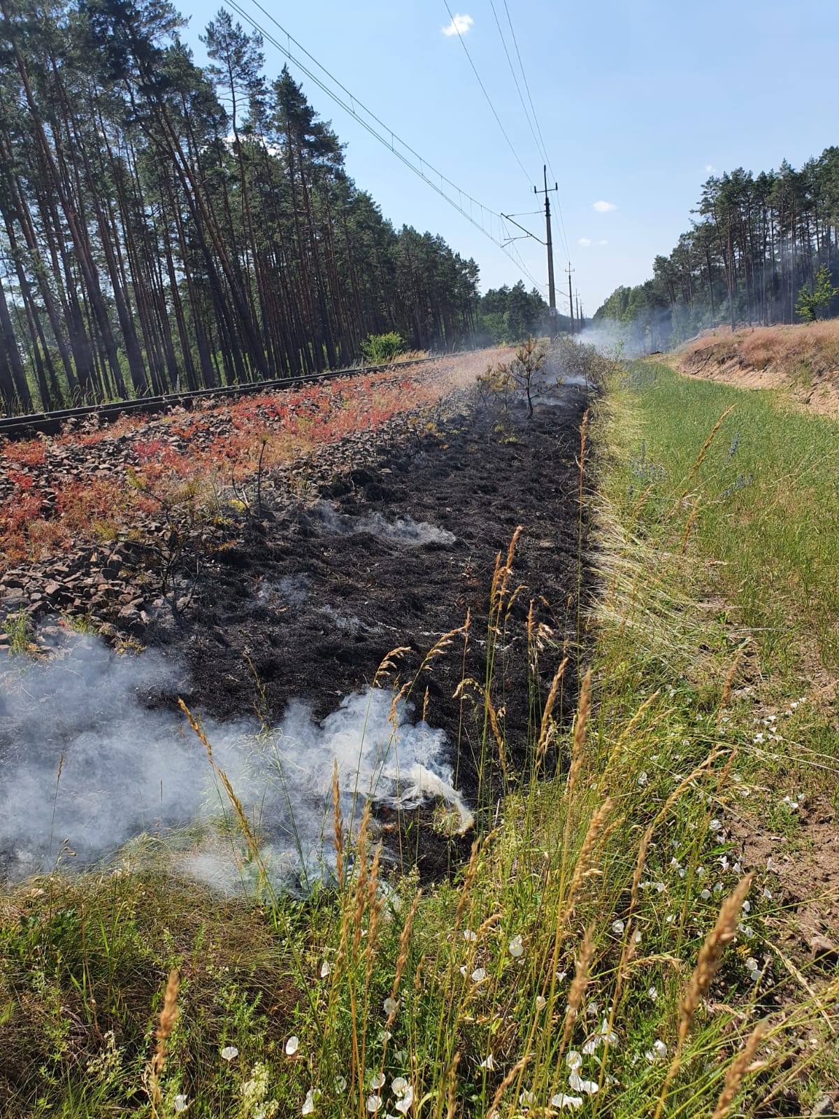 i ugaszony bezpośrednio w obrębie linii kolejowej i przylegających nasypów, likwidując tym samym zagrożenie w szczególności dla obszarów leśnych. Łącznie w działaniach zaangażowanych było 10 strażackich zastępów PSP i OSP w obsadzie 43 strażaków.