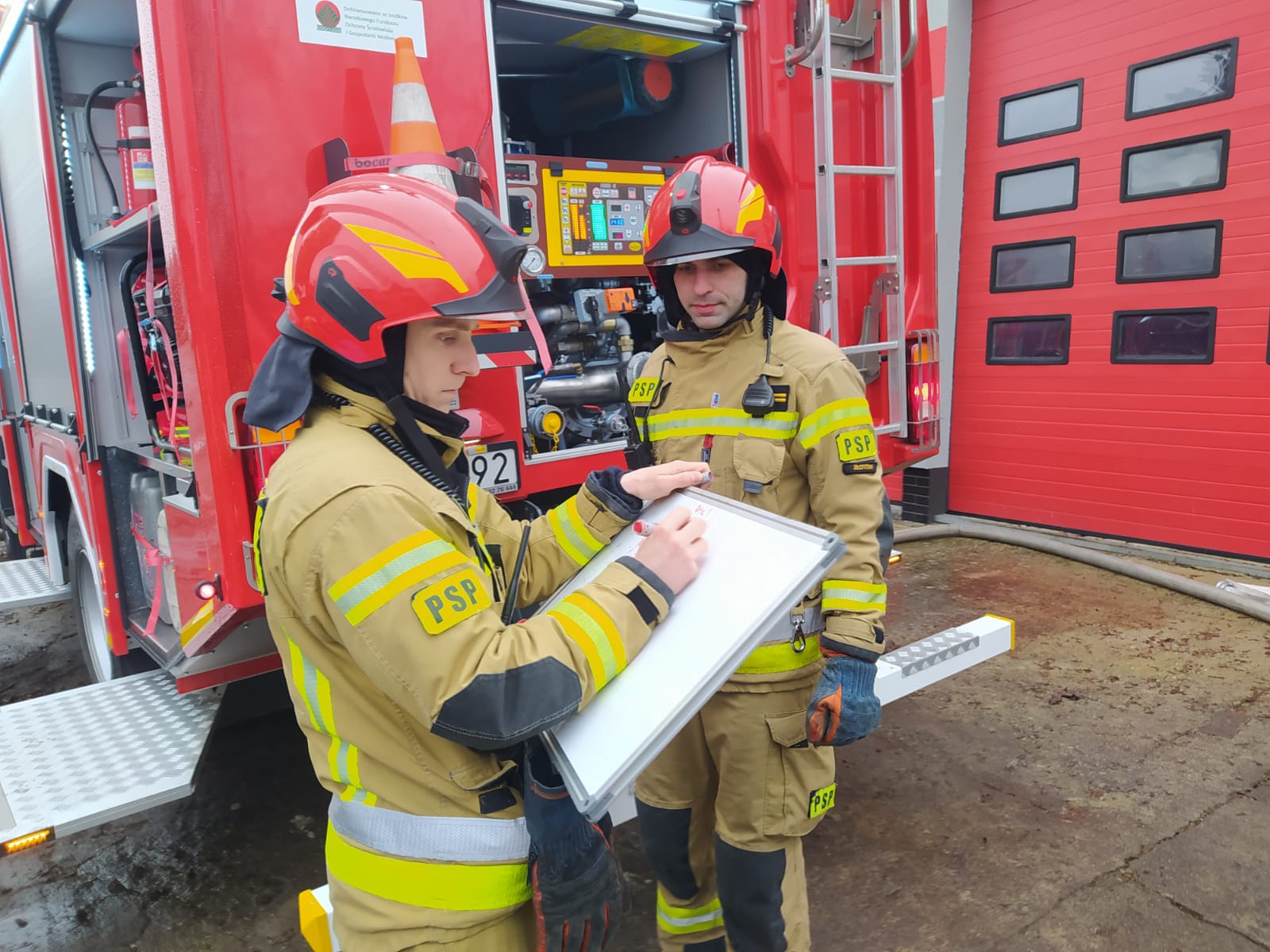 w tym podawanie prądów gaśniczych jak również pobieranie wody z zewnętrznego źródła. Istotnym elementem było też prowadzenie działań gaśniczych podczas pożarów wewnętrznych w tym w zakresie prowadzenia działań gaśniczych i bieżącego monitorowania pracy ratowników w sprzęcie ochrony układu oddechowego, organizowanie łączności na potrzeby Kierującego Działaniem Ratowniczym jak również doskonalenie w zakresie bezpośredniego przygotowania ratowników do prowadzenia działań w oparciu o posiadane środki ochrony indywidualnej i pozostały sprzęt ratowniczy.