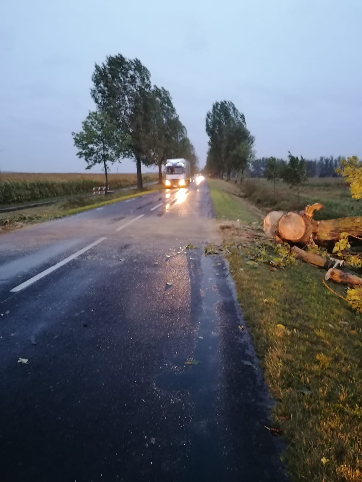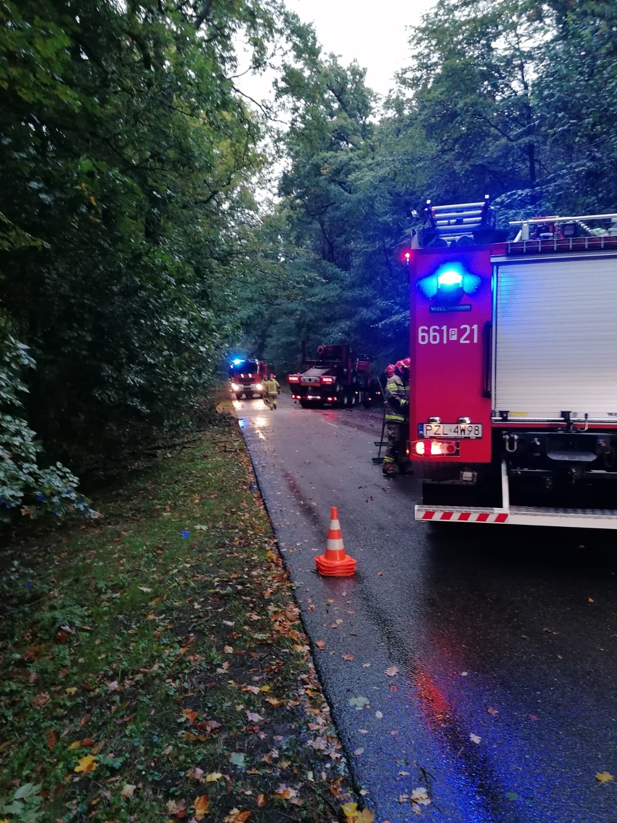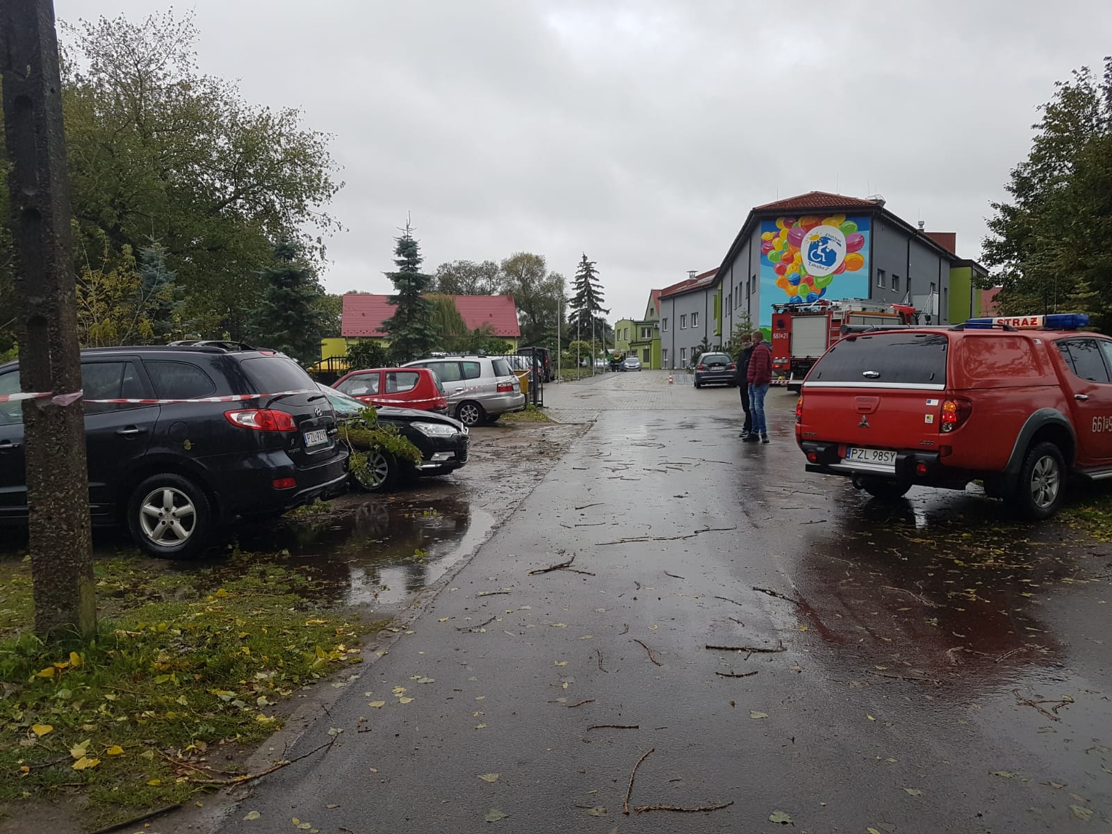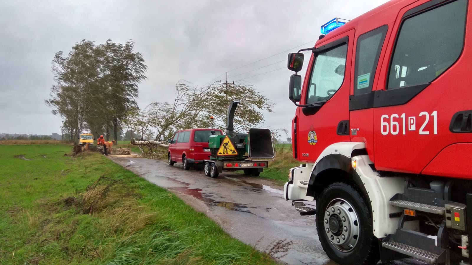 14 października br. w godzinach porannych w związku z przemieszczaniem się frontu atmosferycznego połączonego z intensywnymi opadami deszczu i silnym porywistym wiatrem, na terenie powiatu złotowskiego odnotowano łącznie 14 zdarzeń, w których zachodziła konieczność interwencji jednostek Straży Pożarnej. Główne zadania zadysponowanych zastępów polegały na usuwaniu z jezdni powalonych drzew, wiatrołomów blokujących lokalne drogi, uniemożliwiając tym samym przejazd pojazdów samochodowych.