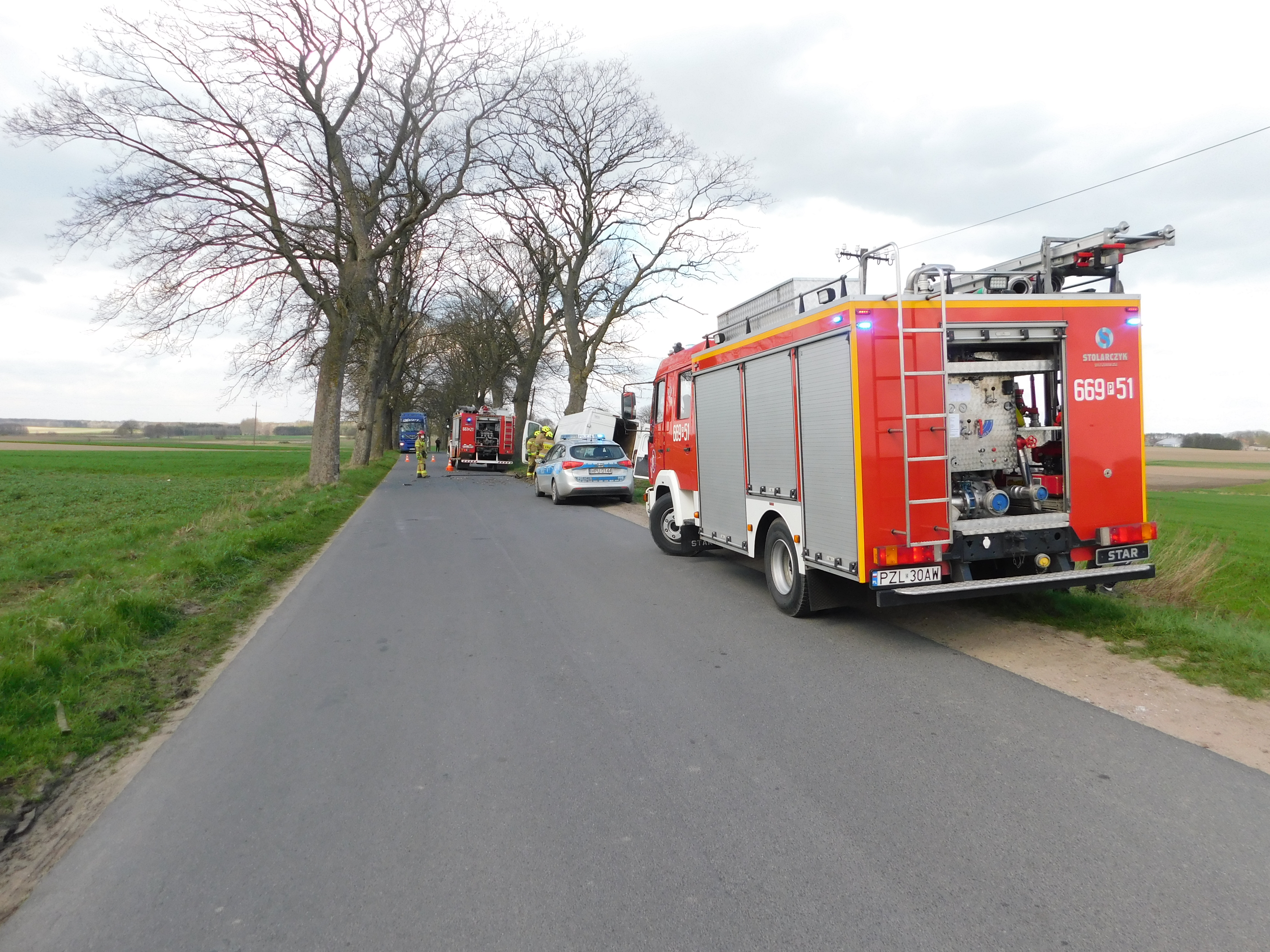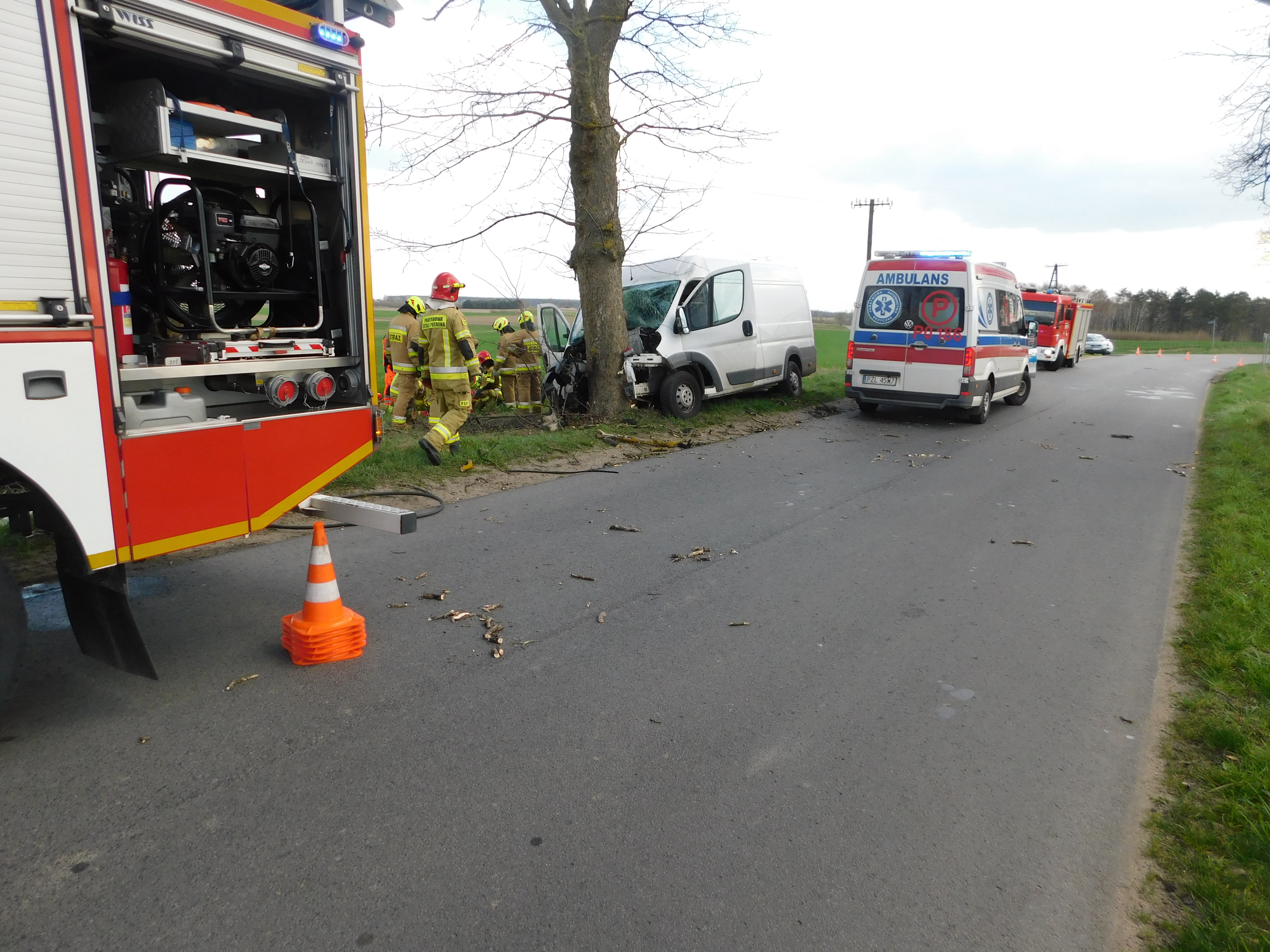 21 kwietnia kilka minut przed godziną 15:00 do Stanowiska Kierowania Komendanta Powiatowego wpłynęło zgłoszenie z którego wynikało iż samochód dostawczy uderzył w drzewo na drodze powiatowej Prochy-Stara Wiśniewka. Na miejsce niezwłocznie zadysponowane zostały zastępy z JRG Złotów i OSP Zakrzewo. Przybyłe na miejsce jednostki zabezpieczyły miejsce zdarzenia, równocześnie rozpoczęto działania ratownicze związane z udzieleniem pomocy poszkodowanemu kierowcy w ramach KPP, który znajdował się poza pojazdem. Ruch na drodze został wstrzymany. Sprawdzono pojazd pod względem ewentualnych wycieków płynów eksploatacyjnych - takich zagrożeń nie stwierdzono, równocześnie odłączono zasilanie z akumulatora pojazdu. Po przybyciu na miejsce Zespół Ratownictwa Medycznego przejął opiekę nad uczestnikiem zdarzenia. Okoliczności i przyczyny zdarzenia ustala Policja. W dziłania zaangażowane były zastępy z JRG Złotów i OSP Zakrzewo oraz Policja i Pogotowie Ratunkowe.
