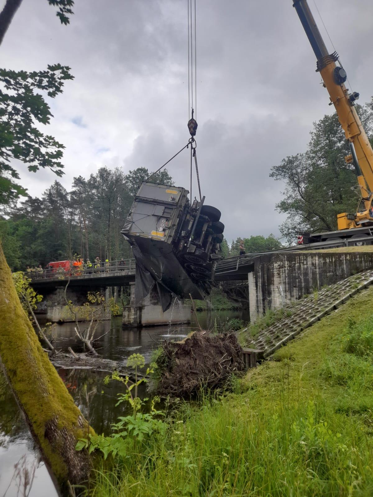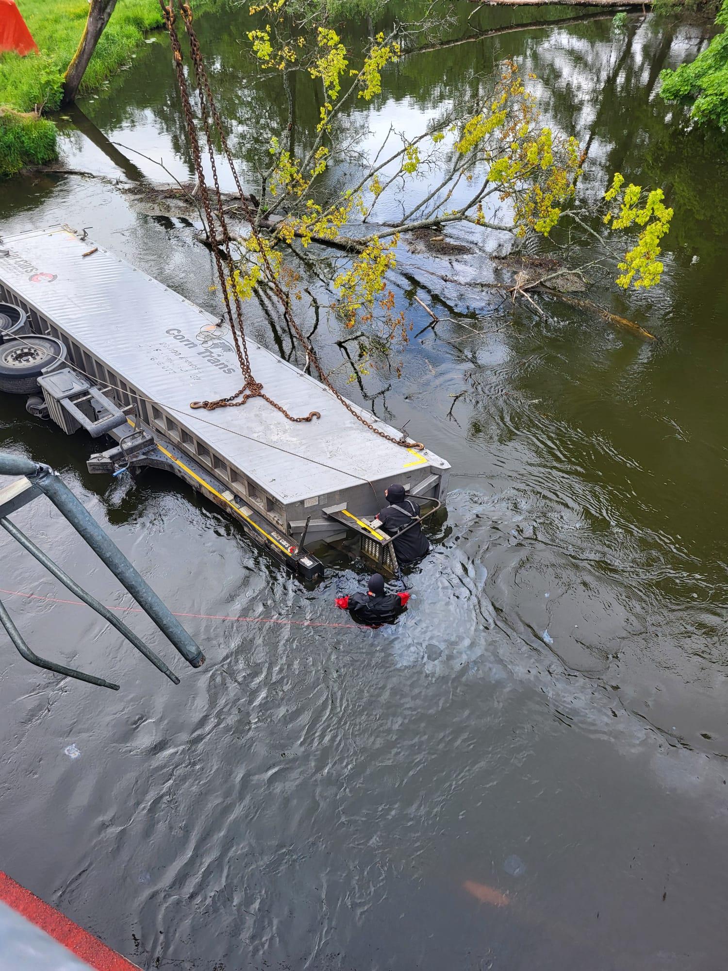 23 maja br. o godzinie 09.50 do stanowiska kierowania komendanta powiatowego PSP w Złotowie wpłynęło zgłoszenie o zdarzeniu na drodze wojewódzkiej nr 189, gdzie z mostu drogowego w nurt rzeki Gwdy wpadł ciągnik siodłowy wraz z naczepą transportową. Na miejsce zdarzenia zadysponowano najbliższe jednostki OSP, zastępy JRG Złotów wraz z łodzią ratowniczą oraz grupy specjalistyczne z KP PSP Piła, działające w zakresie ratownictwa wodno-nurkowego oraz ratownictwa chemiczno-ekologicznego. Całość działań koordynowała grupa operacyjna komendanta powiatowego PSP.