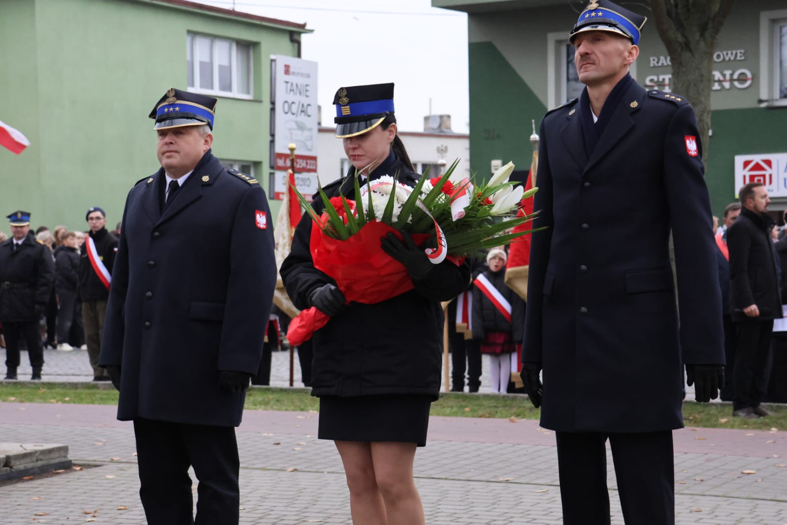 Następnie delegacja KP PSP Żnin, oraz poczet sztandarowy udali się na powiatowe obchody 107-tej rocznicy odzyskania Niepodległości przez Polskę, które rozpoczęła msza święta w kościele pw. Św. Floriana. Na zakończenie delegacje jednostek samorządowych złożyły wiązanki pod pomnikiem Katyńskim, na ul. 700lecia.