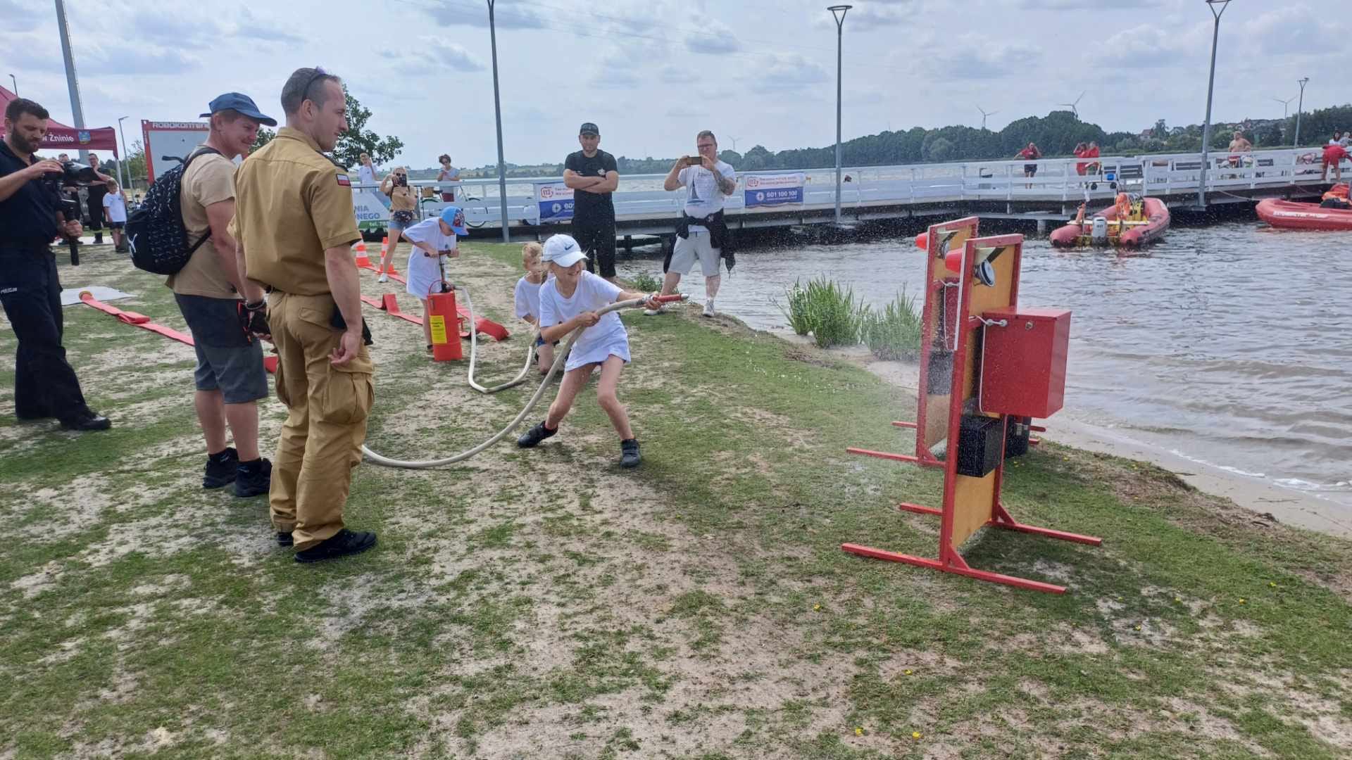 W dniu wczorajszym o godz. 13.30, na terenie Centrum Sportów Wodnych Miejskiego Ośrodka Sportu w Żninie, odbyła się impreza plenerowa pn. „Bezpieczne wakacje”, organizowana przez Wydział Bezpieczeństwa i Zarządzania Kryzysowego Kujawsko-Pomorskiego Urzędu Wojewódzkiego w Bydgoszczy. Podczas wydarzenia odbył się briefing prasowy z udziałem Wojewody Kujawsko – Pomorskiego Mikołaja Bogdanowicza, szefów służb odpowiedzialnych za bezpieczeństwo oraz burmistrza Żnina. Państwową Straż Pożarną reprezentował Kujawsko – Pomorski Komendant Wojewódzki nadbryg. Jacek Kaczmarek. W trakcie imprezy zaprezentowano pokaz ratownictwa wodnego oraz stoiska profilaktyczno-promocyjne służb Wodnego Ochotniczego Pogotowia Ratunkowego, Policji oraz Państwowej Straży Pożarnej.