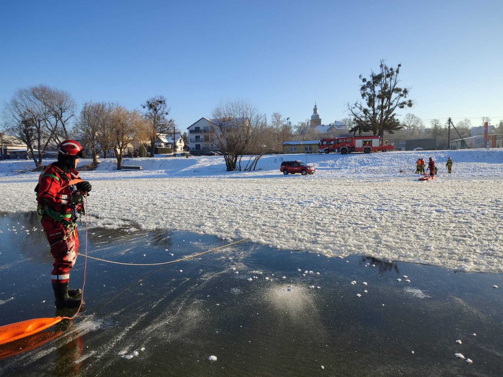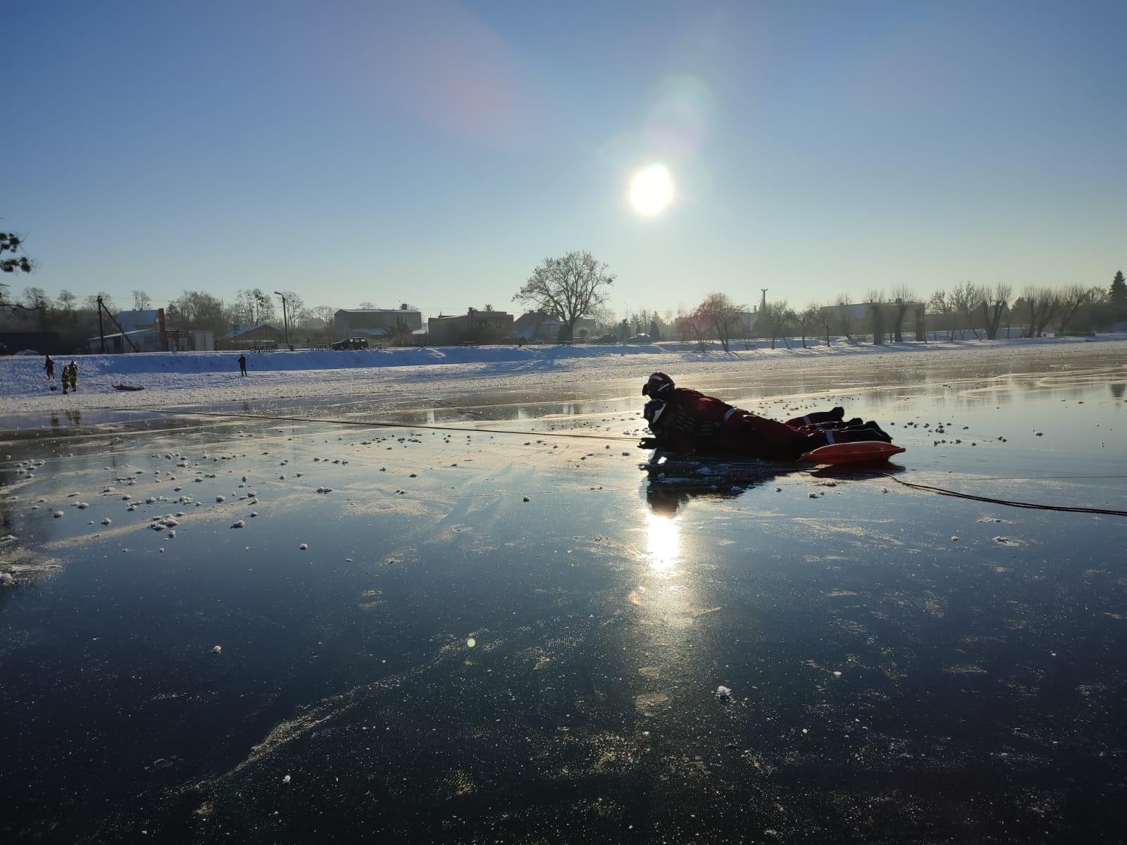 Siarczysty mróz dający się wszystkim we znaki, na przestrzeni kilku ostatnich dni skuł już większość zbiorników wodnych. Przyciąga to amatorów łyżwiarstwa, ślizgawek oraz łowienia ryb spod lodu. Na przypadki gdyby to lód okazał się za słaby są przygotowani żnińscy strażacy. Przy pomocy odpowiedniego sprzętu i pod okiem dowódcy ćwiczą techniki ratowania osób na akwenach zalodzonych.