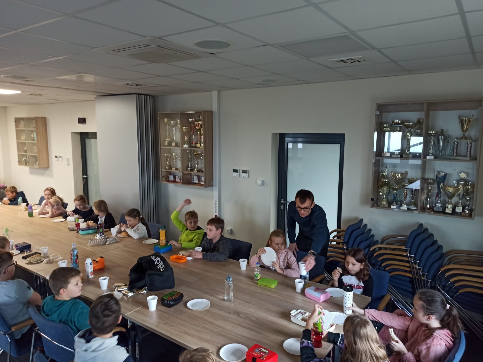 Wizytę w Komendzie poprzedziło wspólne śniadanie ze strażakami a następnie odbyły się panele szkoleniowe. Aspirant Daniel Osmański wraz ze st. ogn. Danutą Bierońską omówił między innymi udzielanie pierwszej pomocy medycznej, bezpieczeństwo pożarowe dot. kampanii społecznej "czad i ogień obudź czujność". Nie zabrakło również spotkania z Komendantem Powiatowym PSP w Żninie st. bryg. Grzegorzem Rutkowskim, który znalazł się w lawinie pytań. Dzieci pytały o ciekawe i zabawne wyjazdy do działań jak również o powody wstąpienia do służby strażackiej. Nie zabrakło również pytania czy Komendant miał kontakt ze żmiją zygzakowatą?