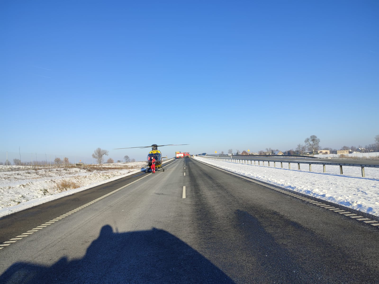 Jak się okazało fragment lodu oderwał się z dachu pojazdu ciężarowego jadącego w tym samym kierunku. Do zdarzenia doszło na wysokości 119 km drogi S5 w kierunku Gniezna. Do zdarzenia zadysponowano zastępy GBA, GBARt oraz SLOp. Przybyli na miejsce strażacy zabezpieczyli miejsce zdarzenia i udzielili pomocy medycznej osobom, które brały udział w zdarzeniu do czasu przybycia na miejsce ZRM LPR. Najbardziej poszkodowana pasażerka samochodu osobowego została zabrana przez LPR do szpitala.