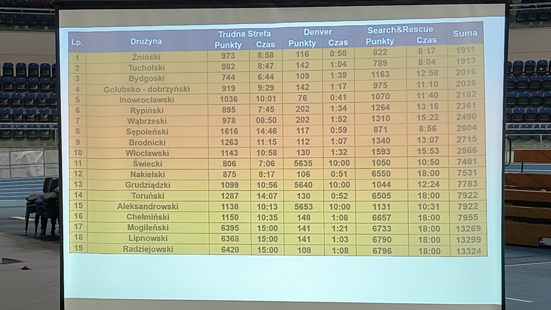Na zawody ze żnińskiej Jednostki Ratowniczo-Gaśniczej pojechał zespół w składzie mł. asp. Miłosz Kozłowski, st. str. Przemysław Osikowski, str. Mariusz Siadak, kpt. Tomasz Szmyt, dowódcą zespołu był kpt. Hubert Kurowski.