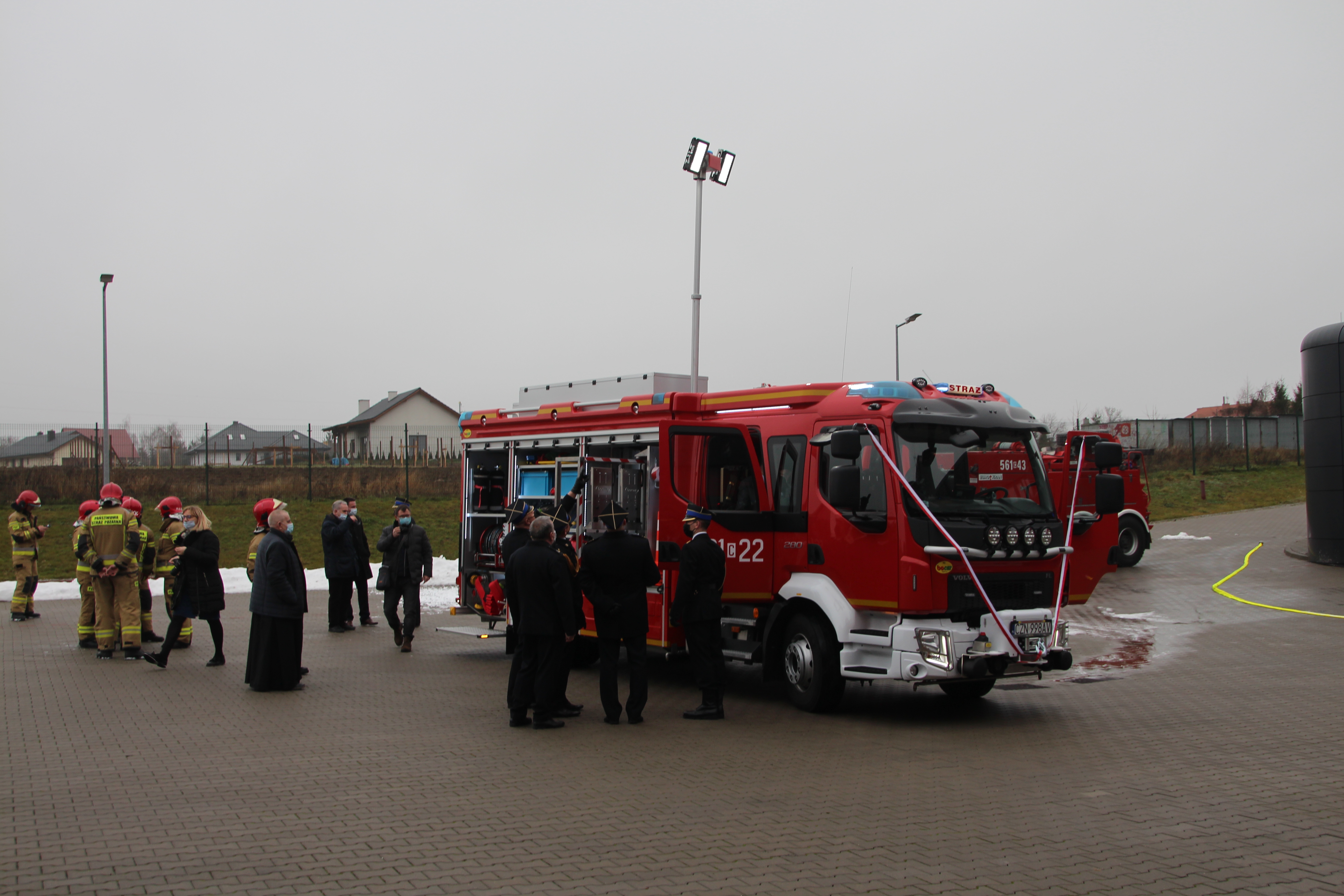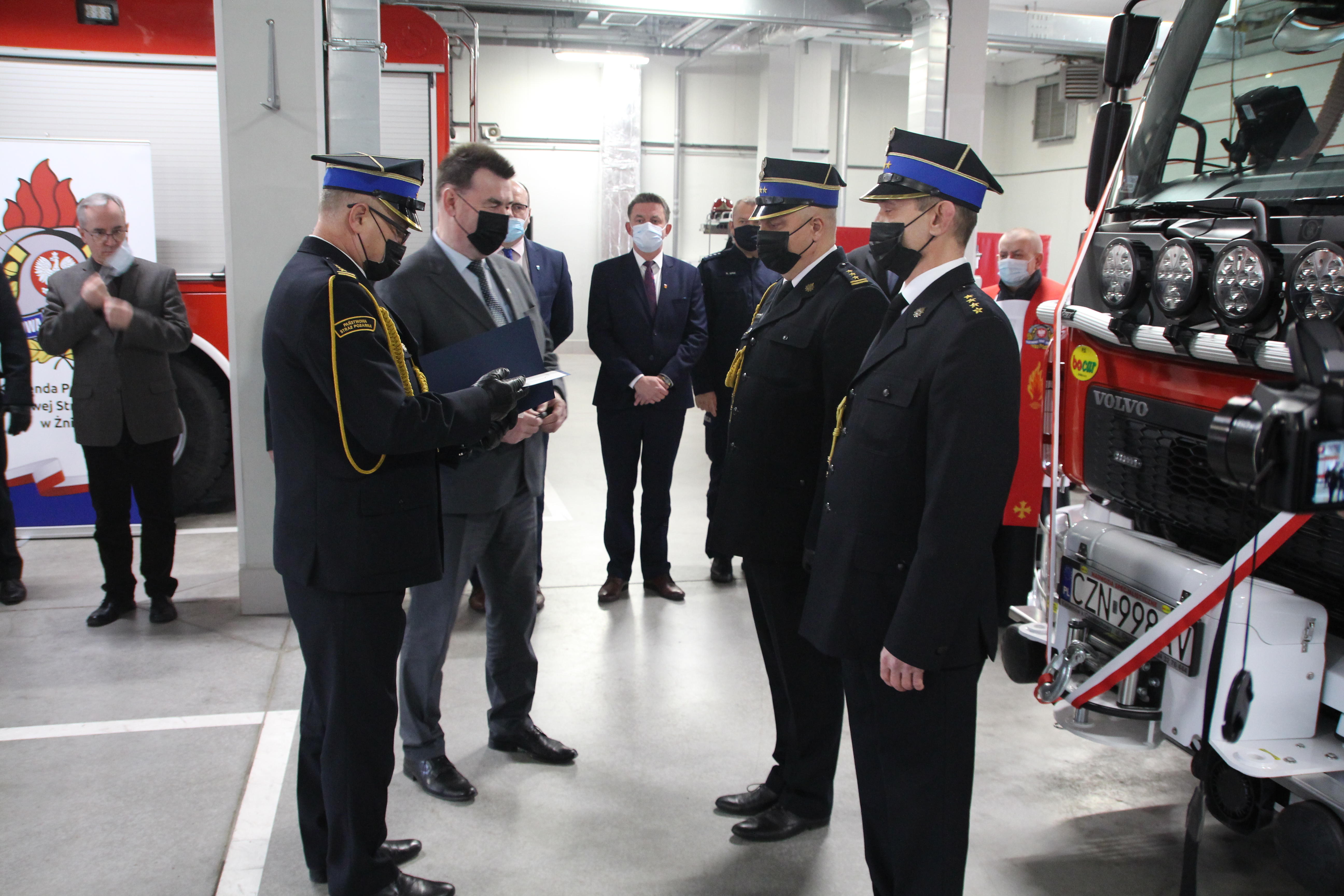 Oficjalnego przekazania kluczyków do nowego wozu bojowego na ręce st. bryg. Grzegorza Rutkowskiego - Komendanta Powiatowego PSP w Żninie oraz st. kpt. Mirosława Wrzesińskiego - Dowódcy Jednostki Ratowniczo-Gaśniczej dokonali: