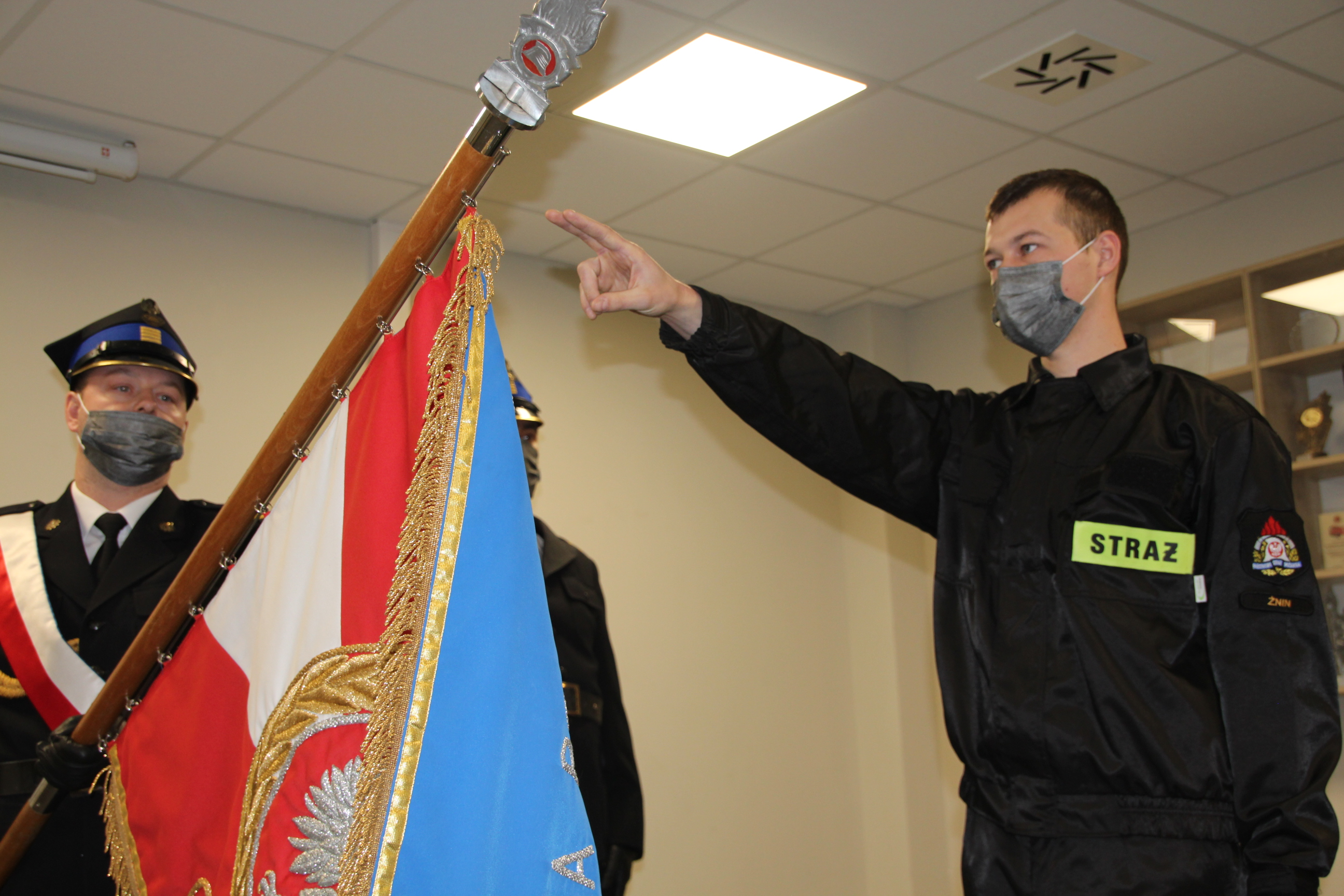 W piątek 16kwietnia 2021 roku o godzinie 8.30 miało miejsce uroczyste ślubowanie nowoprzyjętego strażaka wstępującego do służby przygotowawczej w Komendzie Powiatowej Państwowej Straży Pożarnej w Żninie.
