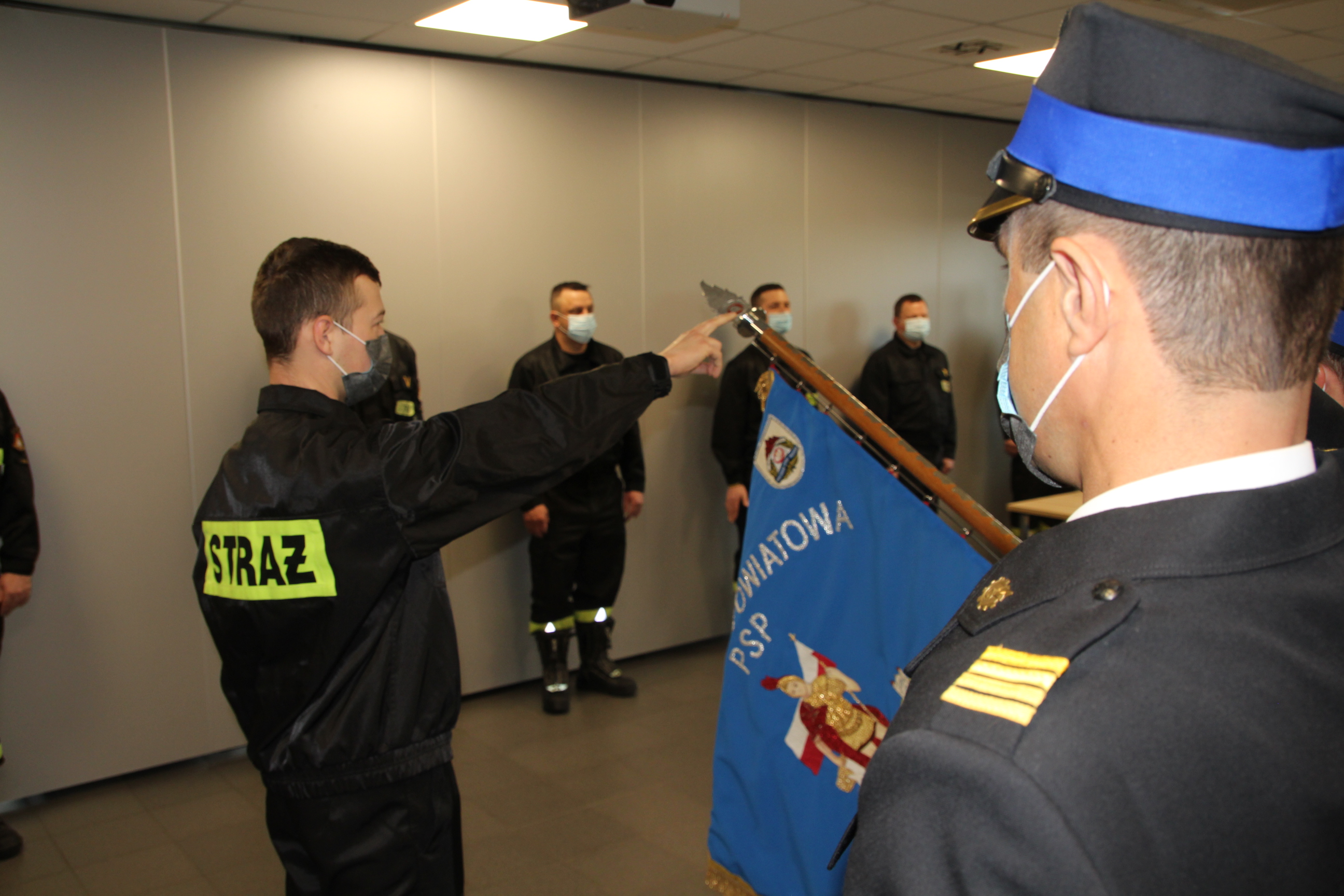 W krótkim wprowadzeniu do uroczystości komendant powiatowy przypomniał, że ślubowanie dla każdego strażaka jest bardzo uroczystym zapadającym w pamięć momentem w życiu zawodowym. Podkreślił, że kodeks postępowania zawarty w wypowiedzianych słowach roty stanowi symbol pełnego włączenia do cieszącej się społecznym prestiżem służby. Zobowiązuje jednocześnie każdego funkcjonariusza do reprezentowania dobrego imienia nie tylko w czasie służby. Podejmując służbę w Państwowej Straży Pożarnej, strażak składa ślubowanie według następującej roty: