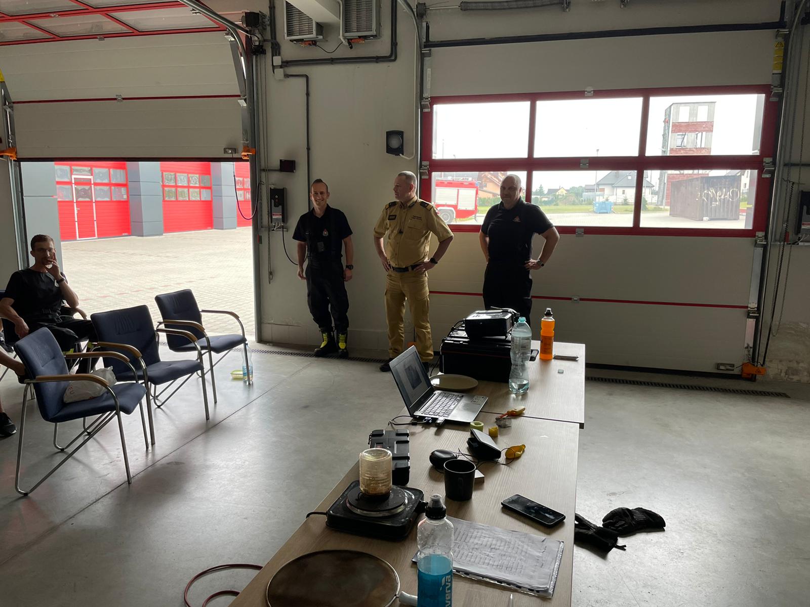 Z-ca Komendanta Głównego nadbryg. Arkadiusz Przybyła przywitał załogę Jednostki Ratowniczo-Gaśniczej w Żninie w czasie trwania szkolenia z gaszenia pożarów wewnętrznych oraz zapoznał się z warunkami pełnienia służby w Komendzie Powiatowej Państwowej Straży Pożarnej w Żninie.