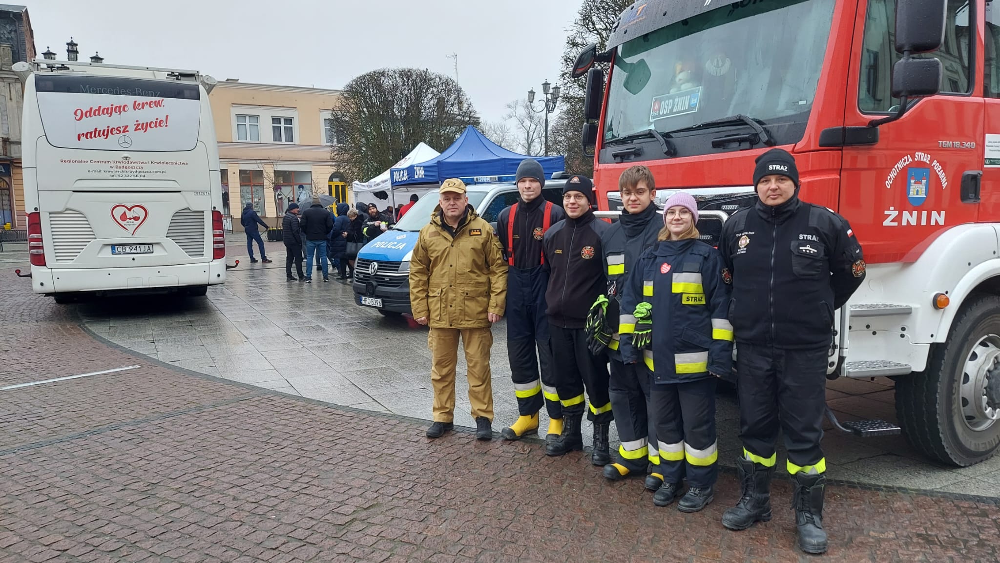 W piątek 7 kwietnia br. na żnińskim rynku odbyła się z inicjatywy Klubu Honorowych Dawców Krwi im. dr. Andrzeja Hoffmann zbiórka krwi dla policjantki pełniącej służbę w Komendzie Powiatowej Policji w Żninie. Najcenniejszym darem jakim jest krew „podzielili się” funkcjonariusze Komendy Powiatowej Państwowej Straży Pożarnej w Żninie oraz druhowie z jednostek Ochotniczych Straży Pożarnych z terenu gminy Żnin. Przygotowano również stanowisko, gdzie w formie pokazu demonstrowano pojazdy i sprzęt pożarniczy, który na co dzień użytkują strażacy.
