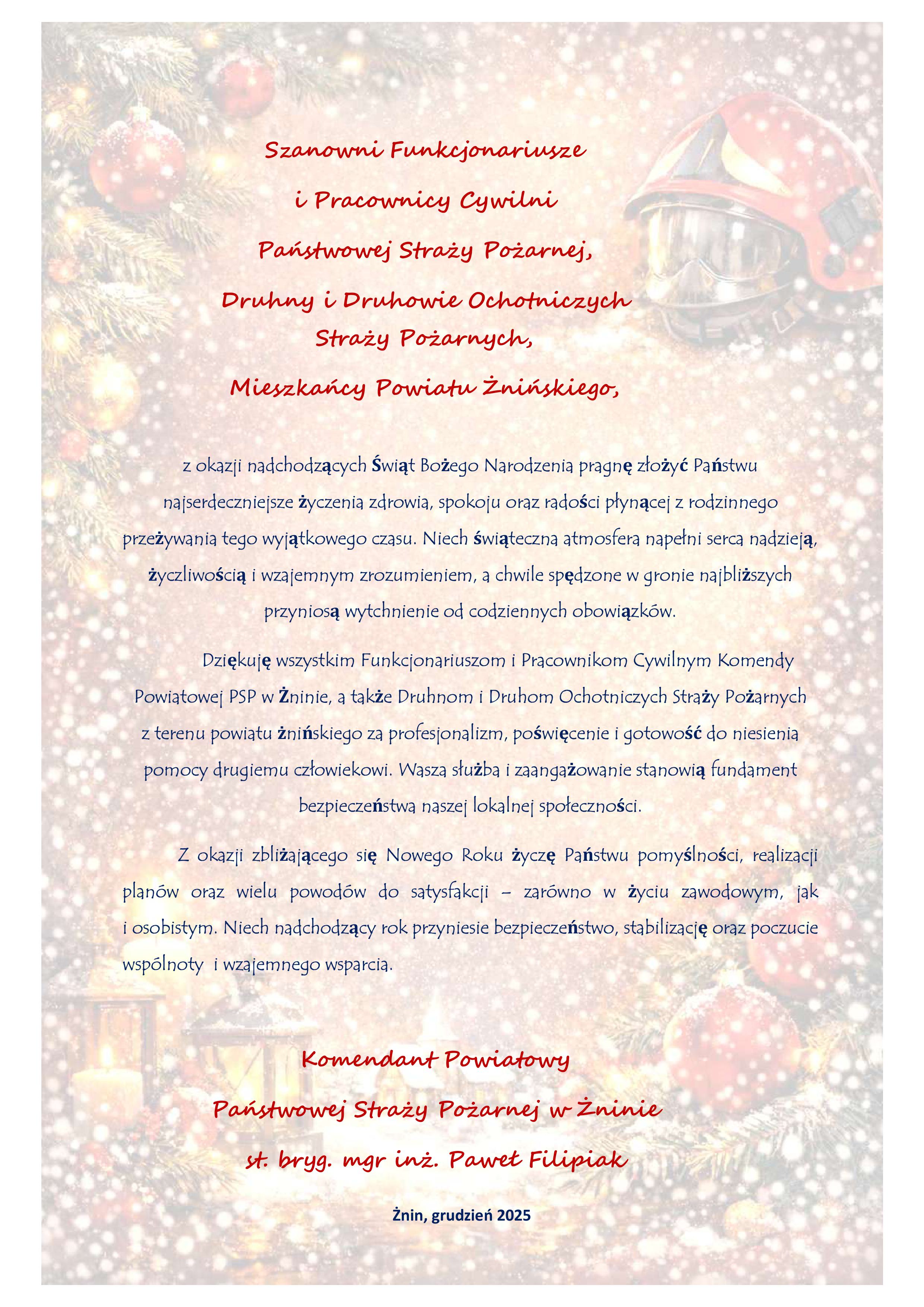 Życzenia Świąteczne Komendanta Powiatowego PSP w Żninie