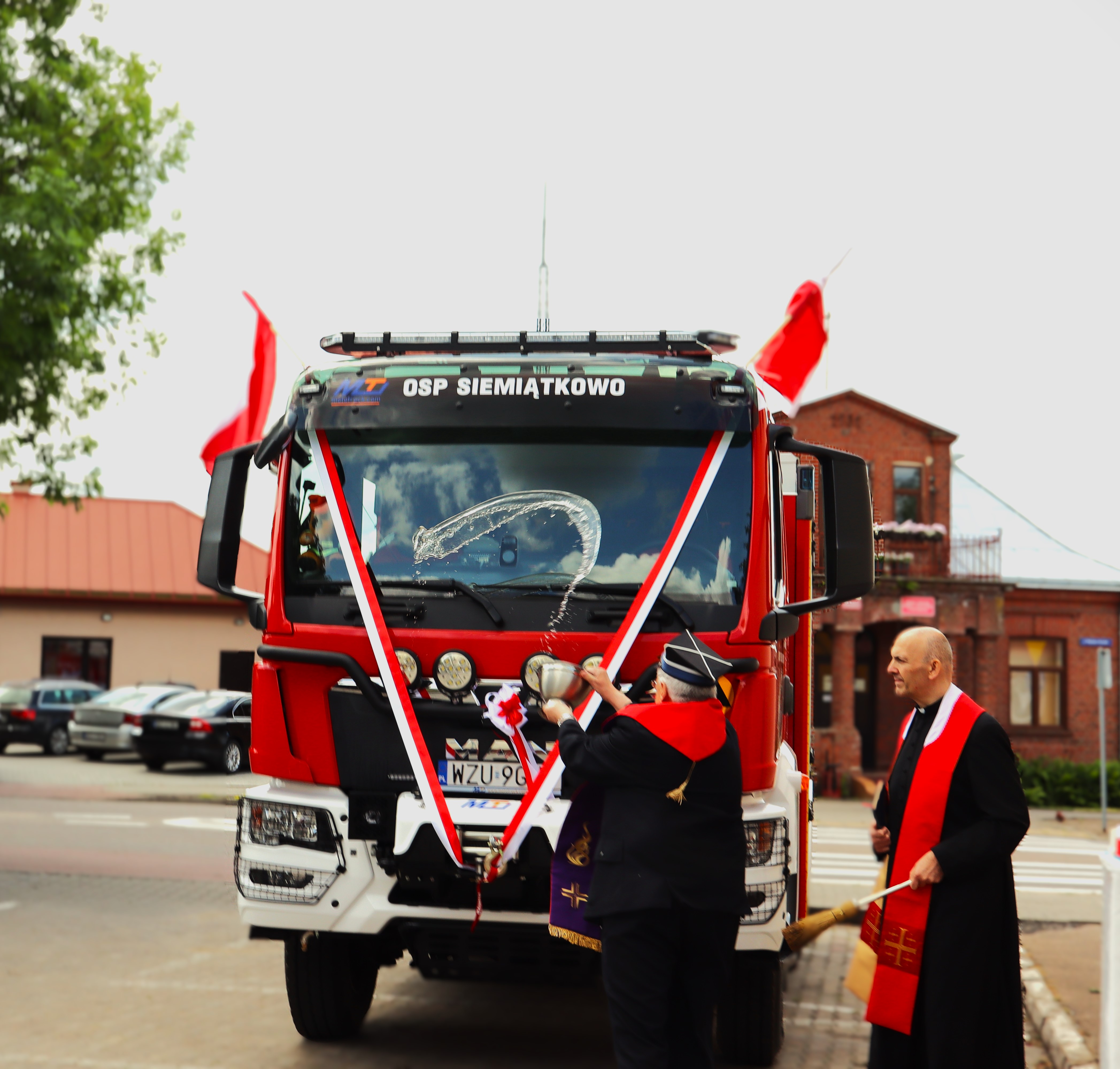 Po wręczeniu kluczyków dopełnieniem uroczystości było poświęcenie przekazanego pojazdu pożarniczego, którego dokonał kapelan diecezjalny ks. dr Andrzej Zakrzewski oraz ksiądz kanonik Artur Rogala – proboszcz parafii św. Kazimierza w Siemiątkowie.