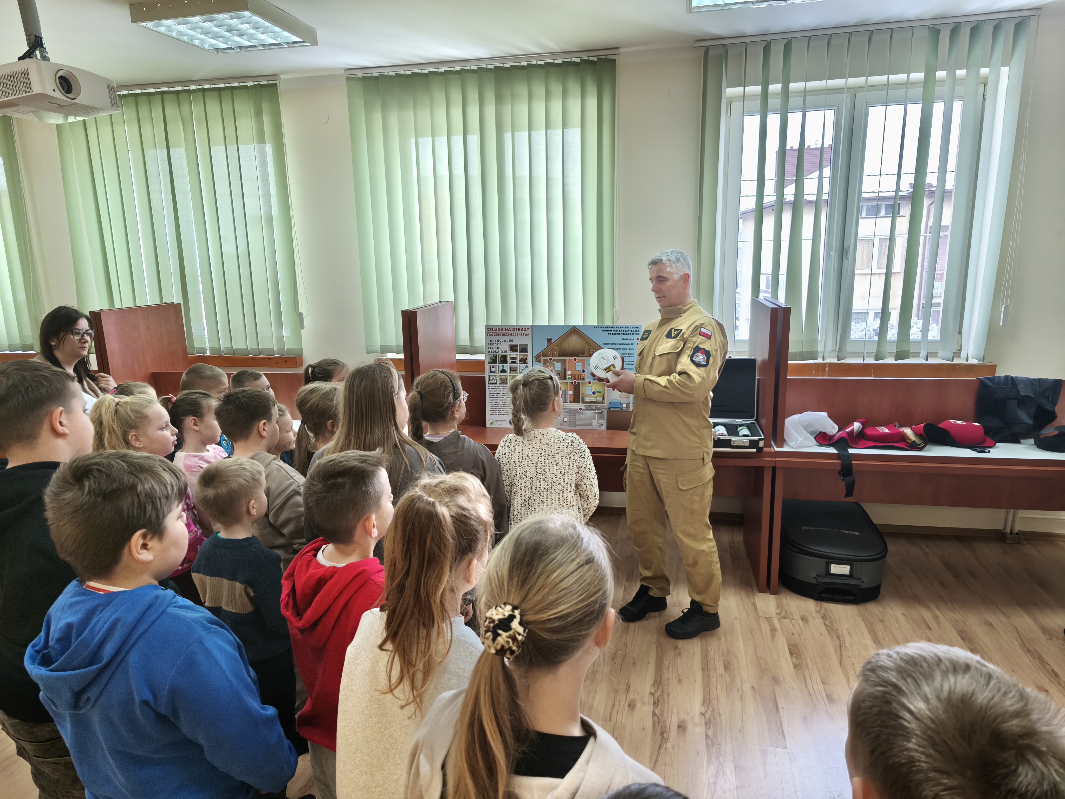8 stycznia 2025 roku przed feriami zimowymi, które w województwie mazowieckim rozpoczynają się już 19 stycznia, odbyło się spotkanie uczniów ze Szkoły Podstawowej w Przeradzu Małym z żuromińskimi strażakami. Spotkanie podzielone było na dwie grupy wiekowe, klas 1-3 i 4-8. Wizyta rozpoczęła się pogadanką na temat instalacji czujek w domach mieszkalnych. Dzięki otrzymanemu z Komendy Wojewódzkiej PSP w Warszawie modułowemu zestawowi demonstracyjnemu czujek, dzieci mogły zobaczyć różne rodzaje tych urządzeń, a także czujnik gazów wybuchowych oraz specjalny spray gaśniczy stosowany do użytku w domach. Na dołączonej do zestawu planszy z przekrojem budynku mieszkalnego dzieci mogły zobaczyć co może być potencjalnym źródłem tlenku węgla i gdzie prawidłowo zainstalować czujki.