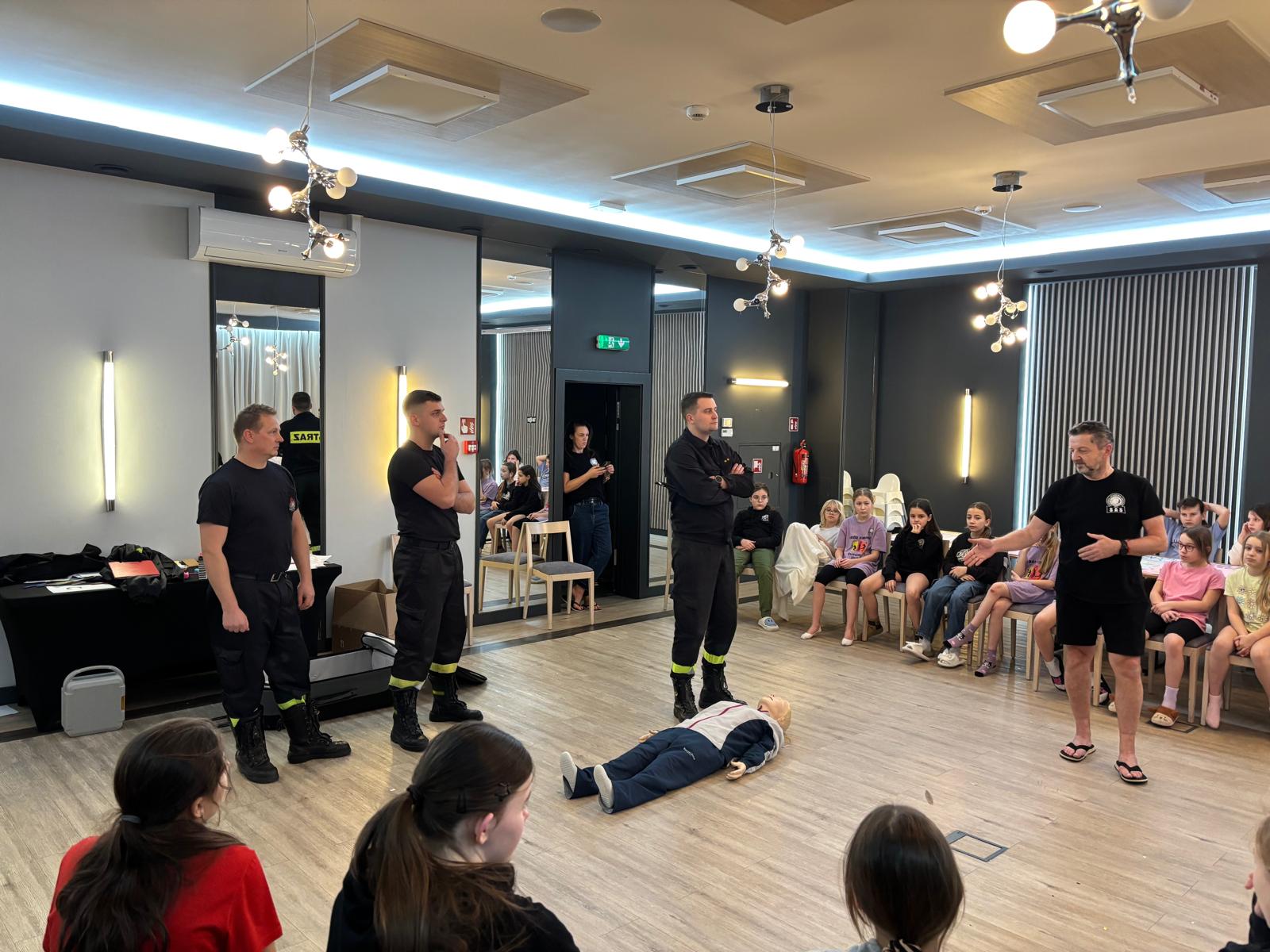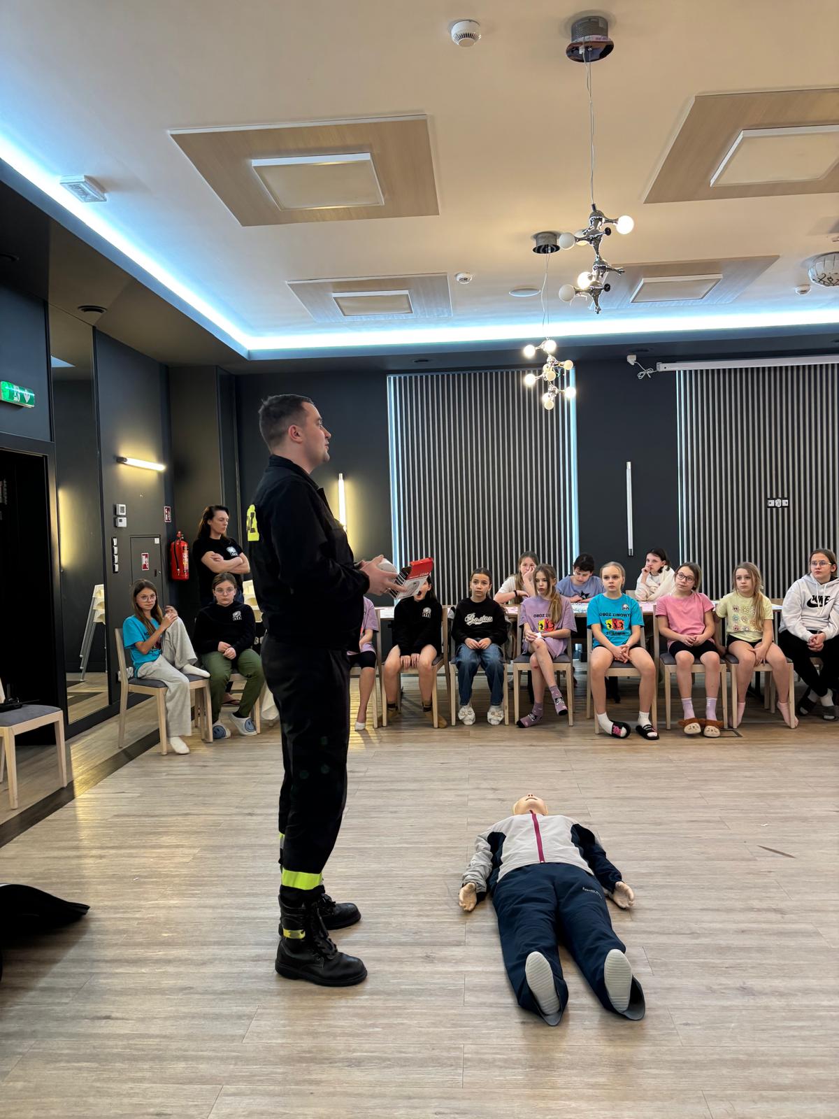 Strażacy jak zawsze przypomnieli numery alarmowe oraz omówili zasady zachowania się podczas pożaru i wypadku oraz sposoby zgłaszania zdarzeń do służb ratunkowych. Tradycyjnie w okresie zimowym zwrócono szczególną uwagę na zagrożenia związane z wypoczynkiem na świeżym powietrzu między innymi o bezpiecznym zachowaniu się na lodowisku, konsekwencjach jakie mogą ich spotkać, kiedy korzystają z lodowisk na zamarzniętych zbiornikach wodnych bez wiedzy i opieki osób dorosłych, a także o zagrożeniach podczas zjeżdżania na sankach w miejscach do tego nieprzeznaczonych. Dzieci dowiedziały się o zagrożeniach występujących przy niskich temperaturach i wychłodzeniu organizmu, a także zaprezentowano im zasady udzielania pierwszej pomocy osobom w stanie zagrożenia zdrowia lub życia. Była również możliwość spróbowania swoich sił w udzielaniu pierwszej pomocy na przygotowanym fantomie. Strażacy przypomnieli również jak ważne jest noszenie odblasków w warunkach ograniczonej widoczności i poza terenem zabudowanym, szczególnie w okresie zimowym, kiedy wcześnie zapada zmrok.