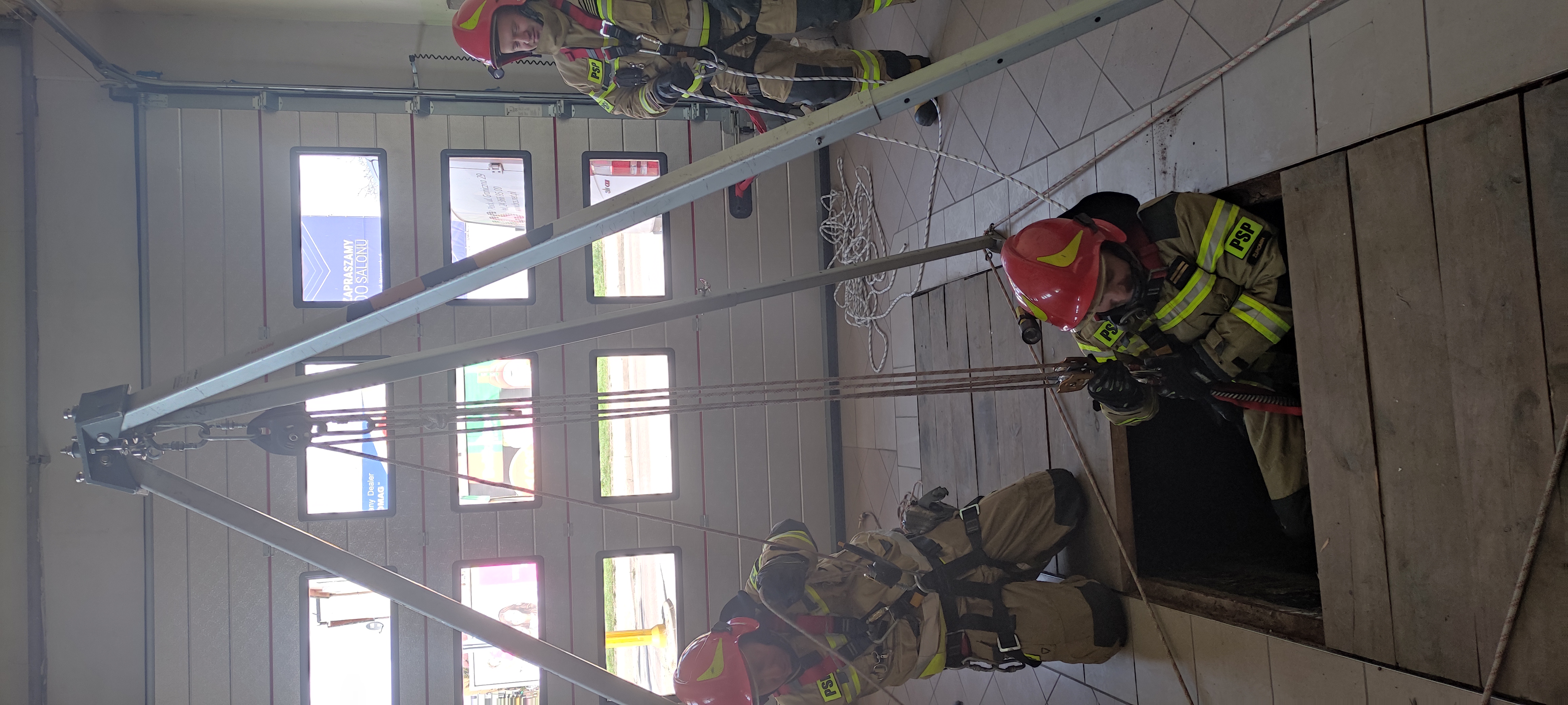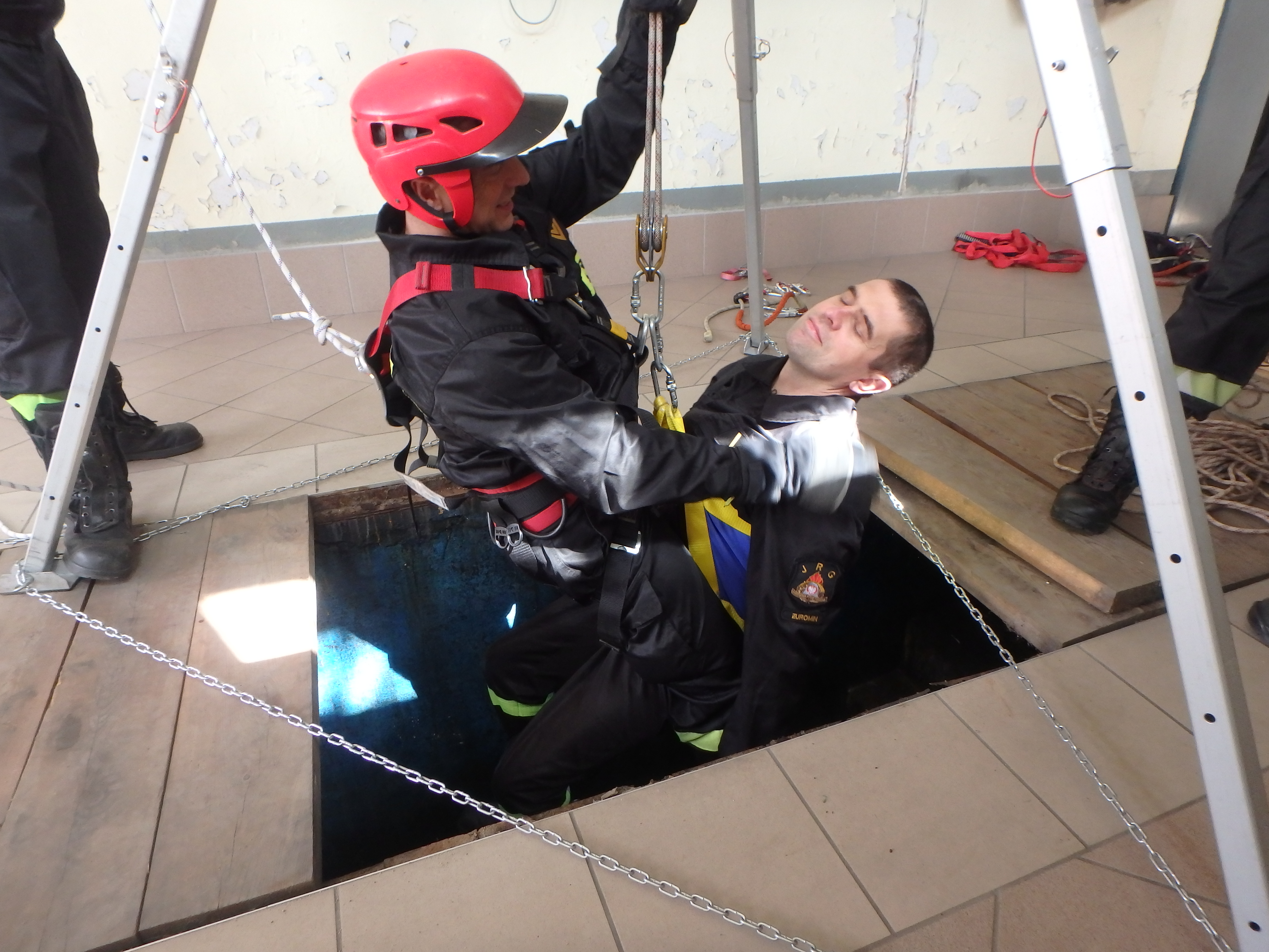 Strażacy Jednostki Ratowniczo-Gaśniczej Komendy Powiatowej PSP w Żurominie w ramach doskonalenia zawodowego w miesiącu kwietniu przeprowadzili praktyczne ćwiczenie z wykorzystaniem trójnogu ratowniczego. Ćwiczenie polegało na podjęciu osoby poszkodowanej, która znajdowała się poniżej poziomu gruntu. Strażacy doskonalili obsługę i wykorzystanie trójnogu w czasie działań jednocześnie stosując elementy ratownictwa wysokościowego. Ćwiczenie przeprowadzono na każdej zmianie służbowej systemu czterozmianowego.