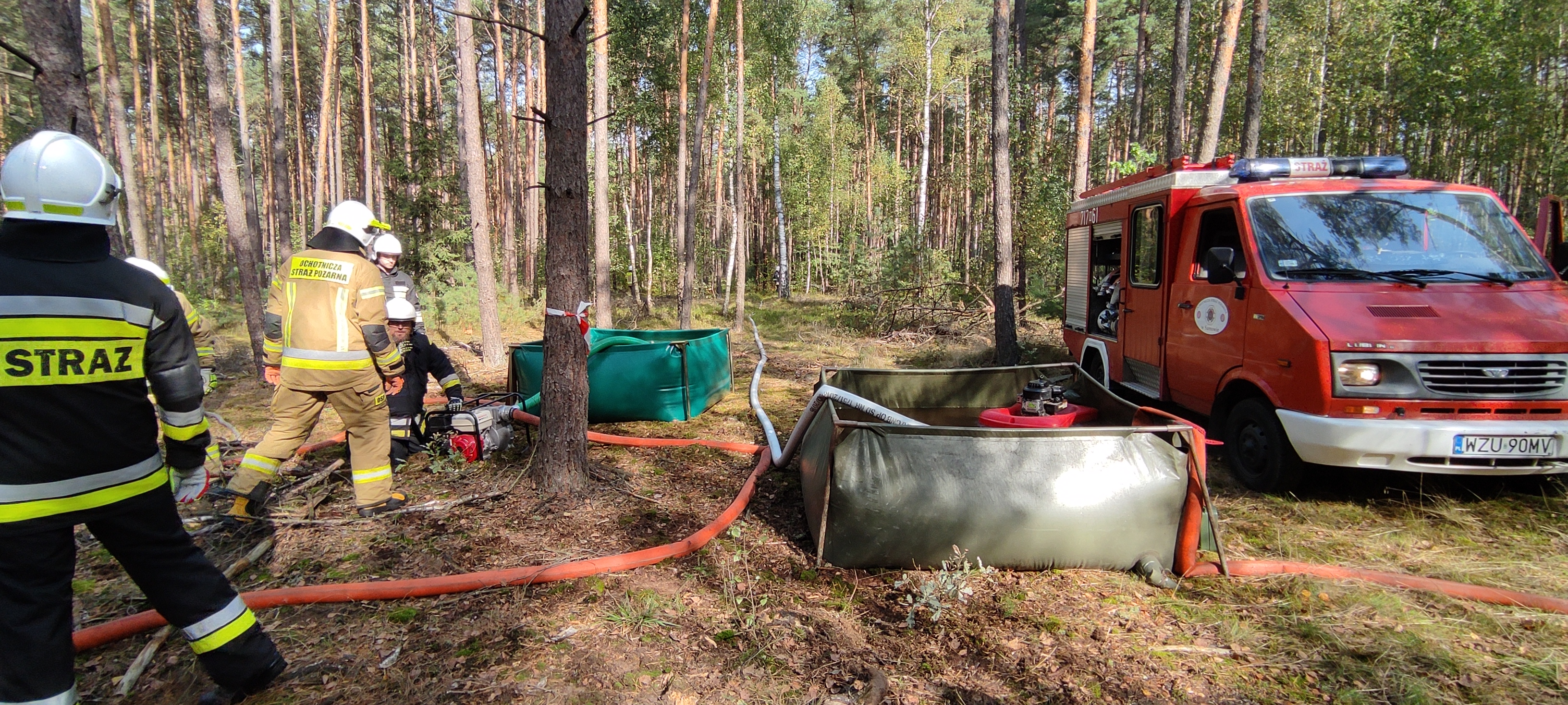 Założeniem do ćwiczeń był pożar kompleksu leśnego w oddziale 949. Po opanowaniu pożaru, jednostki przeszły do fazy dogaszania pogorzeliska z wykorzystaniem zbiorników przenośnych na wodę oraz motopomp pływających i przenośnych. Jednostki będące na miejscu miały za zadanie zorganizowanie punktu czerpania wody na rzece Wkra w m. Pątki, następnie z wykorzystaniem posiadanego sprzętu w tym m.in. przyczepki wężowej wyposażonej w 1000 metrów węży, a także motopomp, dostarczyć wodę do zbiornika przenośnego o pojemności 13000 litrów zlokalizowanego około 400 metrów od punktu czerpania, gdzie następnie tankowane były samochody pożarnicze, które dostarczały wodę na pogorzelisko oddalone od punktu czerpania wody około 1500 metrów.
