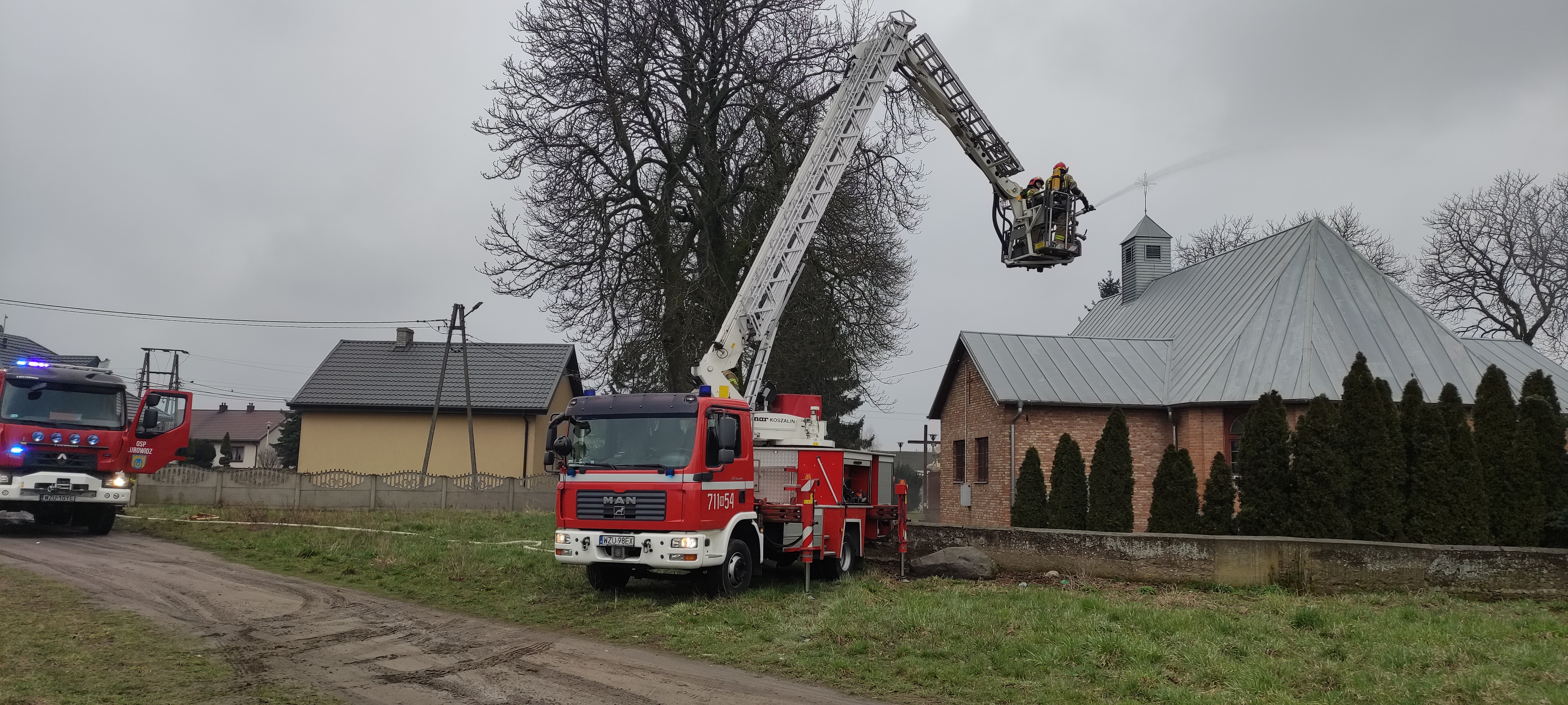 Ćwiczenia zgrywające JRG Żuromin i jednostek OSP z terenu powiatu w Kościele Rzymskokatolickim w Chamsku.