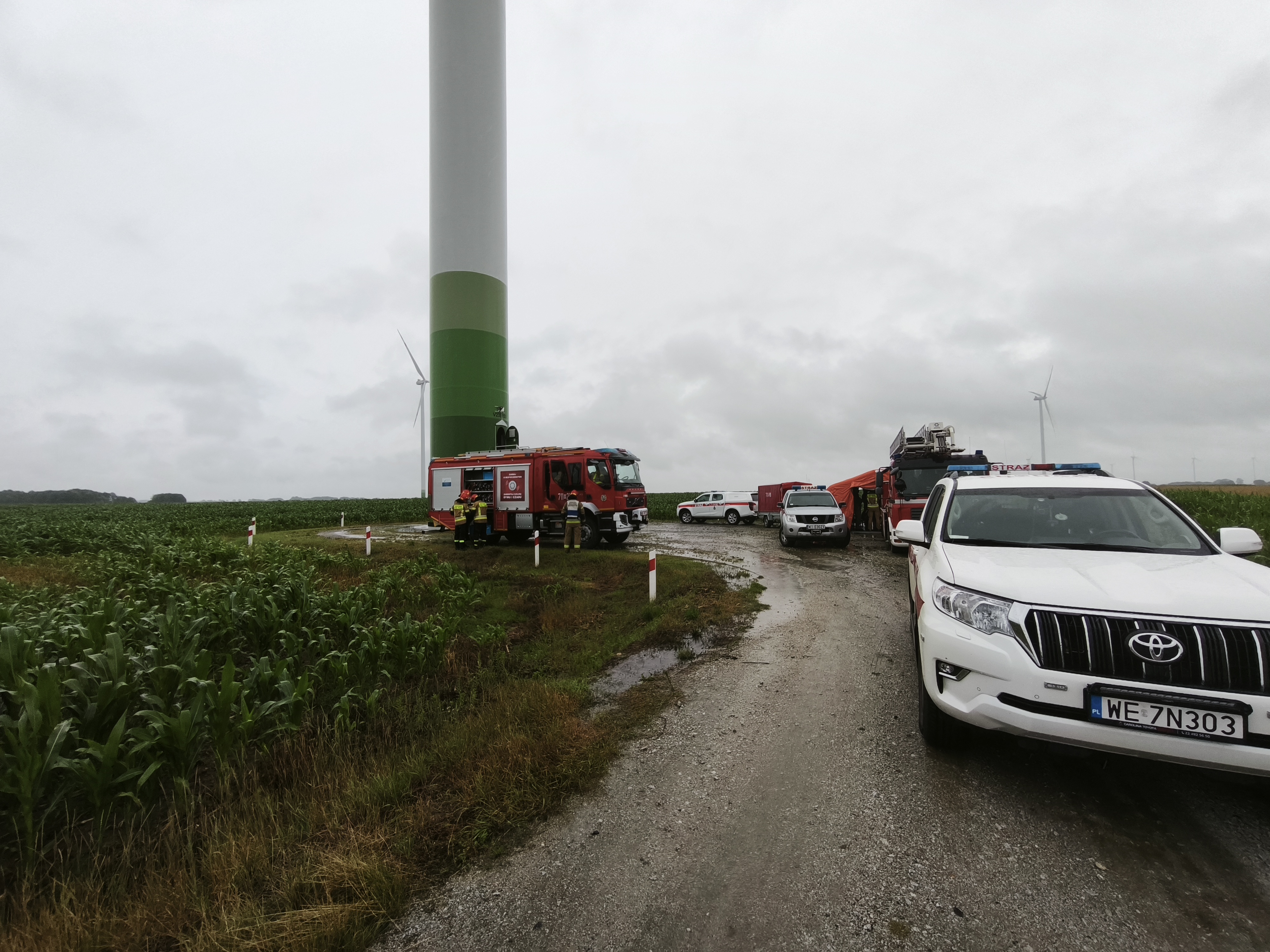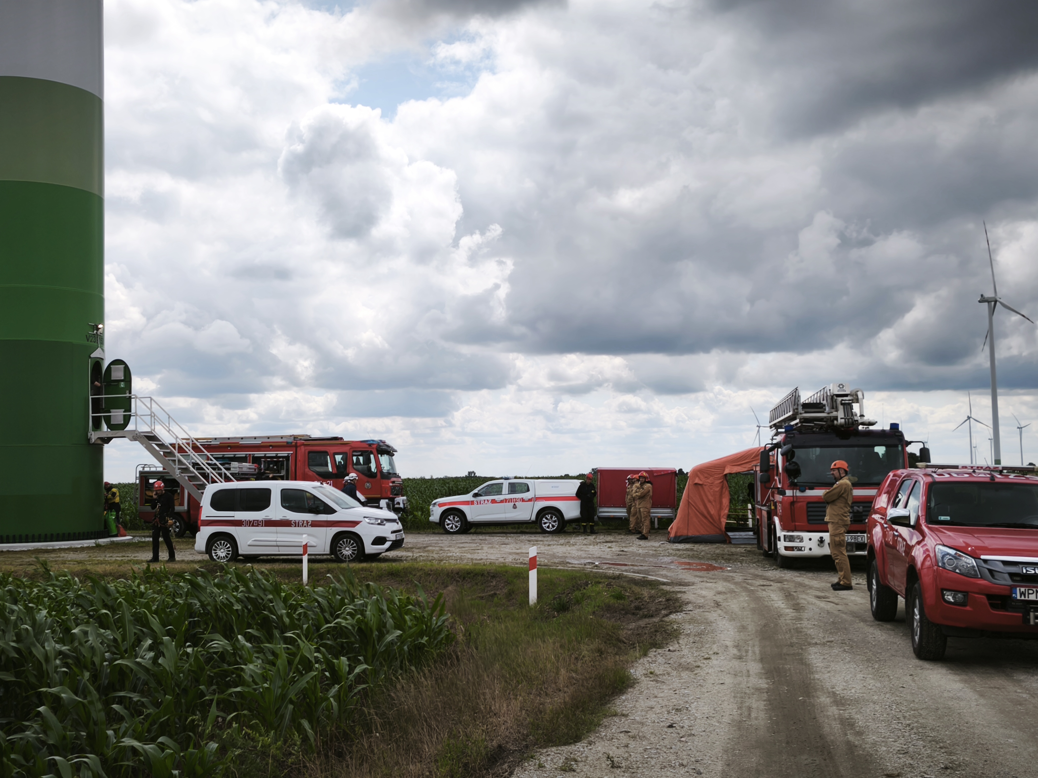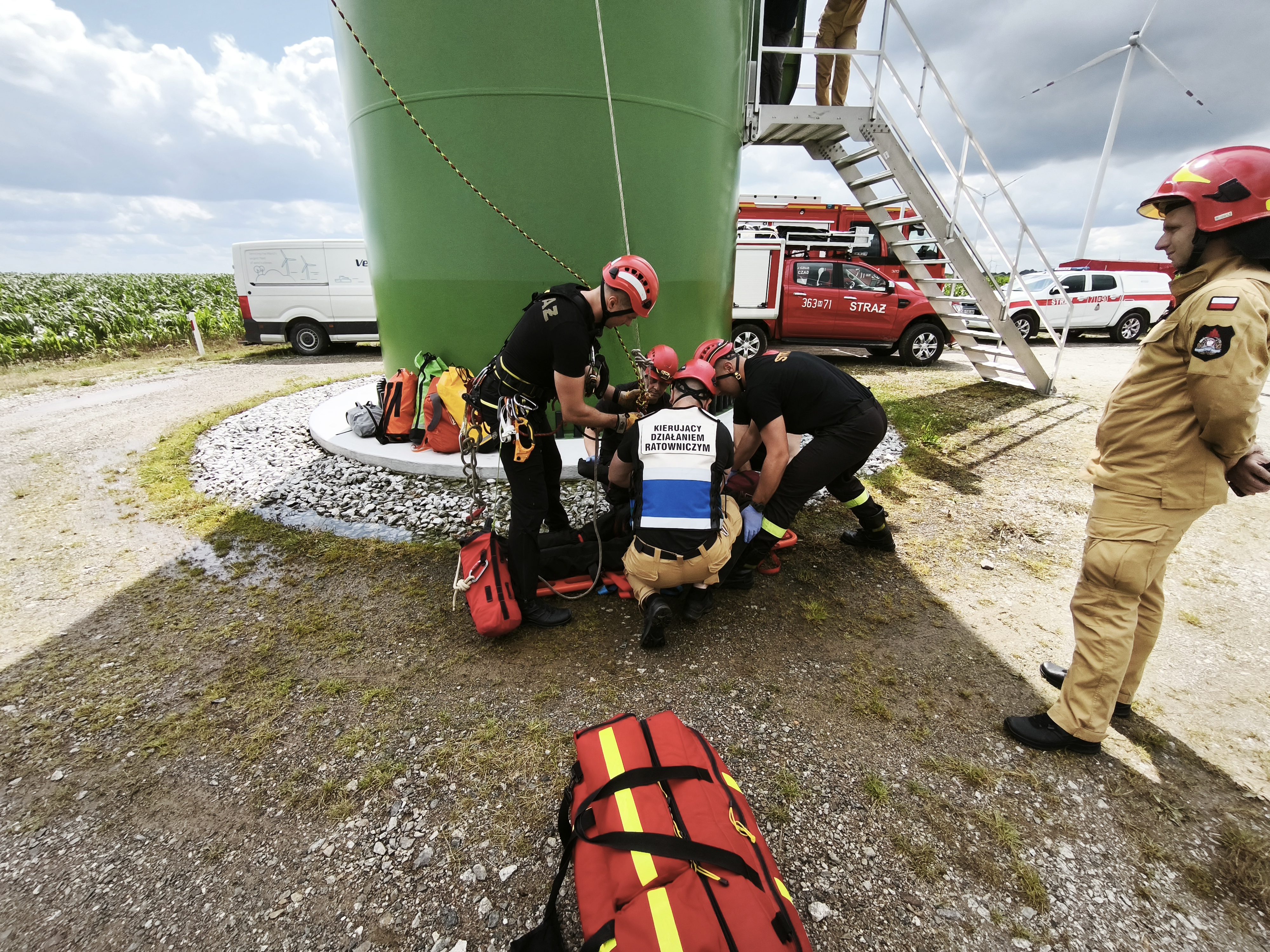 Ćwiczenia zgrywające JRG Żuromin, SGRW Warszawa 7 oraz Płock 7 na obiekcie turbiny wiatrowej Polenergii w gm. Żuromin