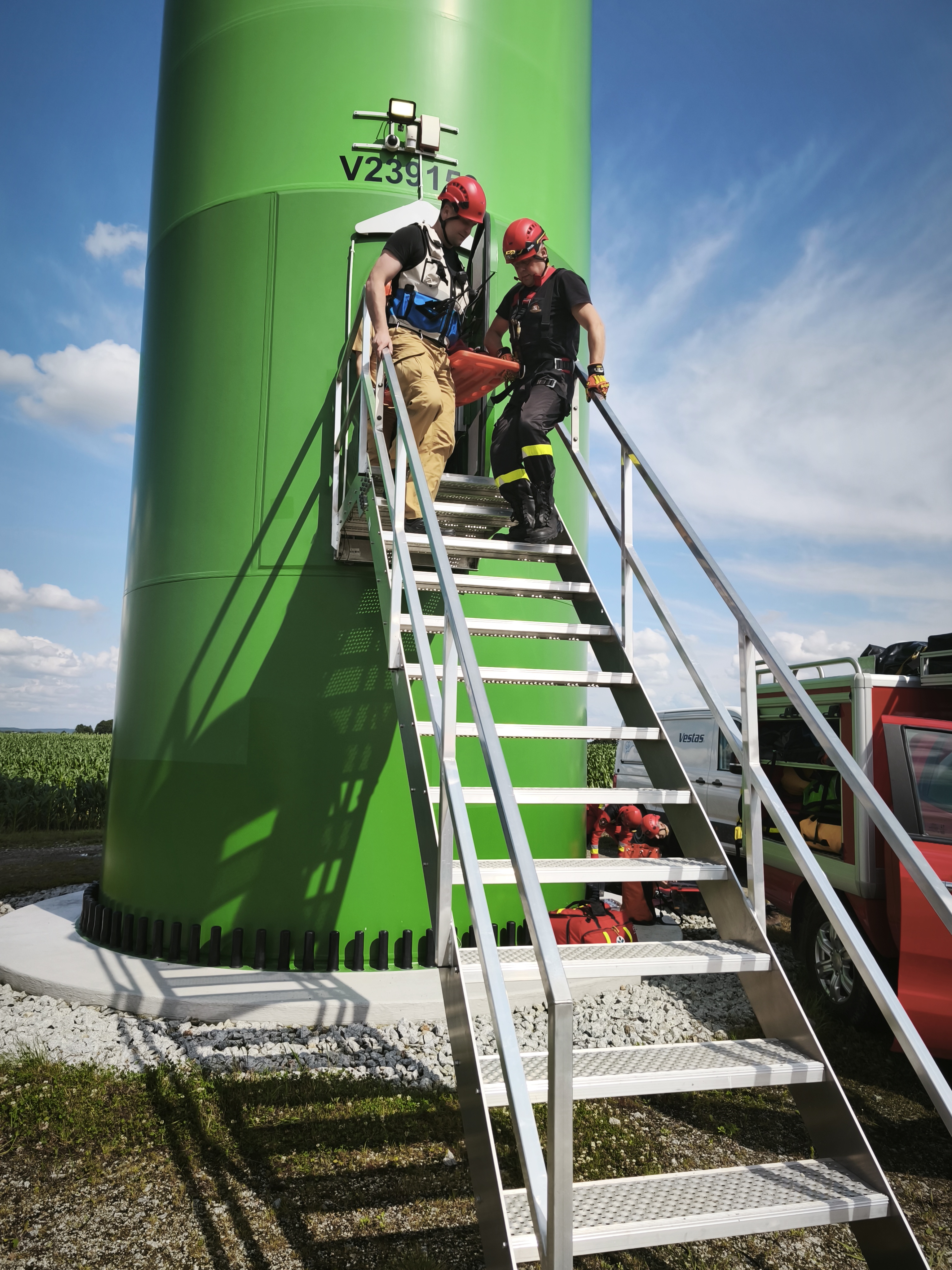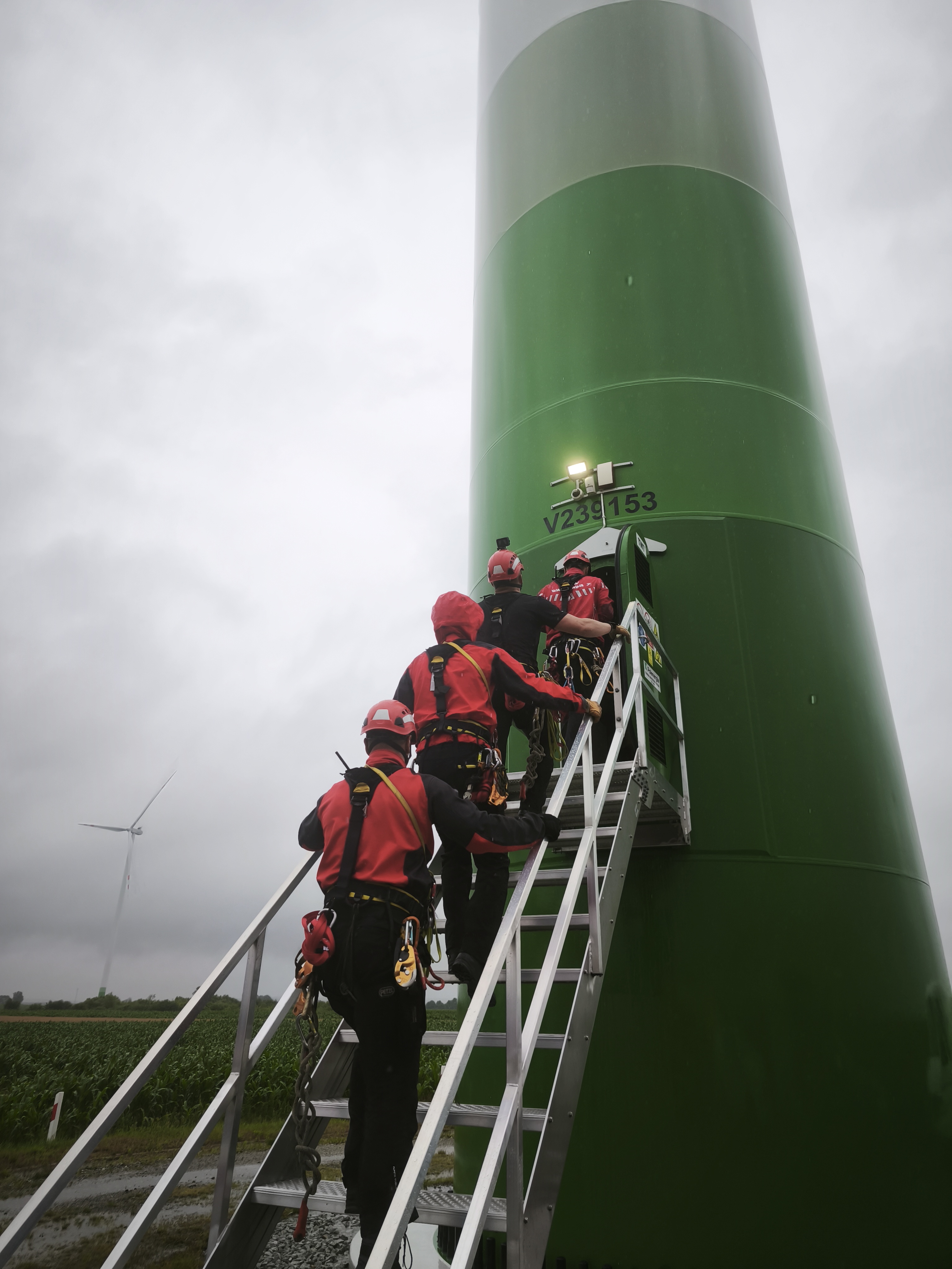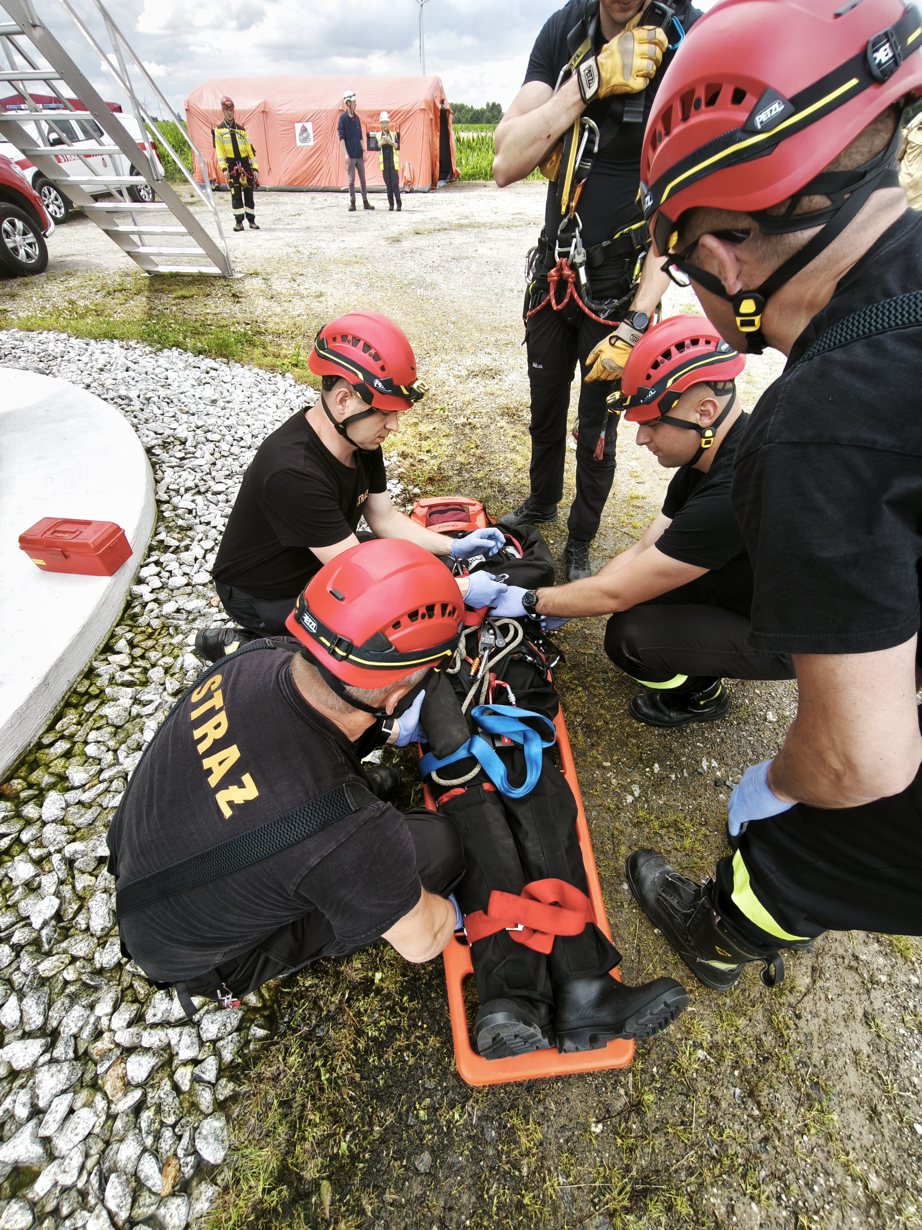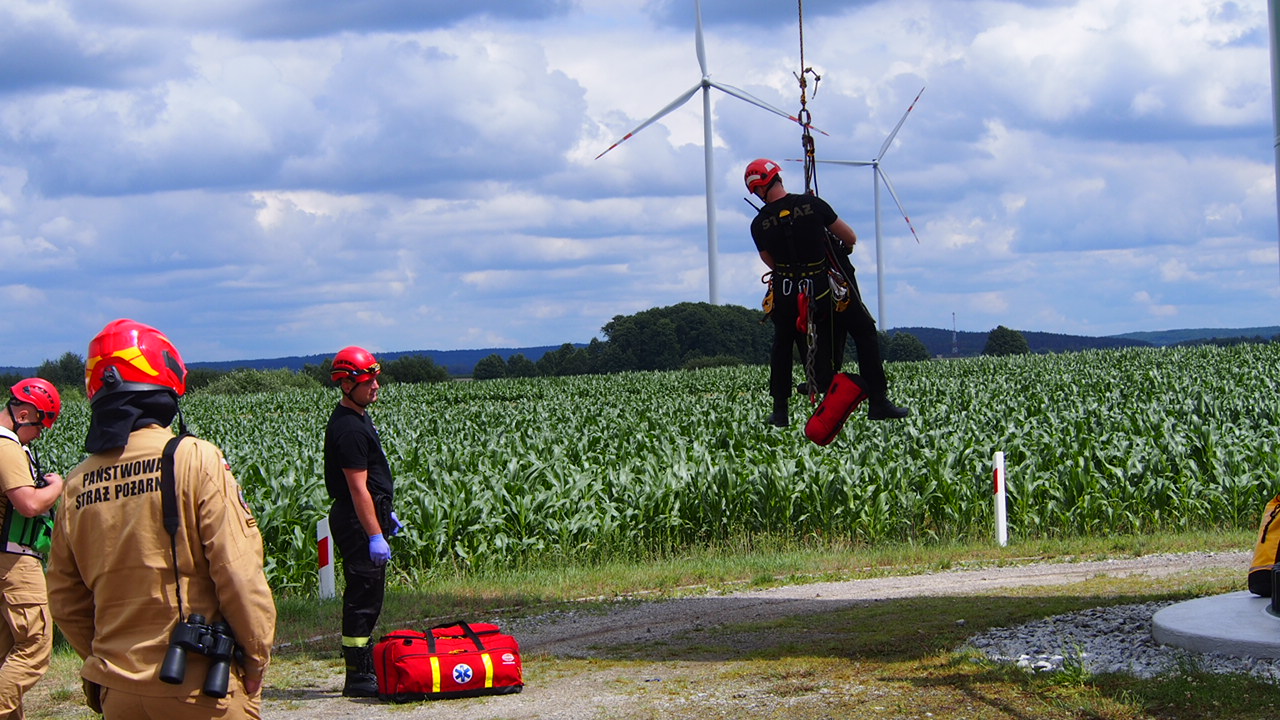 W dniach 15, 16 i 17 lipca 2025 roku, w ramach realizacji planu doskonalenia zawodowego odbyły się ćwiczenia ratownicze w Kliczewie Małym (gm. Żuromin) na turbinie wiatrowej należącej do Polenergii.