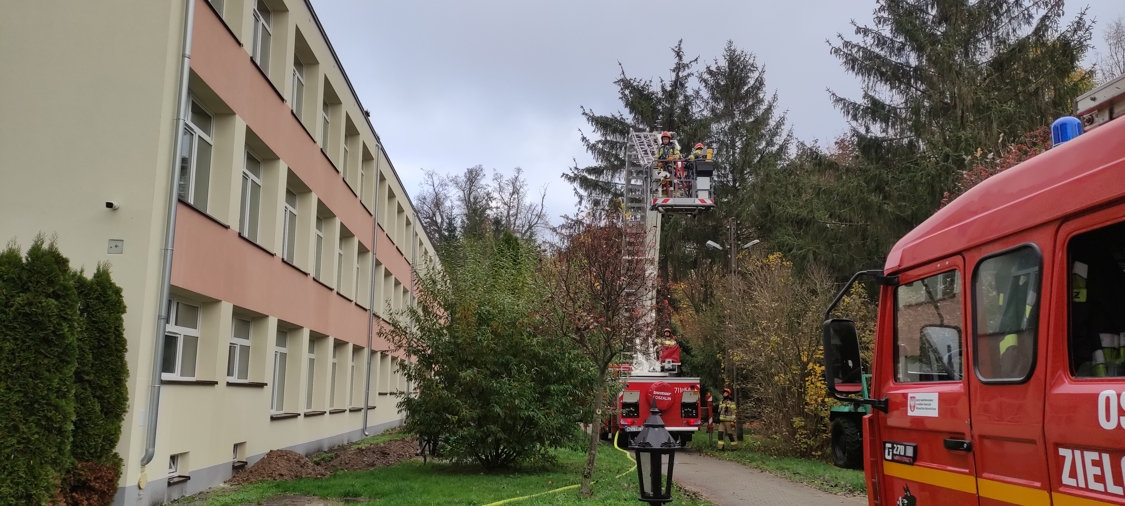 W dniu 26 października 2022 roku na terenie Zespołu Szkół w Zielonej, odbyły się ćwiczenia ratowniczo – gaśnicze wraz z elementami próbnej ewakuacji pracowników i uczniów, którą przeprowadziła Dyrekcja szkoły. Podczas ćwiczeń strażacy doskonalili udzielanie kwalifikowanej pierwszej pomocy oraz prowadzenie działań ratowniczo-gaśniczych przy pożarach wewnętrznych w obiektach oświaty i nauki, sprawdzono również zabezpieczenie przeciwpożarowe obiektu, w tym sprawność sieci hydrantowej i dojazd do obiektów szkoły.