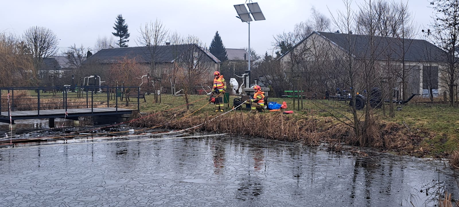 W dniach 24, 26 i 28 lutego 2025 r. strażacy z Jednostki Ratowniczo-Gaśniczej Państwowej Straży Pożarnej w Żurominie przeprowadzili ćwiczenia z wykorzystaniem sań wodno-lodowych na sztucznym zbiorniku wodnym w msc. Wiadrowo gm. Żuromin. Przećwiczono możliwości wykorzystania sań wodno – lodowych do podejmowania z przerębla osób pod którymi załamał się lód, wykorzystania w akcjach ratowniczych rzutek i kół ratunkowych oraz pozostałego sprzętu przewidzianego do działań w tym zakresie. Ćwiczono również udzielanie kwalifikowanej pierwszej pomocy osobom, które znajdowały się w wodzie i uległy hipotermii. Ćwiczenia, które odbyły się w ramach doskonalenia zawodowego dla poszczególnych zmian służbowych JRG Żuromin były również okazją do sprawdzenia dróg dojazdowych do zbiornika oraz terenu wokół stawu.