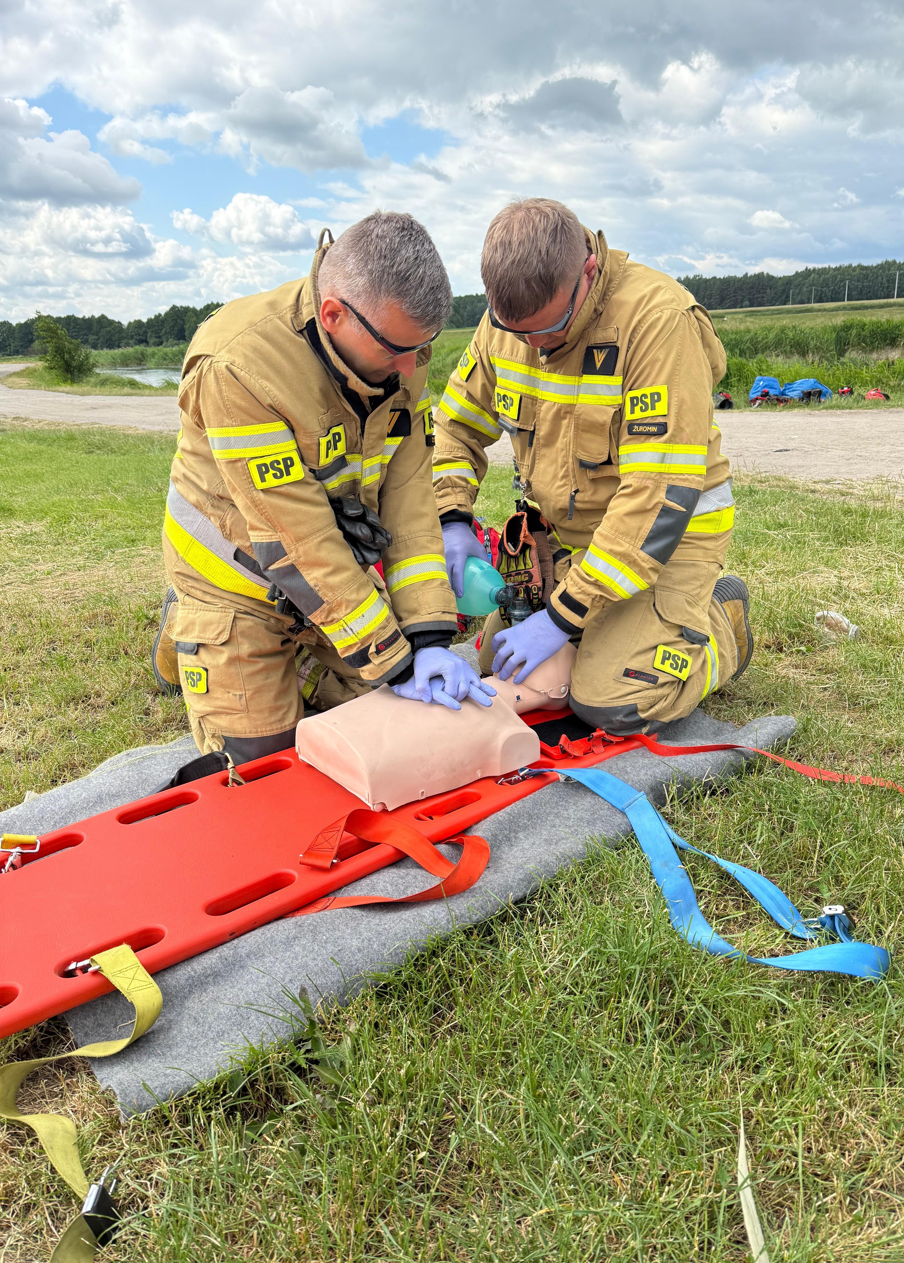 W dniach 23, 25 i 30 czerwca 2025 r. po raz kolejny funkcjonariusze z Jednostki Ratowniczo-Gaśniczej Państwowej Straży Pożarnej w Żurominie, przygotowując się do sezonu letniego w tym prewencji społecznej „ Bezpieczne wakacje” i bezpiecznego wypoczynku osób nad wodą, przeprowadzili ćwiczenia z wykorzystaniem łodzi motorowej w m. Poniatowo na rzece Wkra. Podczas ćwiczeń doskonalono umiejętności pływania pontonem ratowniczym z silnikiem zaburtowym. Ratownicy ćwiczyli również sposoby podejmowania poszkodowanego z wody na pokład jednostki pływającej oraz z wykorzystaniem innych rodzajów sprzętu do działań z zakresu ratownictwa wodnego. Ćwiczono również procedury udzielania kwalifikowanej pierwszej pomocy w stosunku do osób, które topiły się lub przebywały pod wodą.