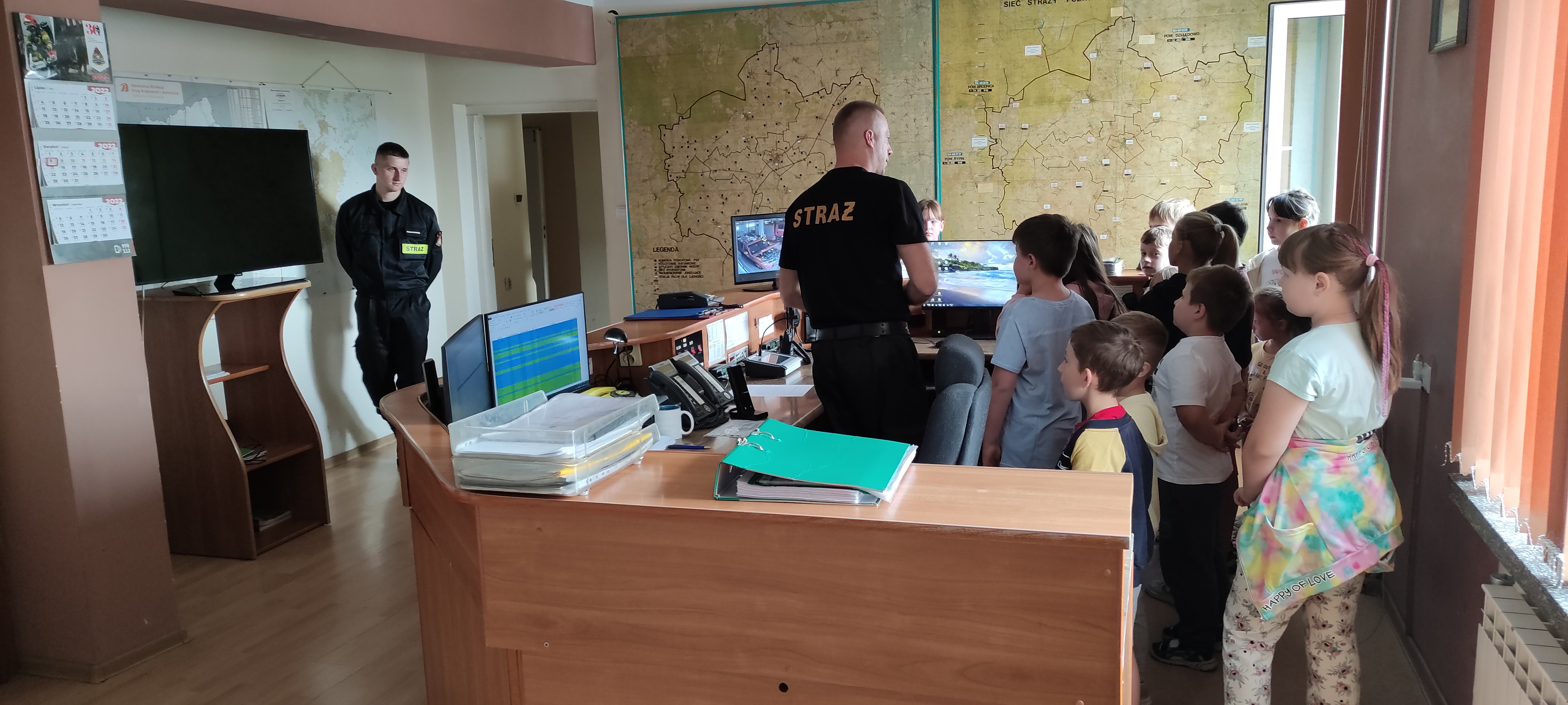 Spotkanie rozpoczęło się od zwiedzania Stanowiska Kierowania Komendanta Powiatowego, gdzie dyżurny omówił sposoby prawidłowego zgłaszania zdarzeń na numery alarmowe służb ratowniczych oraz zapoznał dzieci z pracą na tym stanowisku. Następnie strażacy oprowadzili dzieci po Jednostce Ratowniczo – Gaśniczej, opowiadając o zasadach zachowania się podczas pożaru, bezpiecznym wypoczynku podczas wakacji oraz opowiedzieli o pracy strażaka. Kolejnym etapem zwiedzania był pokaz sprzętu ratowniczo – gaśniczego znajdującego się na wyposażeniu pojazdów pożarniczych oraz zajęcia teoretyczne i praktyczne z udzielania pierwszej pomocy, gdzie każdy mógł spróbować swoich sił na fantomie. Na koniec cała grupa wraz ze strażakami zrobiła sobie pamiątkowe zdjęcie przed samochodem ratowniczo – gaśniczym.