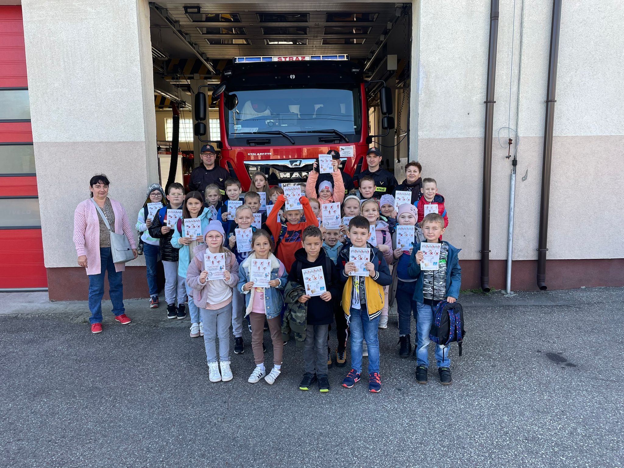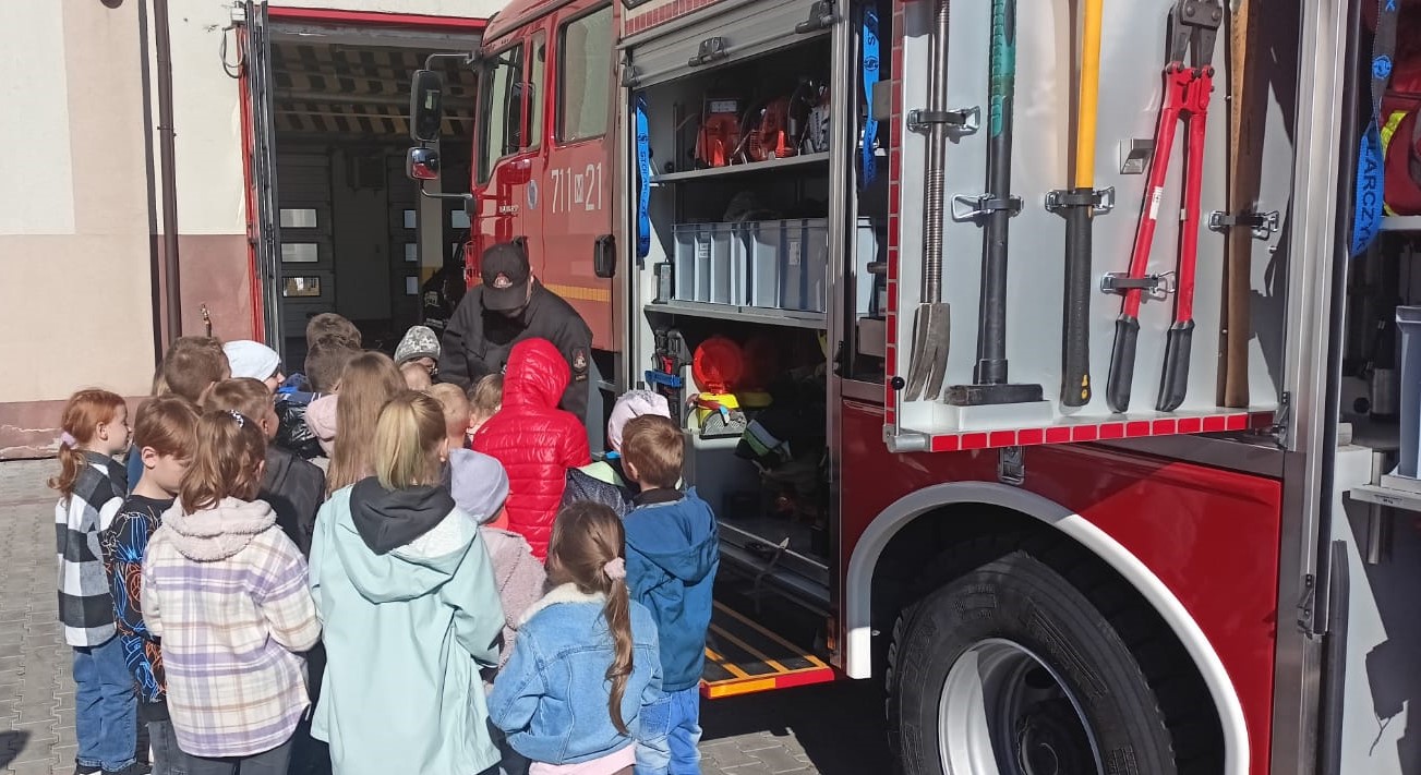 Spotkanie rozpoczęło się od zwiedzania Stanowiska Kierowania Komendanta Powiatowego, gdzie dyżurny omówił sposoby prawidłowego zgłaszania zdarzeń na numery alarmowe służb ratowniczych oraz zapoznał dzieci z pracą na tym stanowisku. Następnie strażacy oprowadzili dzieci po Jednostce Ratowniczo – Gaśniczej, opowiadając o zasadach zachowania się podczas pożaru oraz pracy strażaka, a także przypomnieli zasady bezpieczeństwa w ramach kampanii społecznej „Czujka na straży Twojego bezpieczeństwa”. Kolejnym etapem zwiedzania był pokaz sprzętu ratowniczo – gaśniczego znajdującego się na wyposażeniu pojazdów pożarniczych. Na koniec cała grupa wraz ze strażakami zrobiła sobie pamiątkowe zdjęcie przed samochodem ratowniczo – gaśniczym.