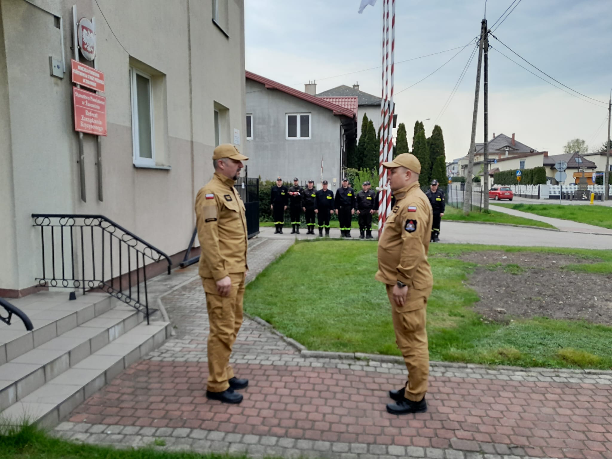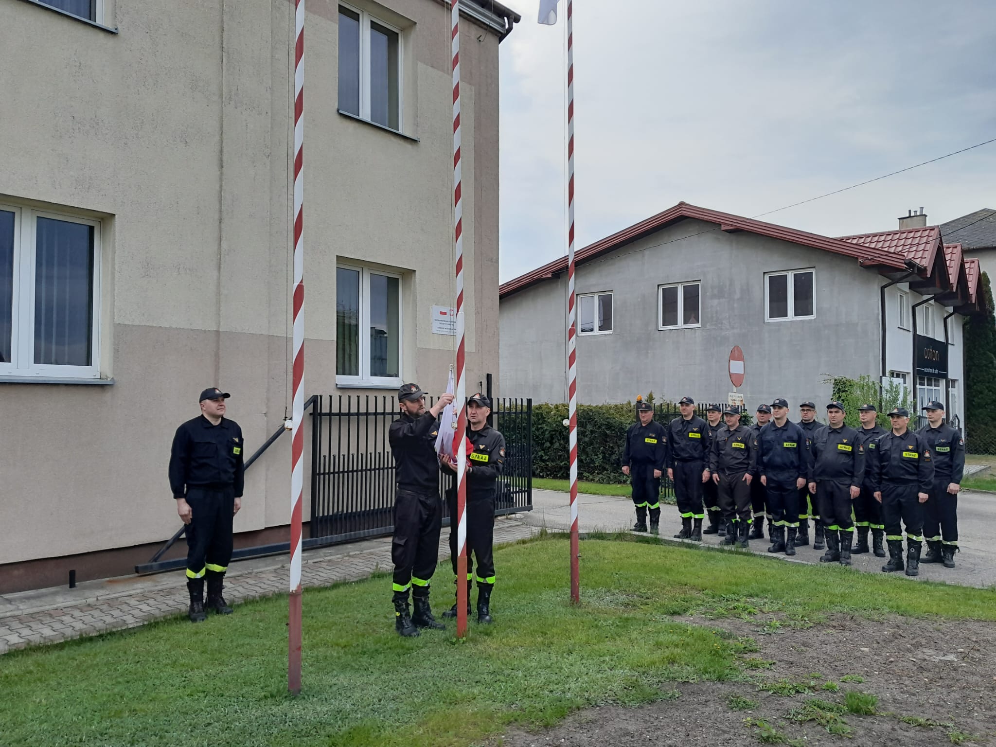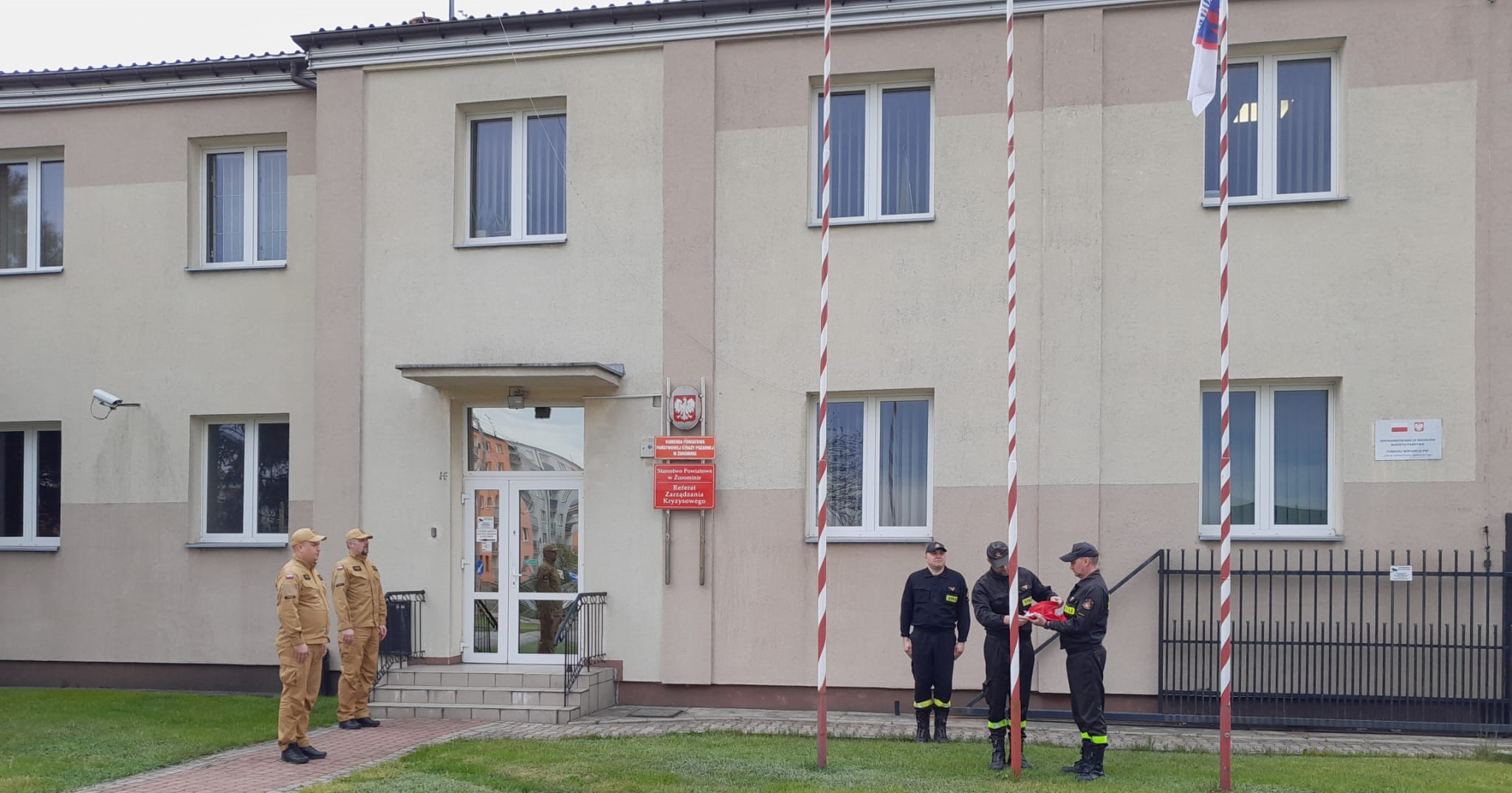 W dniu 2 maja 2023 roku, punktualnie o godzinie 8:00 w związku z przypadającym w tym dniu Dniem Flagi Rzeczypospolitej Polskiej, funkcjonariusze Komendy Powiatowej Państwowej Straży Pożarnej w Żurominie uczestniczyli w uroczystej zmianie służby, podczas której podniesiono flagę państwową na maszt przed siedzibą komendy.