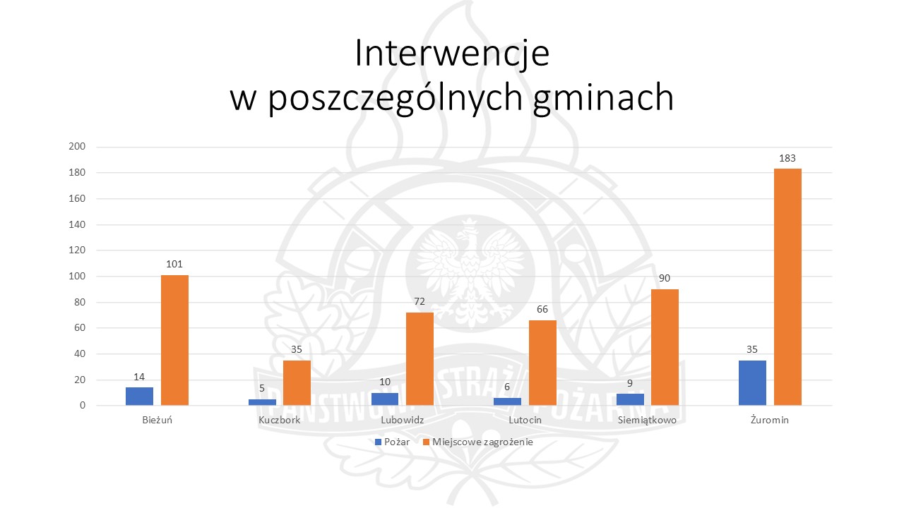 Interwencje jednostek ochrony przeciwpożarowej na terenie powiatu żuromińskiego w 2021 roku w liczbach