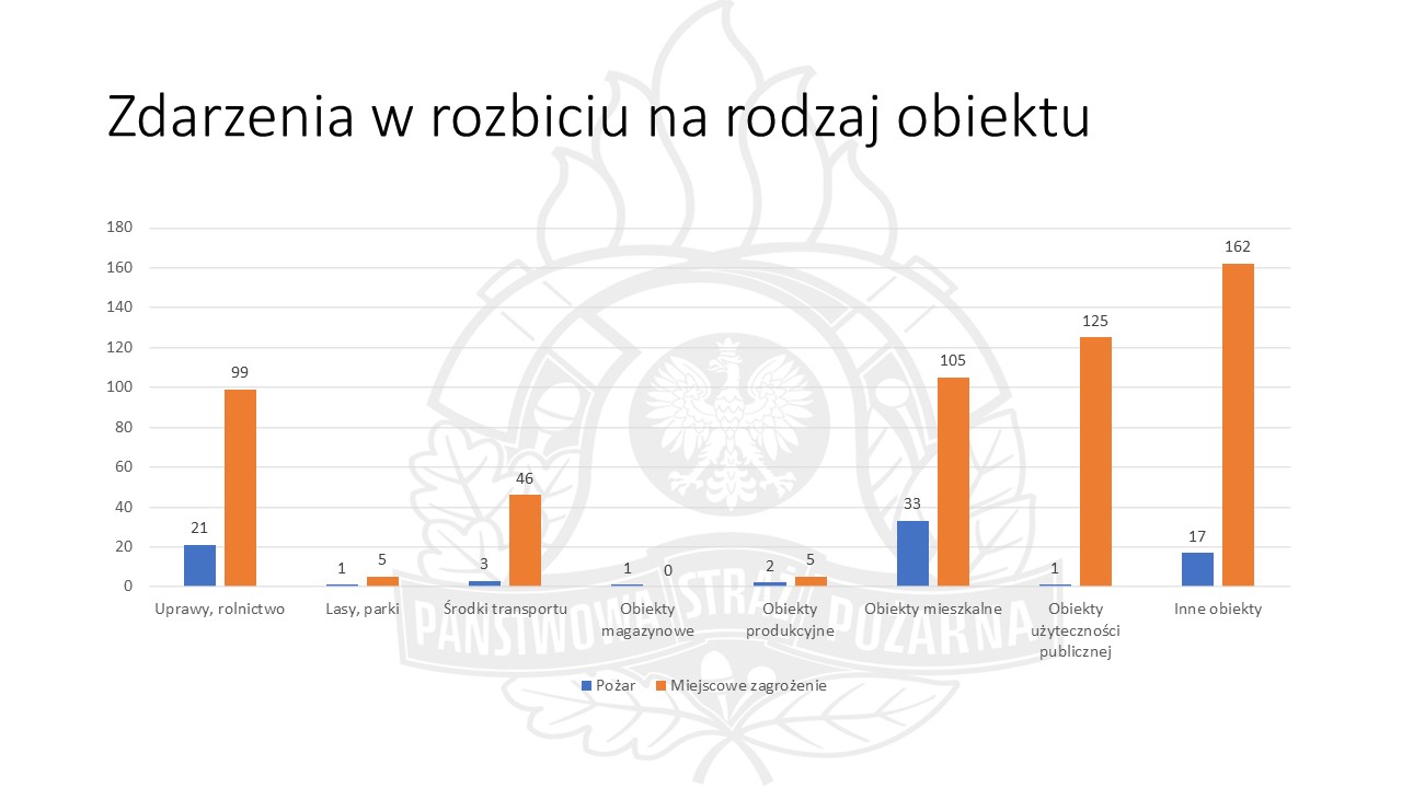 Najwięcej pożarów miało miejsce w obiektach mieszkalnych - 33;