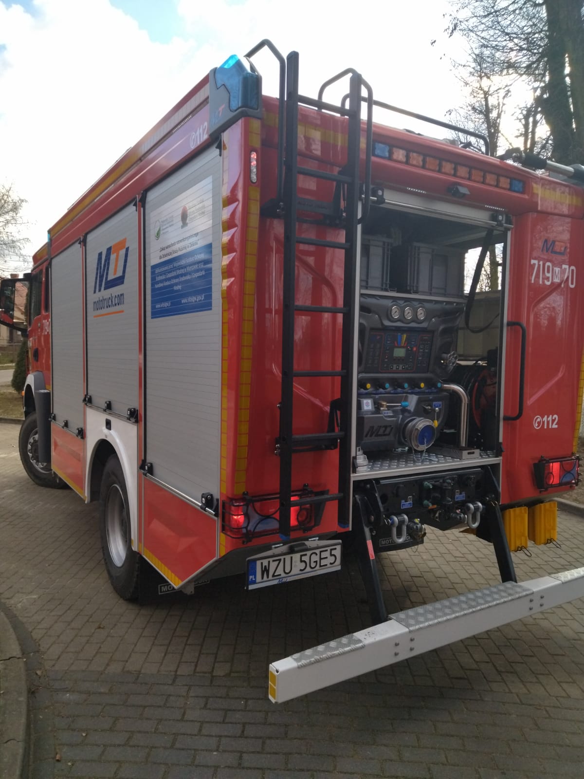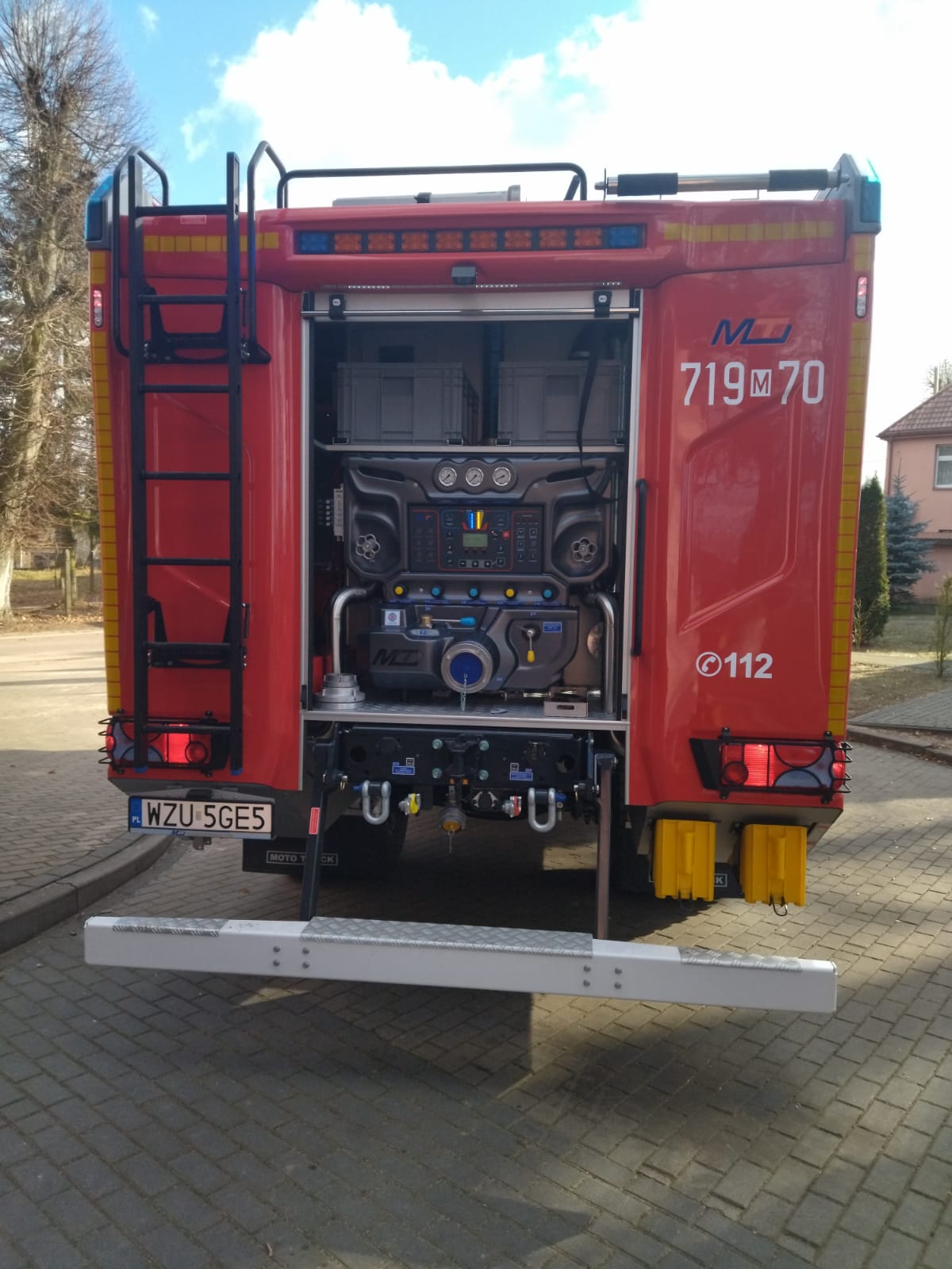 - armatura i sprzęt pożarniczy do zwalczania pożarów tj. motopompa pływającą, motopompa szlamowa, pożarnicze węże tłoczne i ssawne, rozdzielacz, prądownice wodne, mostki przejazdowe oraz linię szybkiego natarcia o długości 60 metrów i system zraszaczy przednich i bocznych do ograniczenia stref skażeń lub do celów gaśniczych np. podczas pożarów traw lub ściernisk.