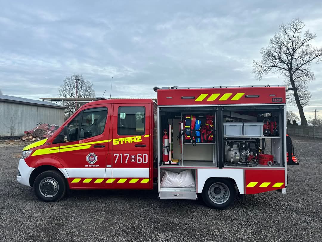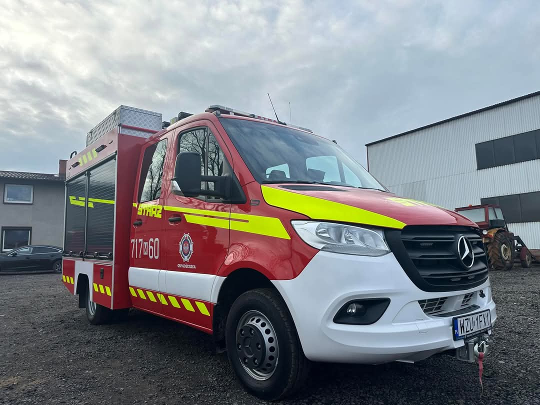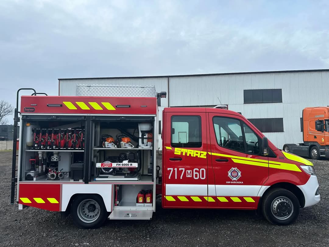 NOWY POJAZD RATOWNICZO – GAŚNICZY GLBM 1/0,8 MERCEDES W OSP GOŚCISZKA