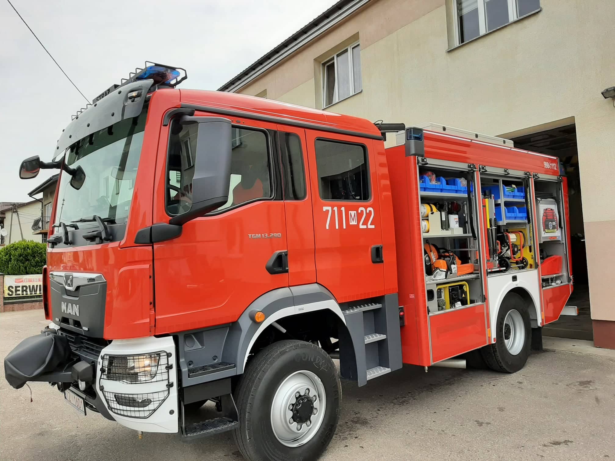- Narzędzia ratownicze (nożyco-rozpieracze hydrauliczne, hydrauliczny wyważacz do drzwi, wentylator oddymiający, linki ratownicze, piła tarczowa, pilarka łańcuchowa, topór, bosaki, łom wielofunkcyjny, nożyce, młot, łopaty, szpadle, widły, siekiery),