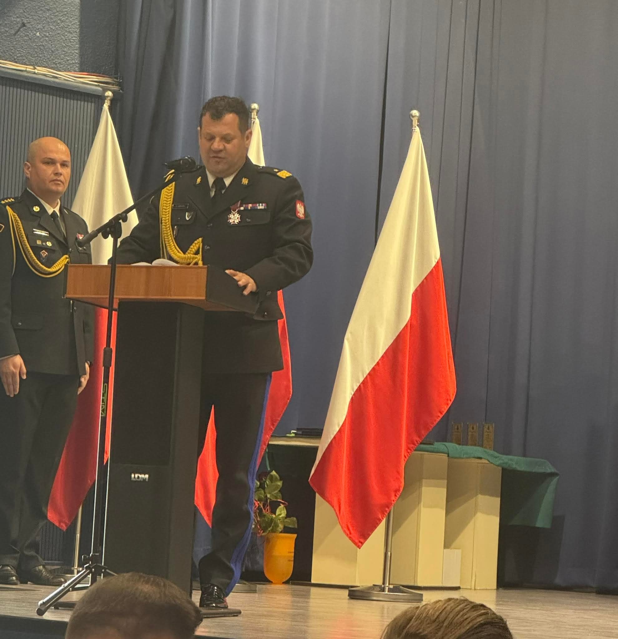 W dalszej części uroczystości, Komendant Powiatowy Państwowej Straży Pożarnej w Żurominie st. bryg. Zbigniew Kąpiński przywitał gości i wszystkich uczestników obchodów oraz wygłosił okolicznościowe przemówienie.
