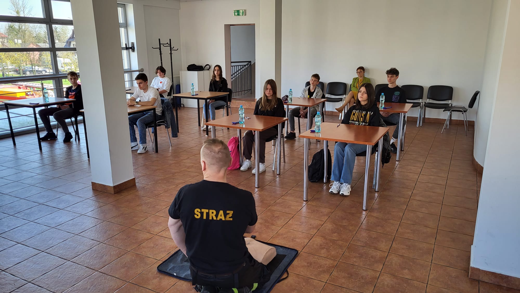 Na prośbę organizatorów olimpiady, strażacy zaprezentowali podstawowe zasady udzielania kwalifikowanej pierwszej pomocy przy różnego typu zdarzeniach. Funkcjonariusze Państwowej Straży Pożarnej, przedstawili uczestnikom olimpiady jak ocenić stan osoby poszkodowanej, prowadzić resuscytację krążeniowo-oddechową czy prawidłowo ułożyć osobę nieprzytomną z zachowanym własnym oddechem w pozycji bezpiecznej. Poruszono również wiele innych zagadnień z dziedziny ratownictwa medycznego, których znajomość może uratować życie bądź zdrowie.