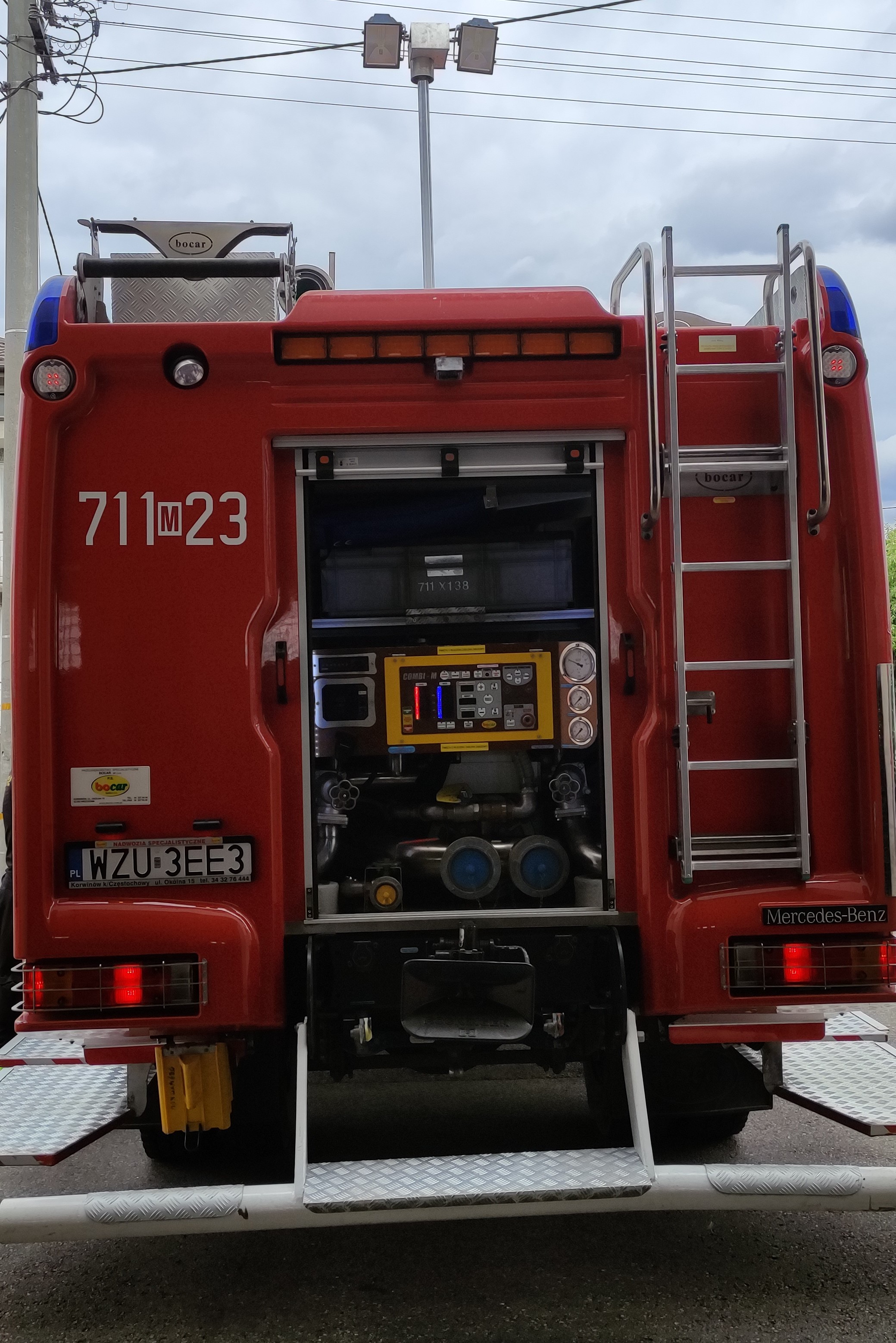 - inny sprzęt pomocniczy taki jak koce gaśnicze, sprzęt zabezpieczający miejsce zdarzenia tj. słupki, lampy ostrzegawcze przenośne, dyski i taśmy ostrzegawcze, piła szablasta.