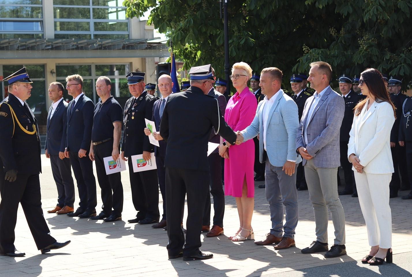 Kolejnym elementem były przemówienia okolicznościowe. Głos zabrał Zastępca Mazowieckiego Komendanta Wojewódzkiego Państwowej Straży Pożarnej st. bryg. Maciej Bieńczyk oraz Starosta powiatu żuromińskiego Pan Jerzy Rzymowski, który jednocześnie pełni funkcję Prezesa Oddziału Powiatowego Związku Ochotniczych Straży Pożarnych RP.