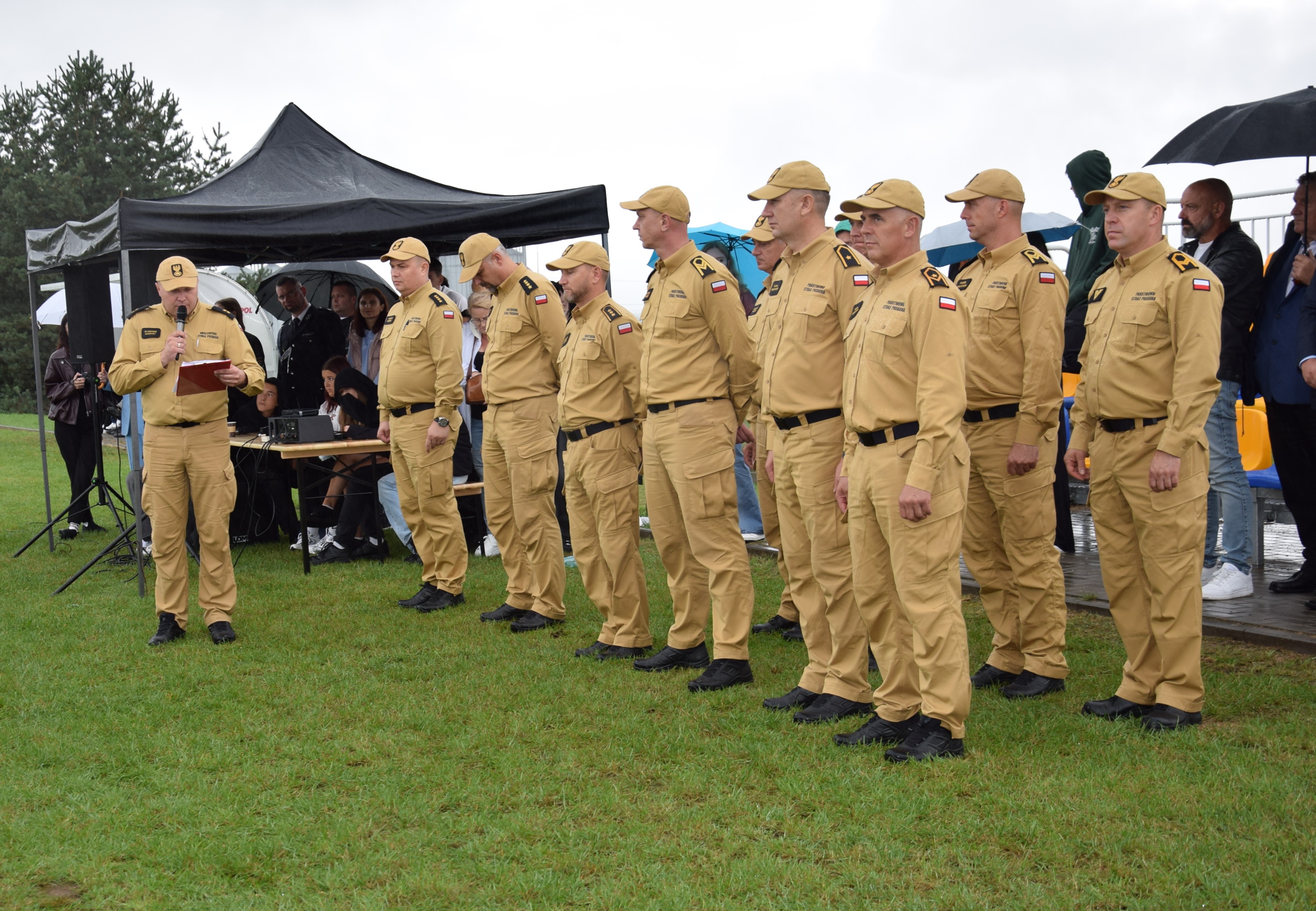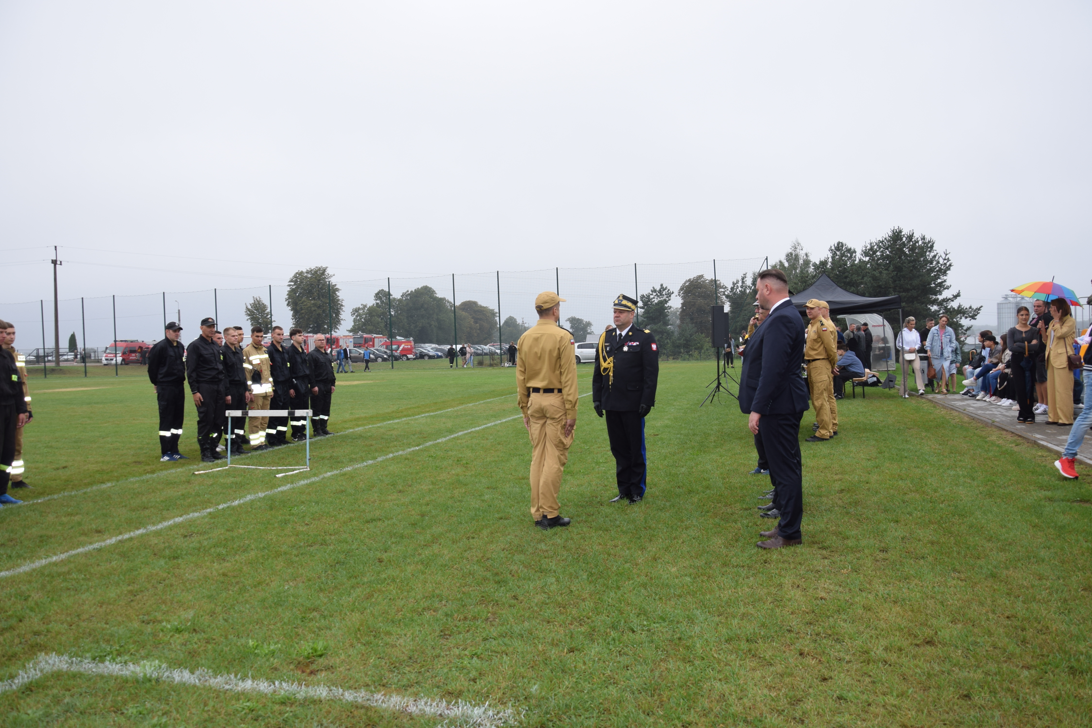 Po zakończeniu konkurencji, odbyło się wprowadzenie drużyn na płytę boiska, gdzie Starosta Żuromiński i jednocześnie Prezes Zarządu Oddziału Powiatowego ZOSP RP Pan Jerzy Rzymowski wraz z Komendantem Powiatowym PSP w Żurominie st. bryg. Zbigniewem Kąpińskim, dokonali wręczenia pamiątkowych pucharów i dymplomów w asyście Burmistrza Miasta i Gminy w Lubowidzu Pana Jarosława Czaplińskiego.